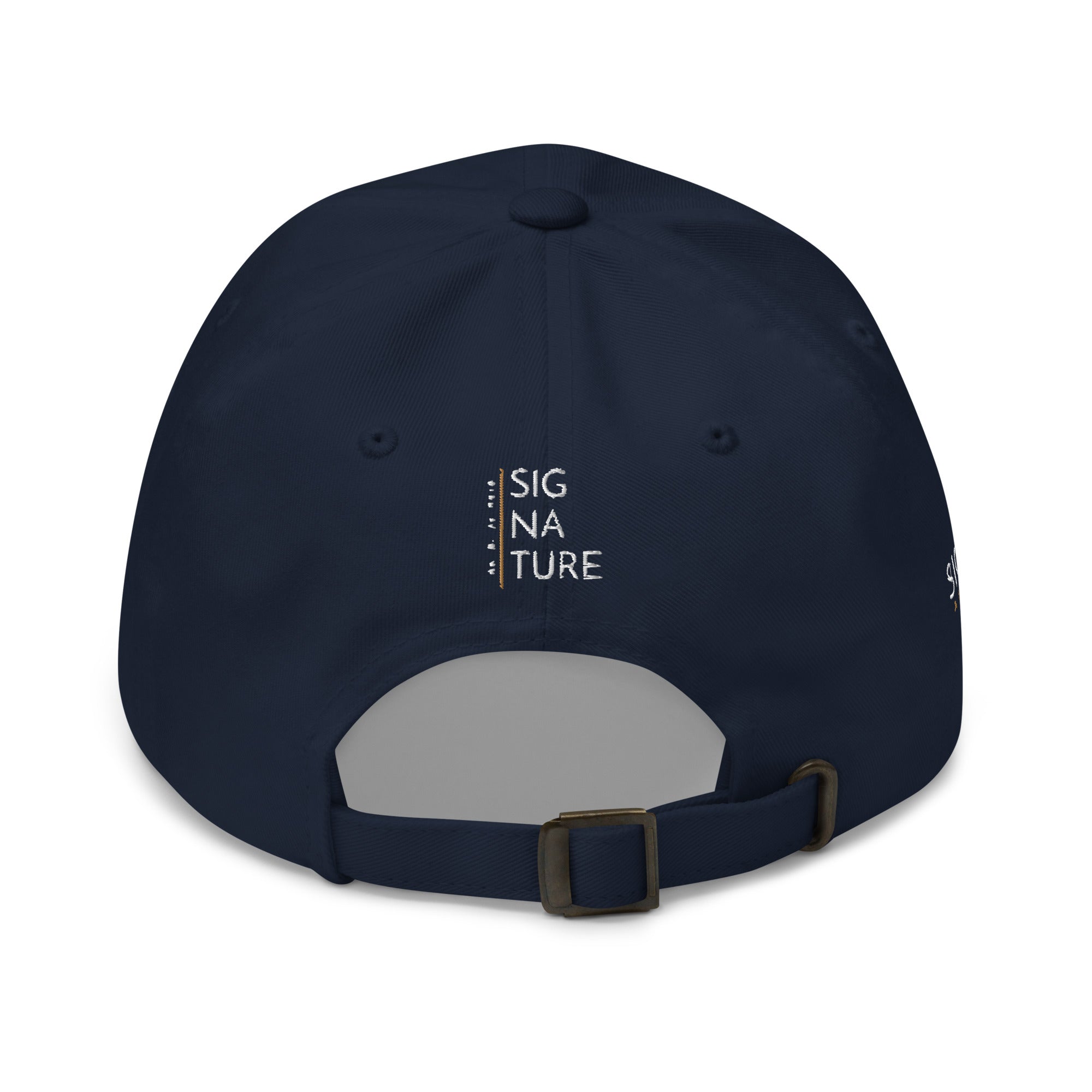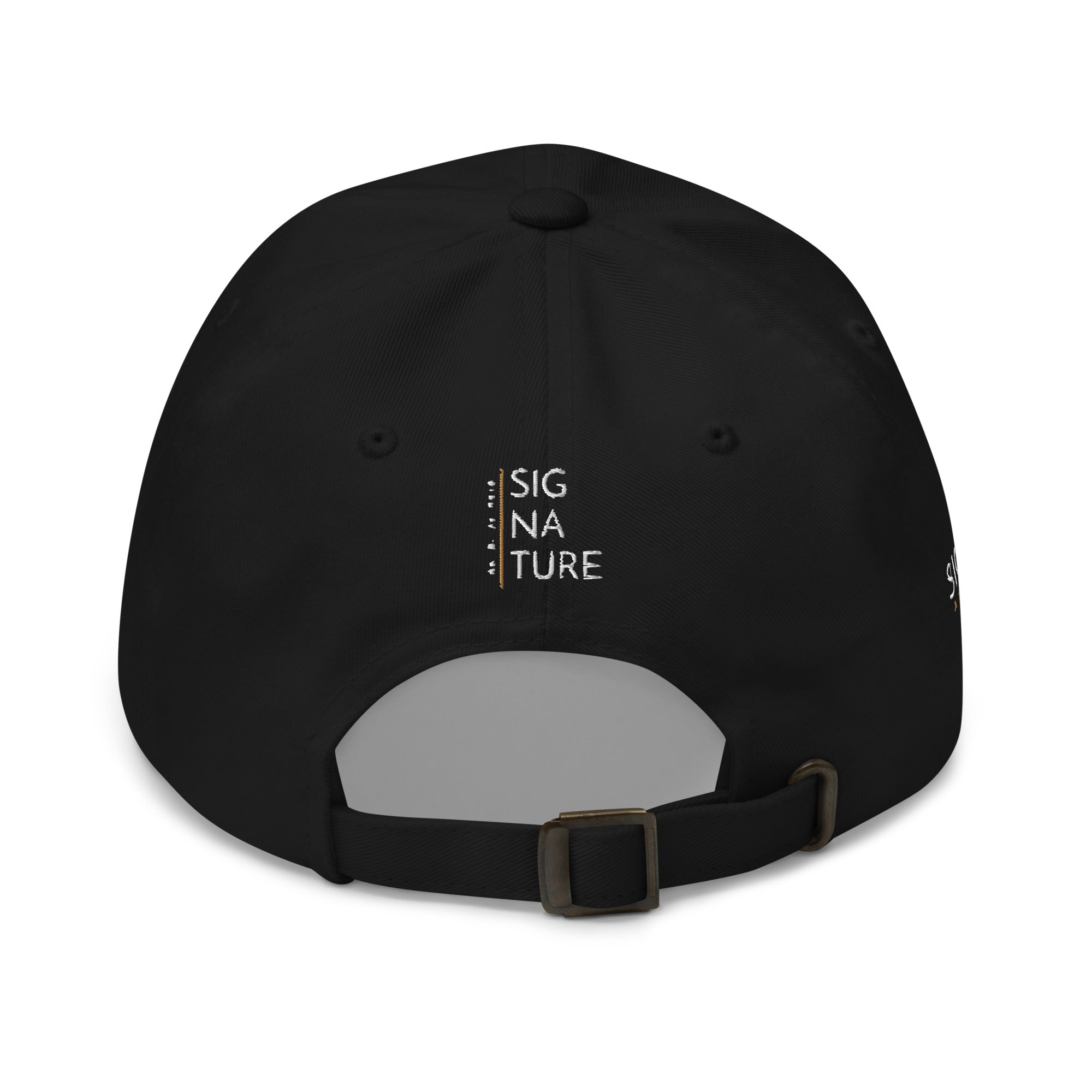 The ultimate piece for the fashion-forward. Adorn yourself in this luxurious 'Signature' dad hat- not only does it embody sophistication with its sleek design, but it also serves as a reminder of the pursuit of a pure and virtuous lifestyle in Christ as The Lord intends,