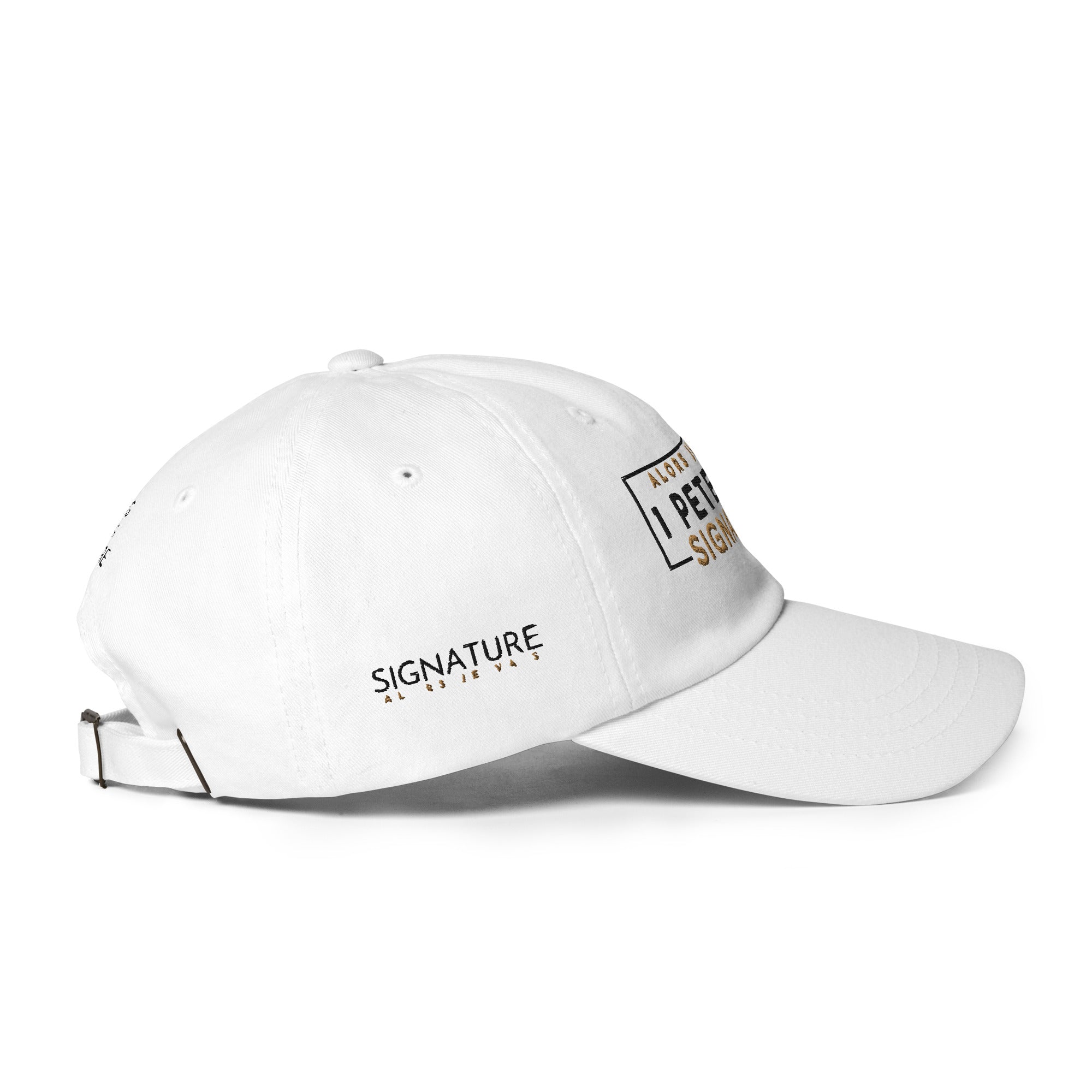The ultimate piece for the fashion-forward. Adorn yourself in this luxurious Signature dad hat- not only does it embody sophistication with its sleek design, but it also serves as a reminder of the pursuit of a pure and virtuous lifestyle in Christ as The Lord intends,