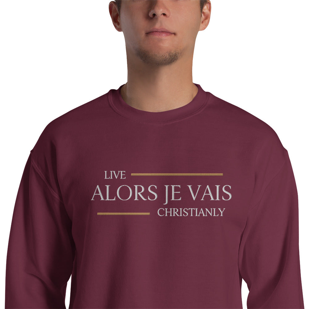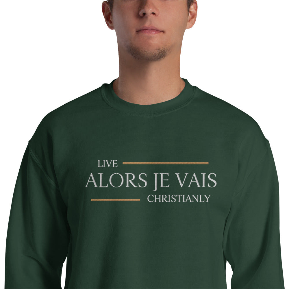 Indulge in the epitome of divine fashion with our LIVE CHRISTIANLY- ALORS JE VAIS UNISEX SWEATSHIRT. Made from the finest materials, this sweatshirt features a unique design that captures the essence of living your life as intended by CHRIST. Elevate your style and showcase your faith with this exclusive and sophisticated piece.