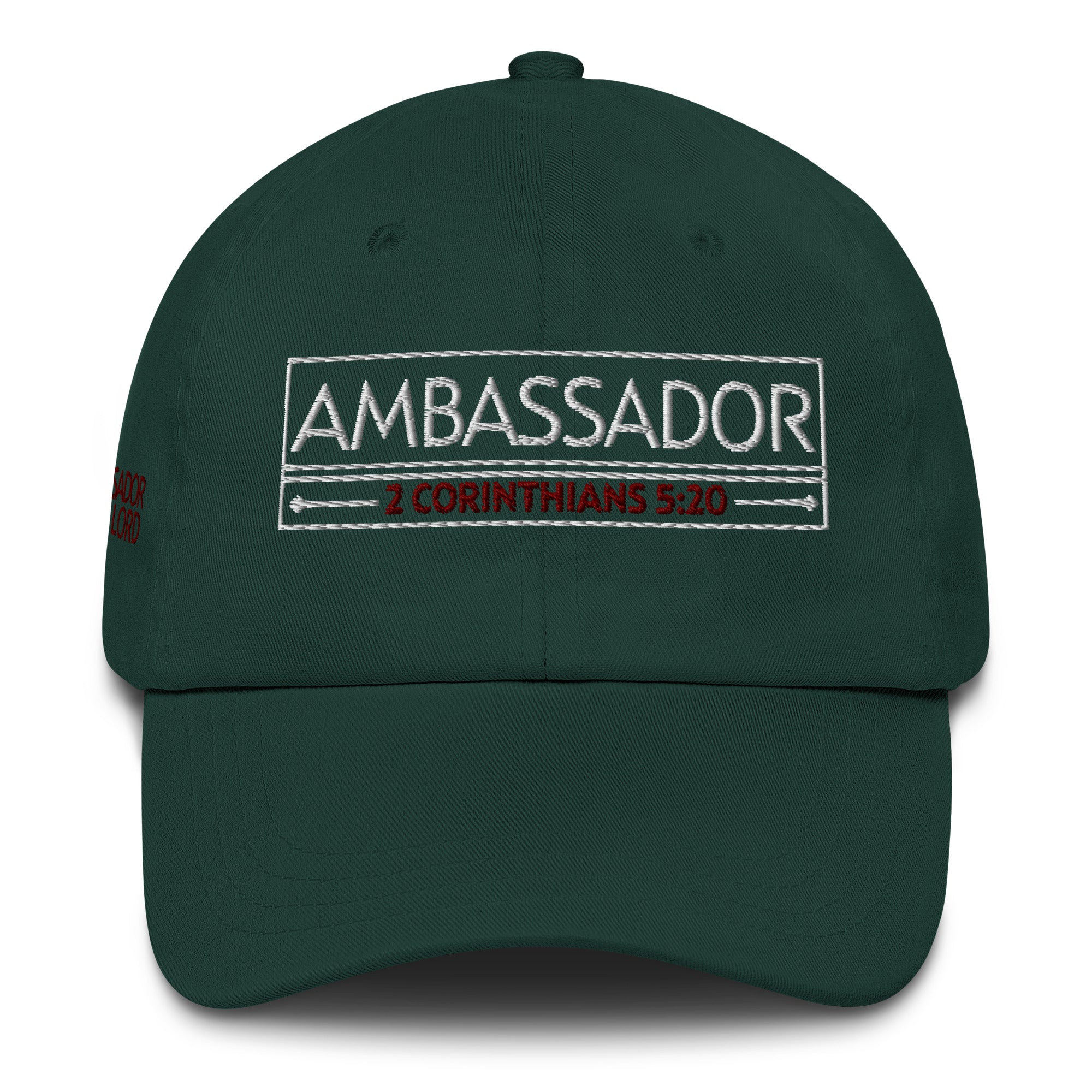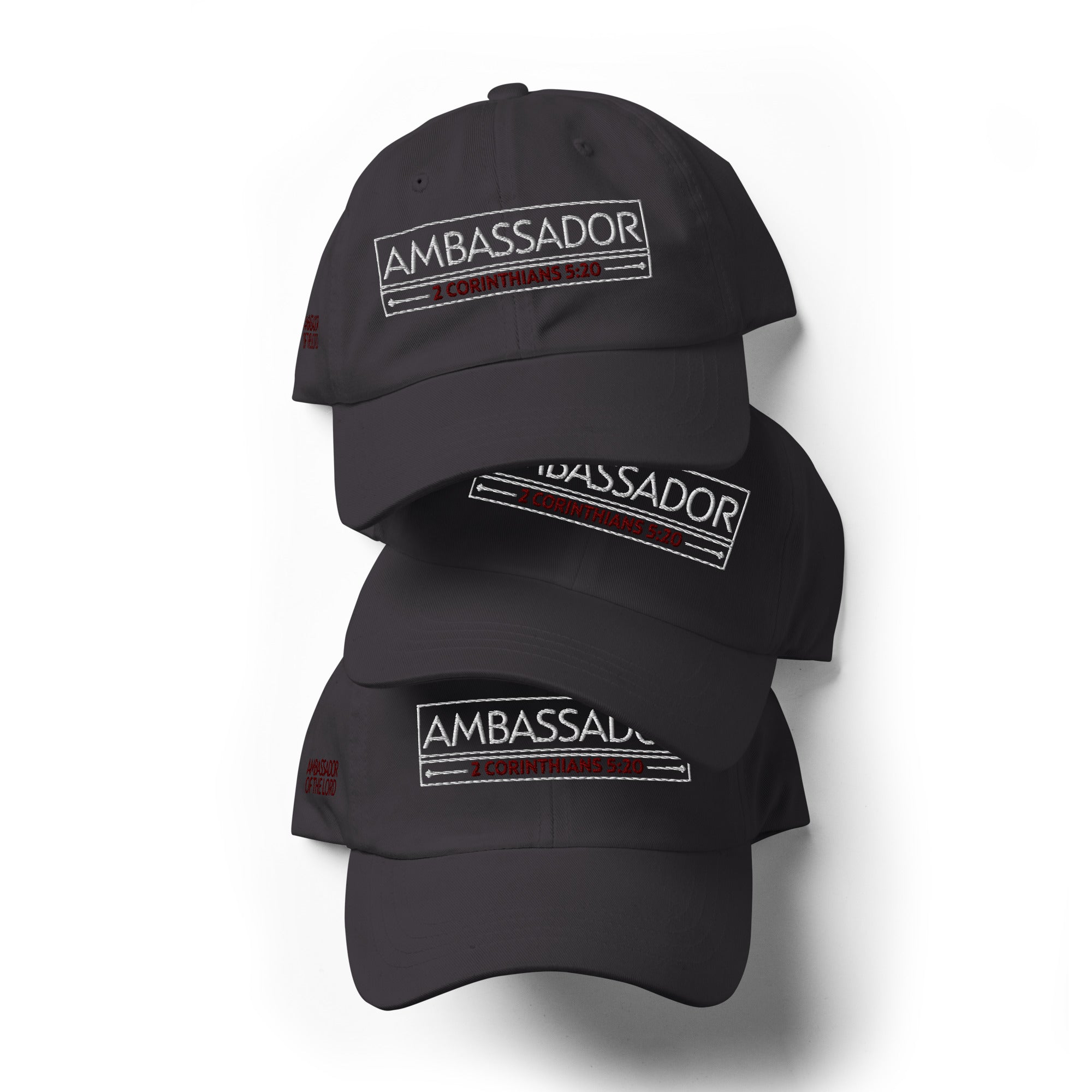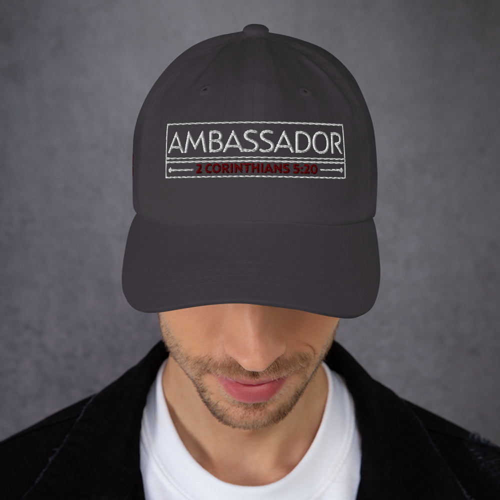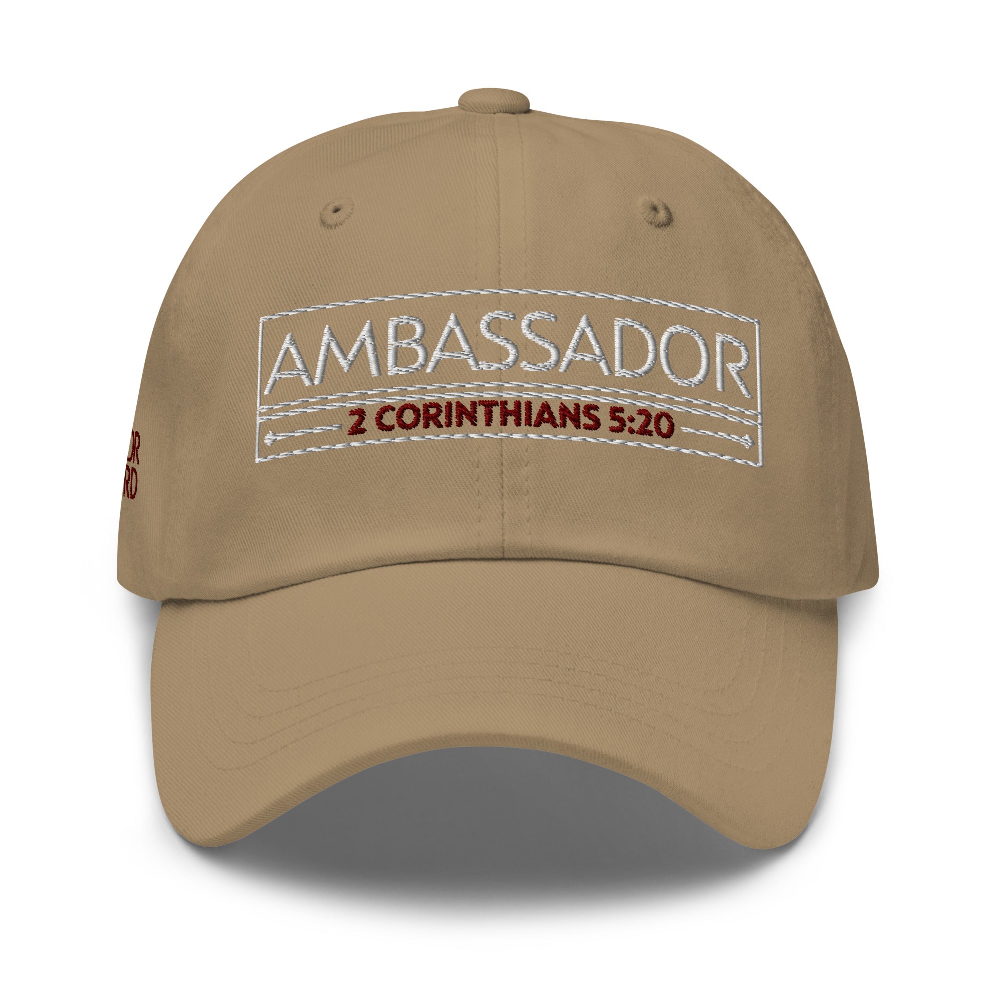 Proudly display your faith with our elegant and exclusive AMBASSADOR - DAD HAT. Embrace the timeless message of The Gospel while exuding sophistication and style. Made with premium materials and designed with taste in mind, this hat is the perfect addition to any fashion-forward wardrobe. Share your beliefs in a subtle yet powerful way with this must-have accessory.