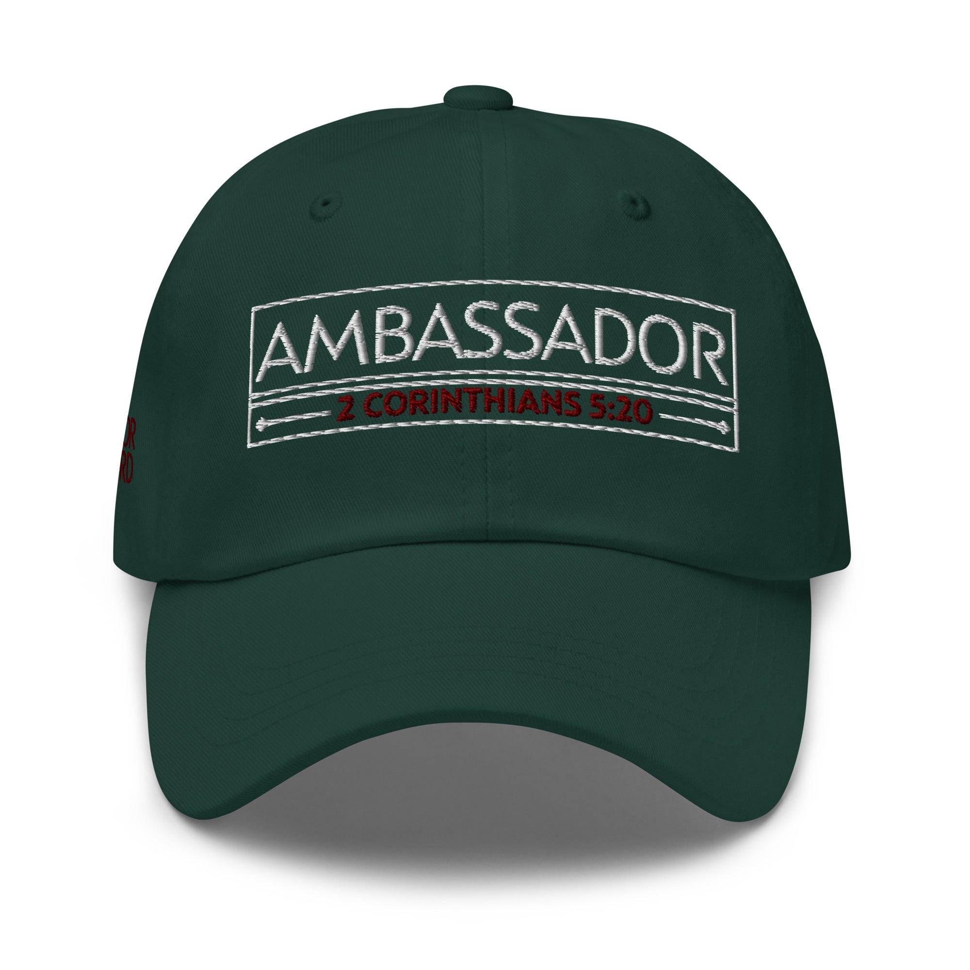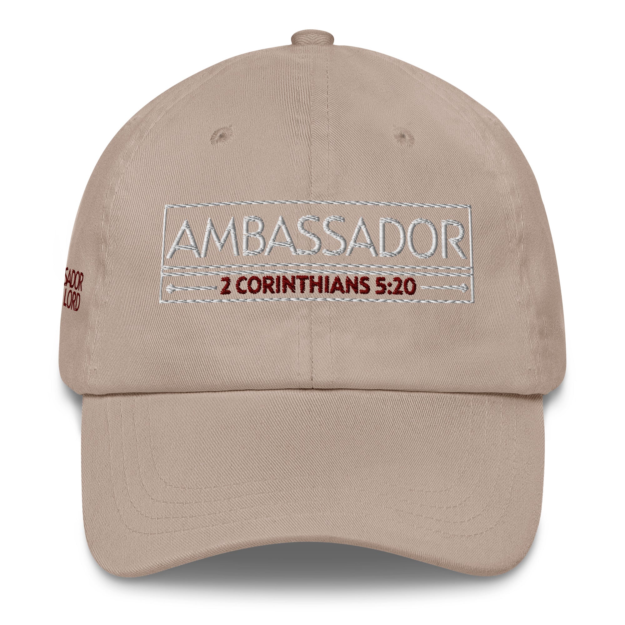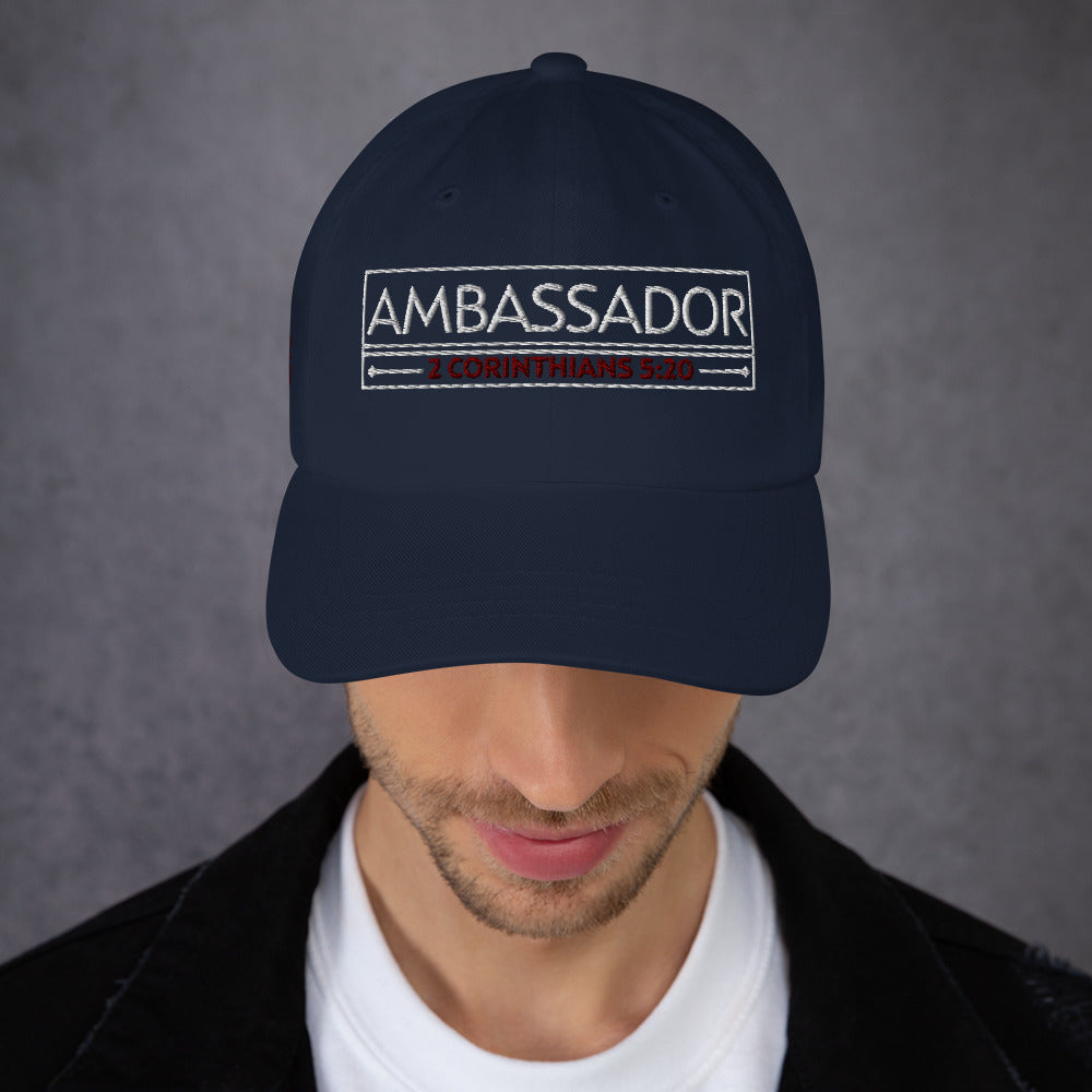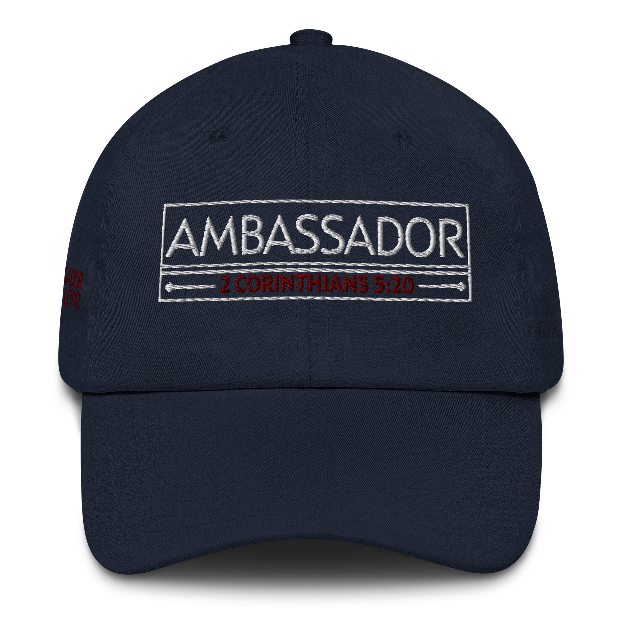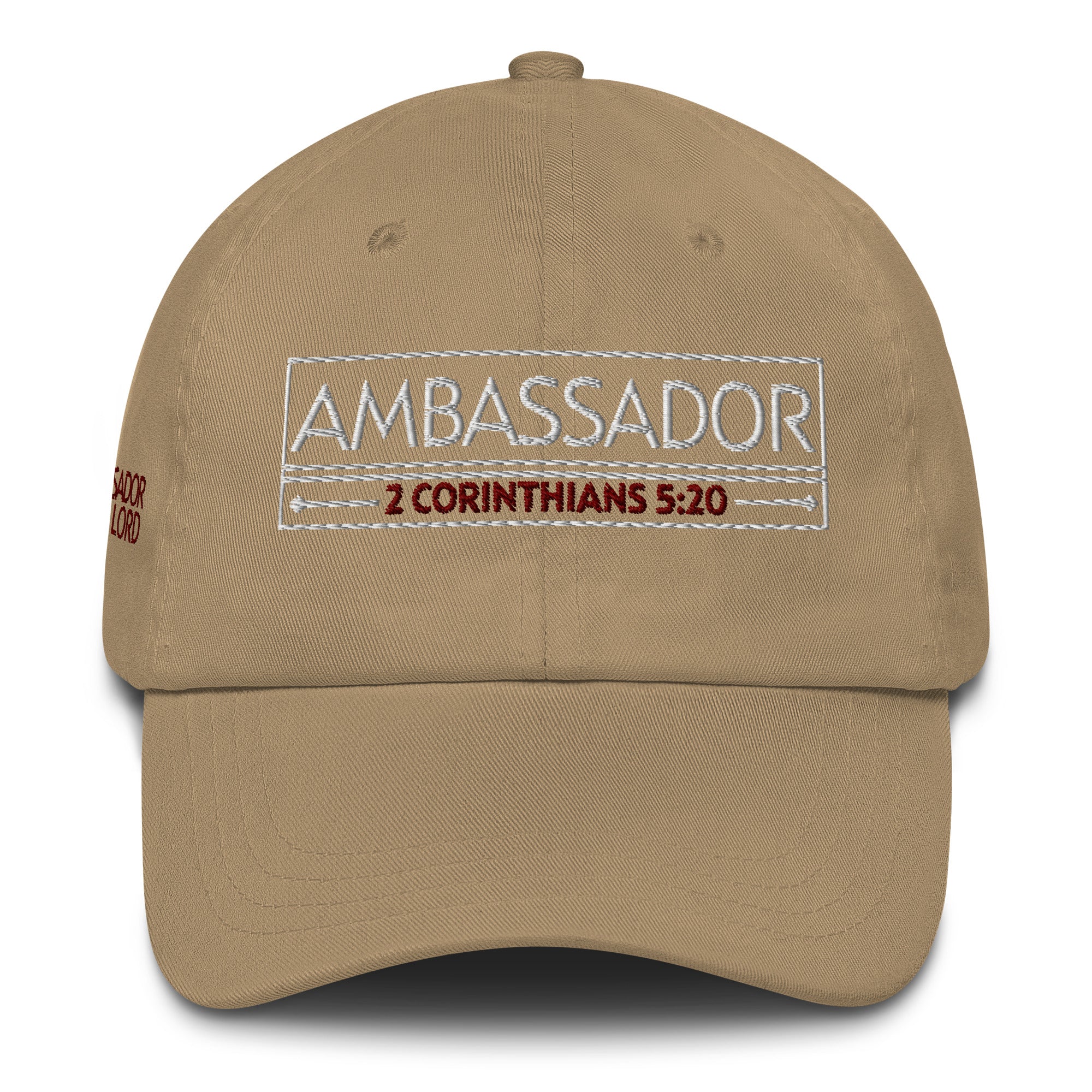 Proudly display your faith with our elegant and exclusive AMBASSADOR - DAD HAT. Embrace the timeless message of The Gospel while exuding sophistication and style. Made with premium materials and designed with taste in mind, this hat is the perfect addition to any fashion-forward wardrobe. Share your beliefs in a subtle yet powerful way with this must-have accessory.