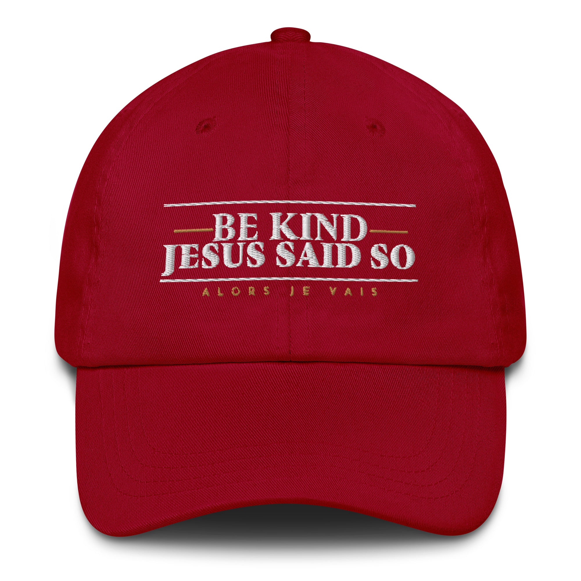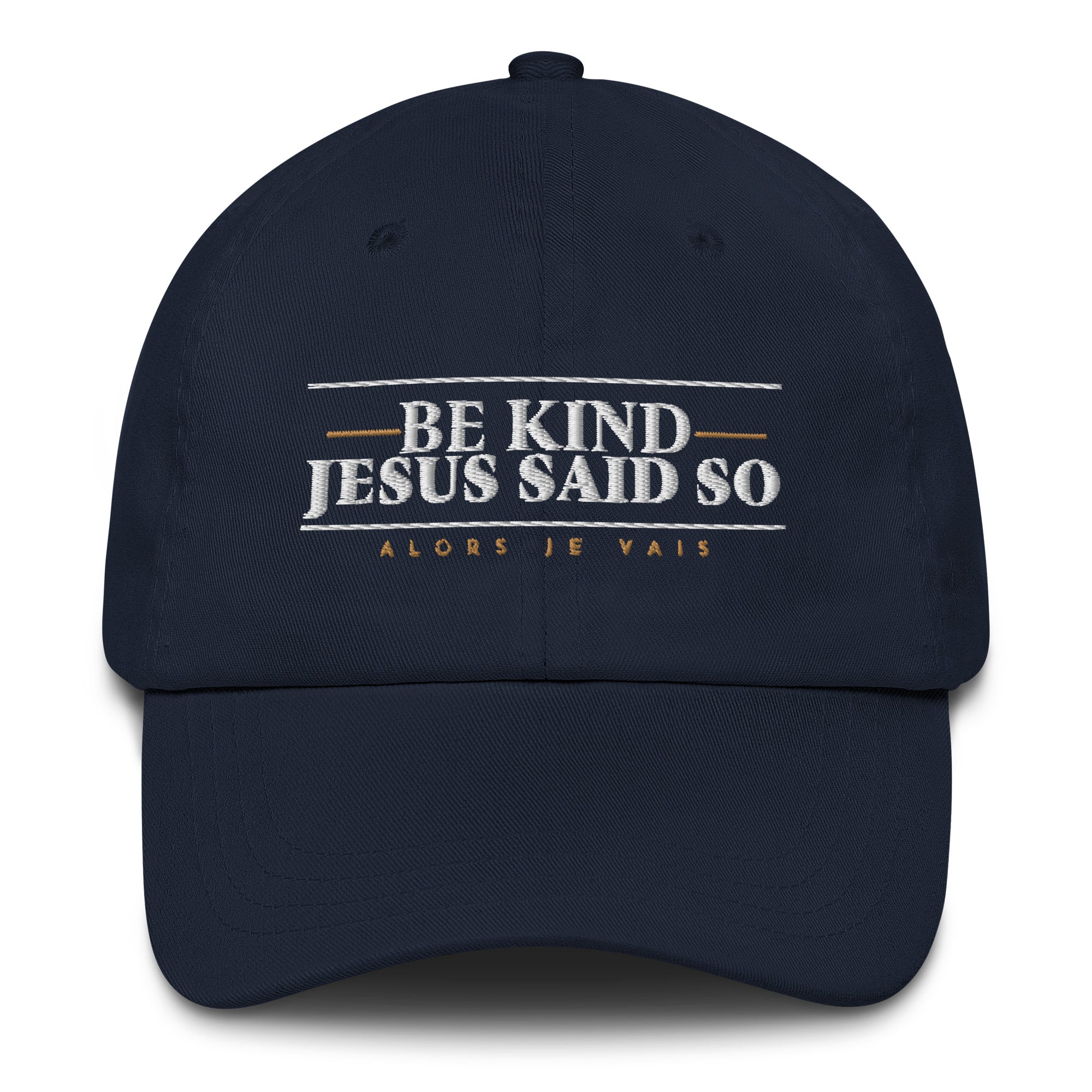 ALORS JE VAIS’ BE KIND JESUS SAID SO DAD HAT - This hat is not just a fashion statement, it's a reminder to be kind in all that you do. Let this beautifully crafted hat be a symbol of your kindness and compassion towards others.