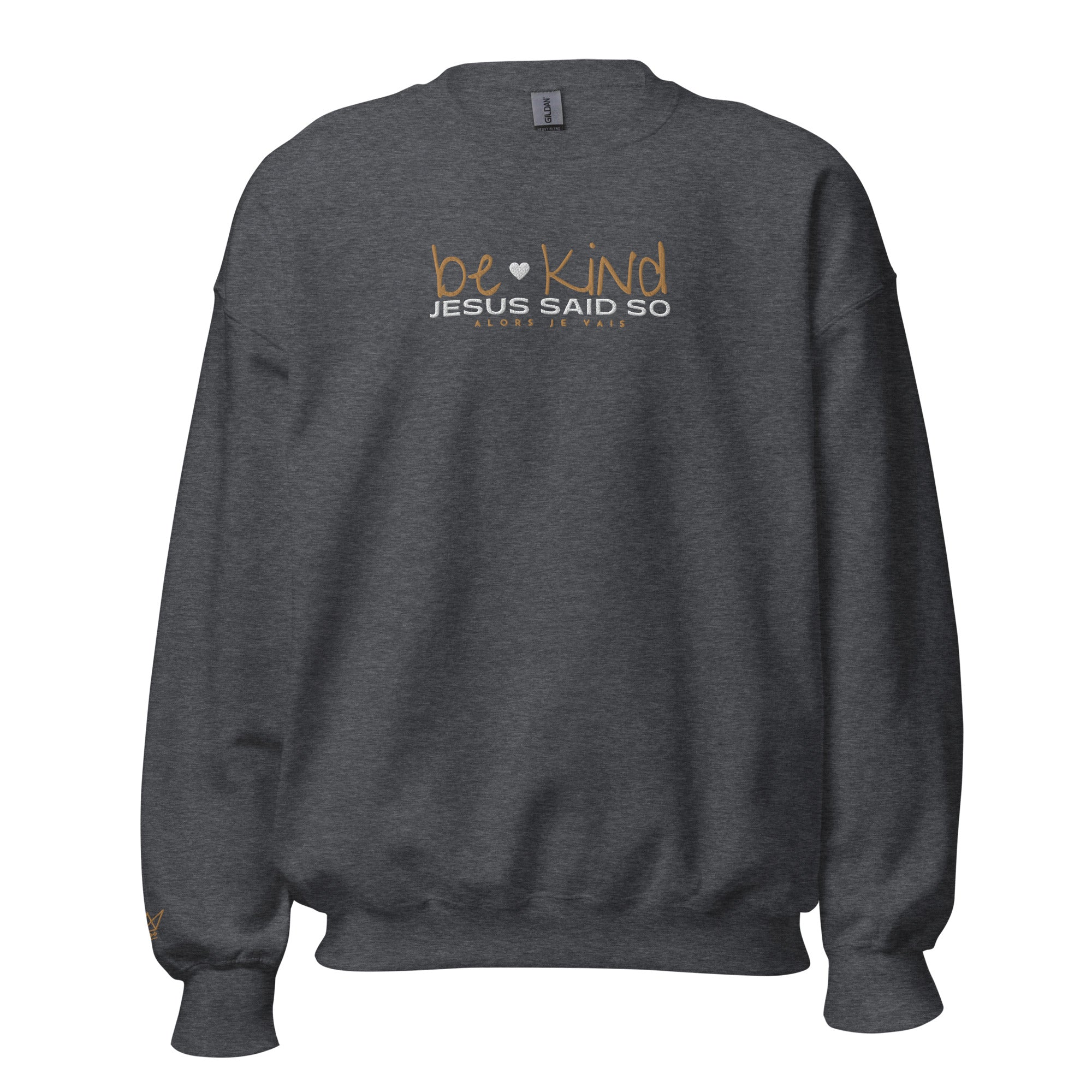 Wrap yourself in KINDNESS as The Lord intended with this sweatshirt; part of our exclusive collection. Made with the finest materials and designed with elegant simplicity, this sweatshirt is a timeless statement piece. Embrace the art of kindness and 'feel great' about it (and in it) wearing this sweatshirt, with its smooth, soft texture and fashionable print. BE KIND, JESUS SAID - a gentle reminder to prioritize compassion and grace.