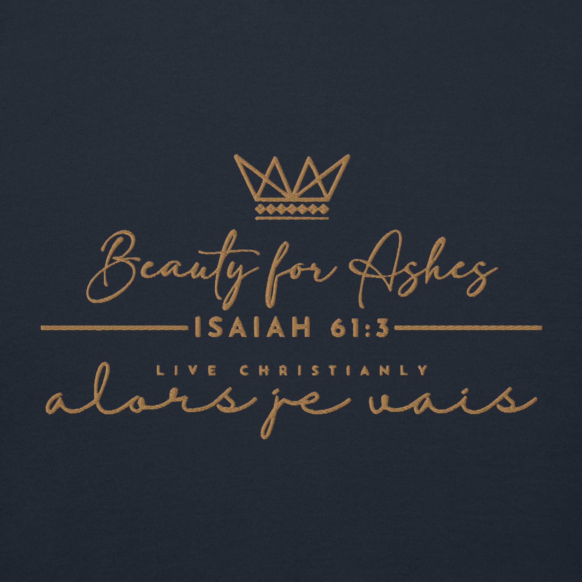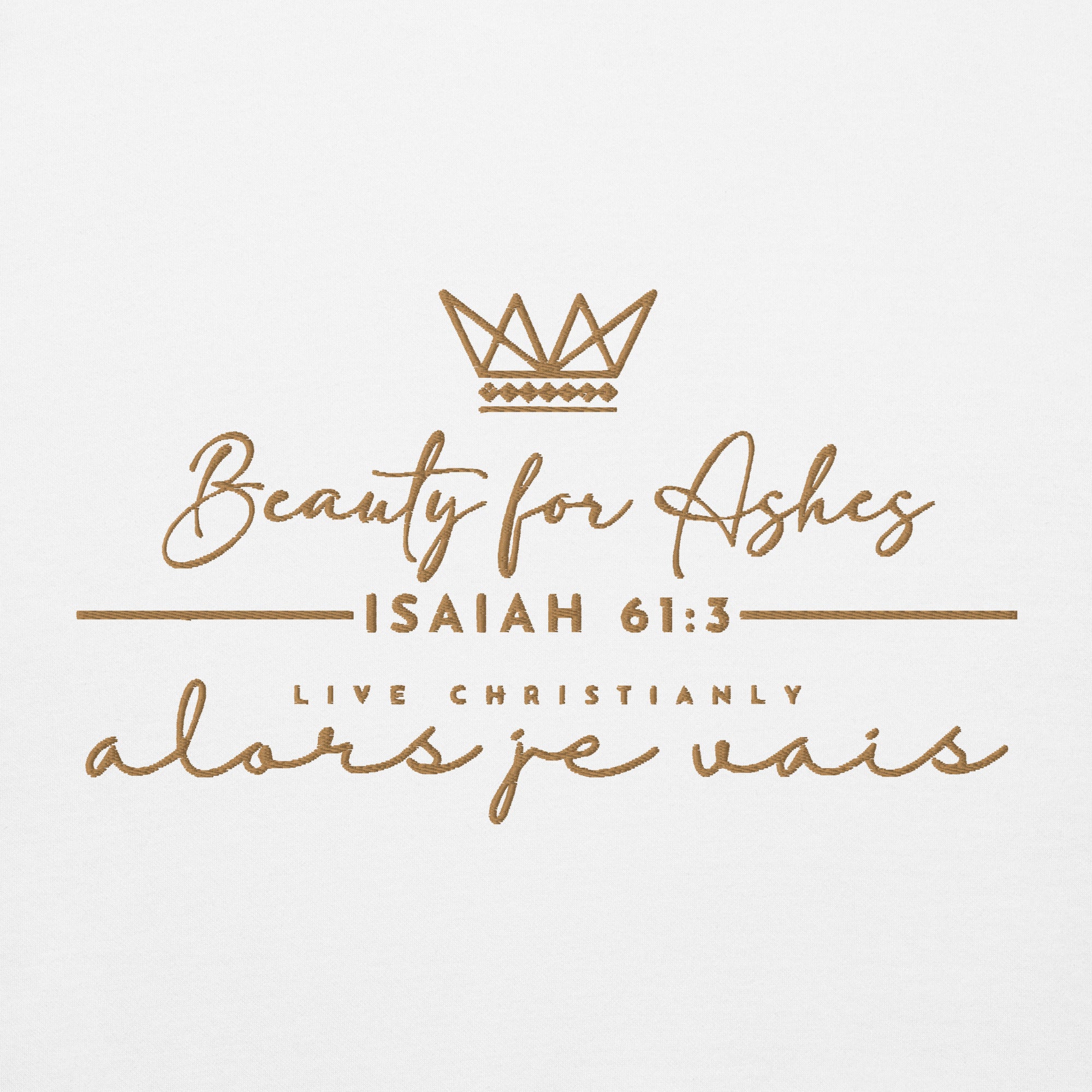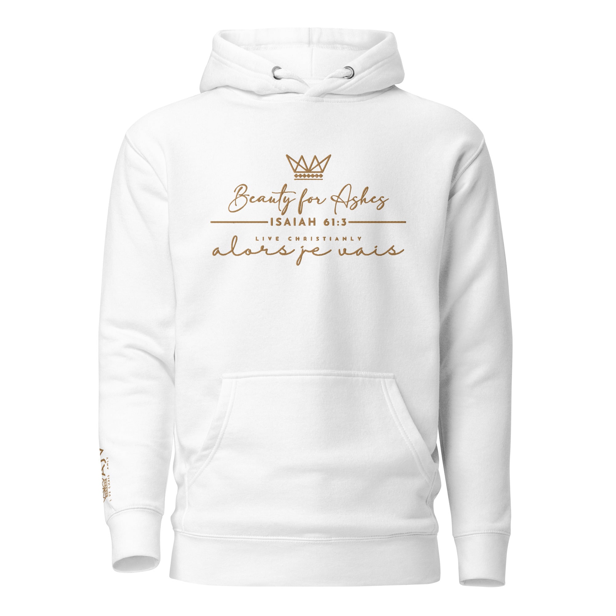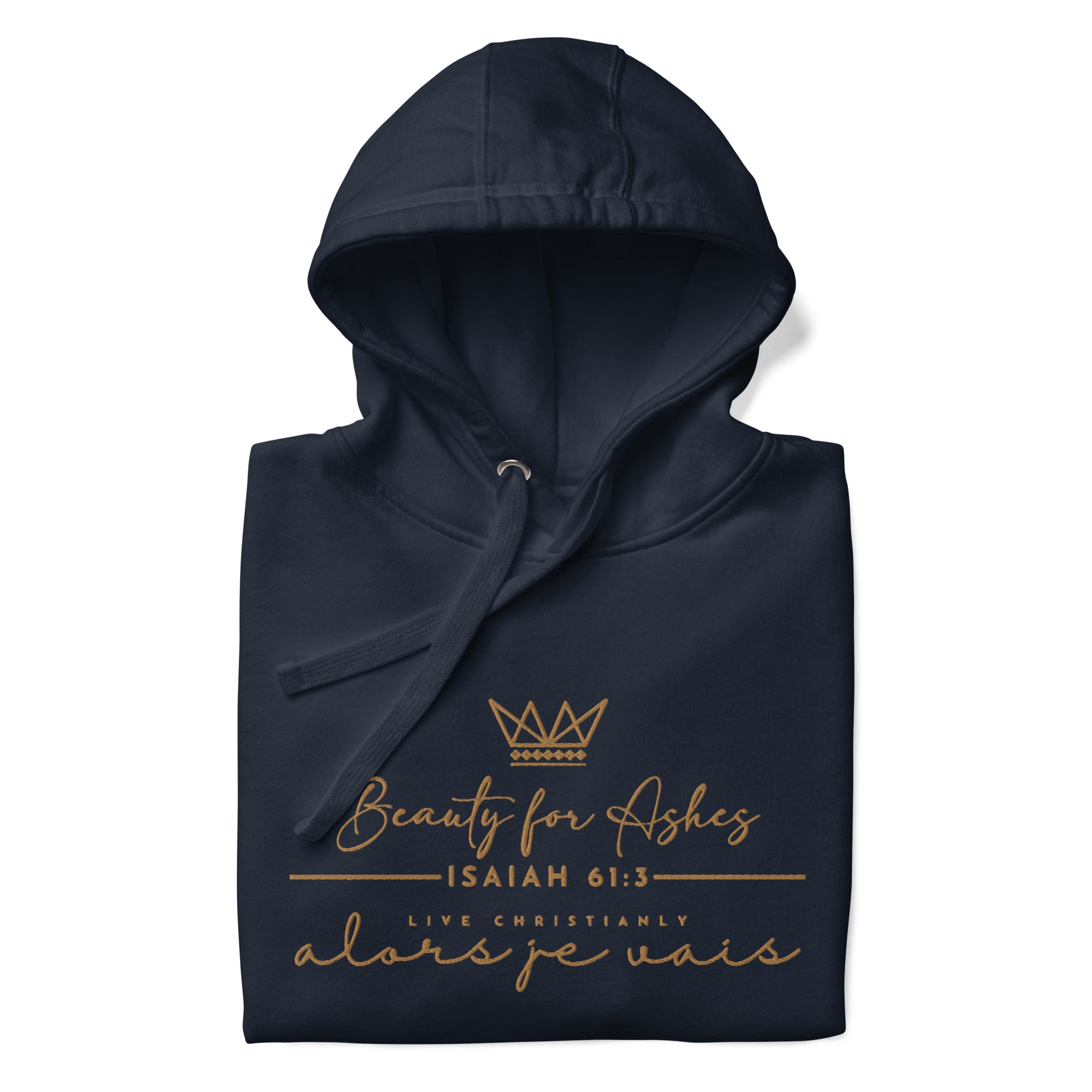 Make a statement with this luxurious and exclusive ALORS JE VAIS hoodie. Elevate your style and stand out from the crowd with the high-quality materials and designed with heart of grace, humility and love for Our Lord and Savior Christ Jesus. It's a must-have for those who appreciate a little luxury while they make a bold statement of Faith + Love.