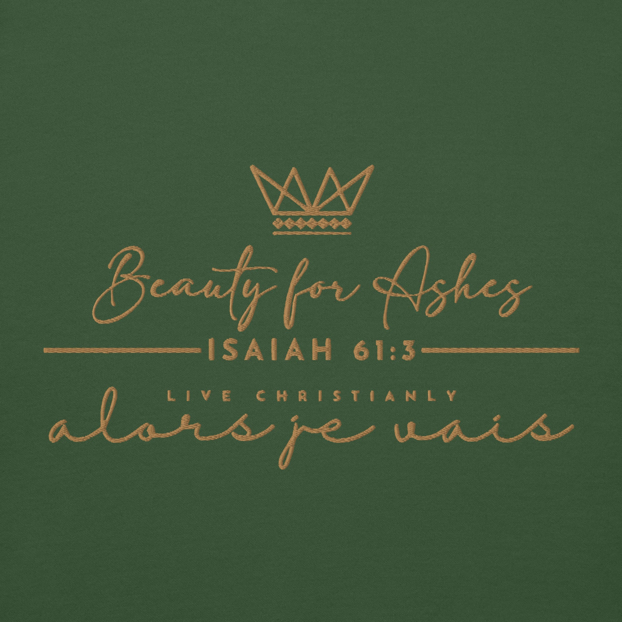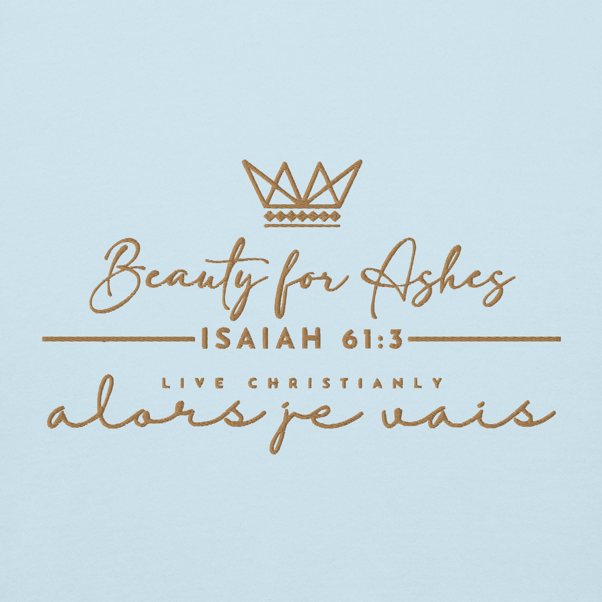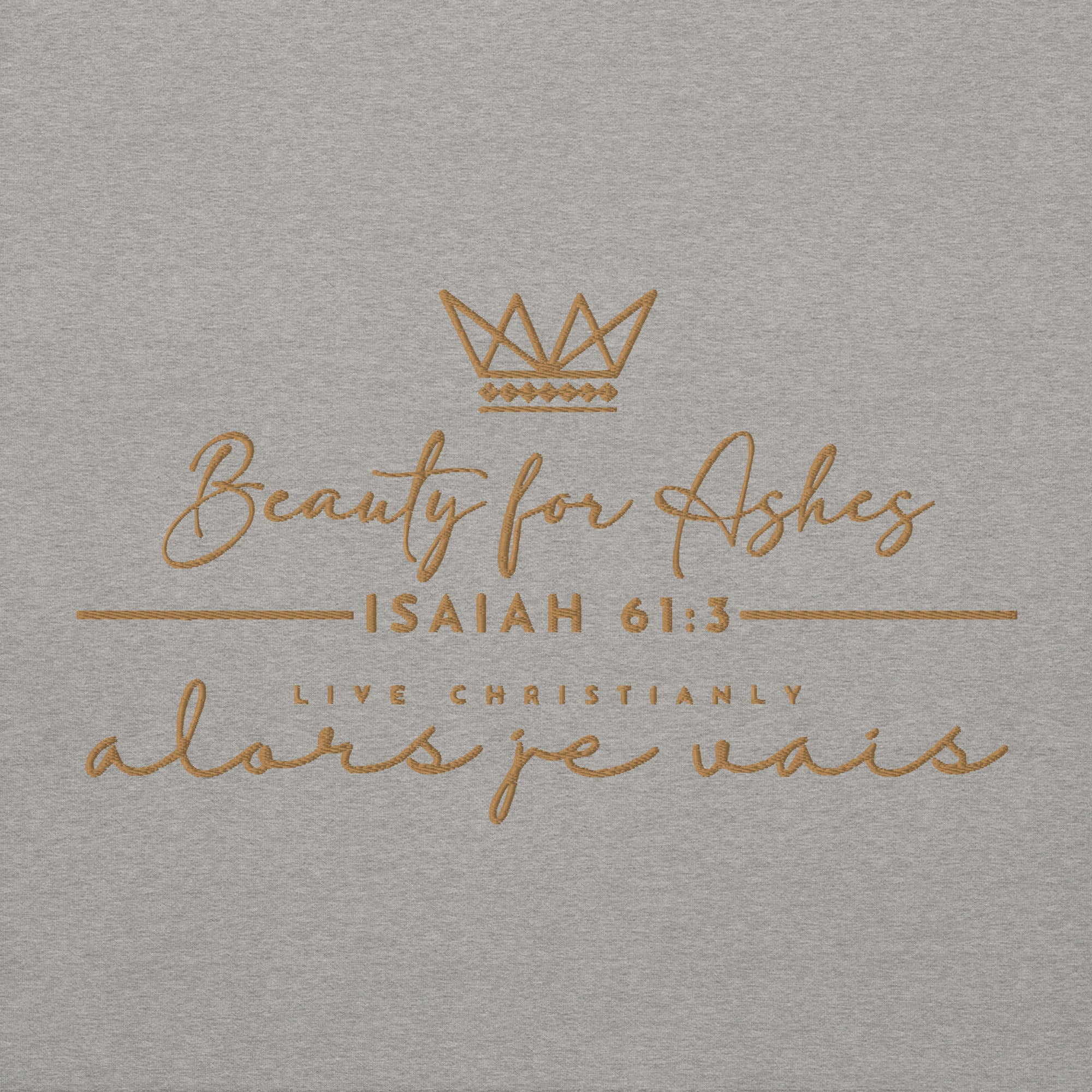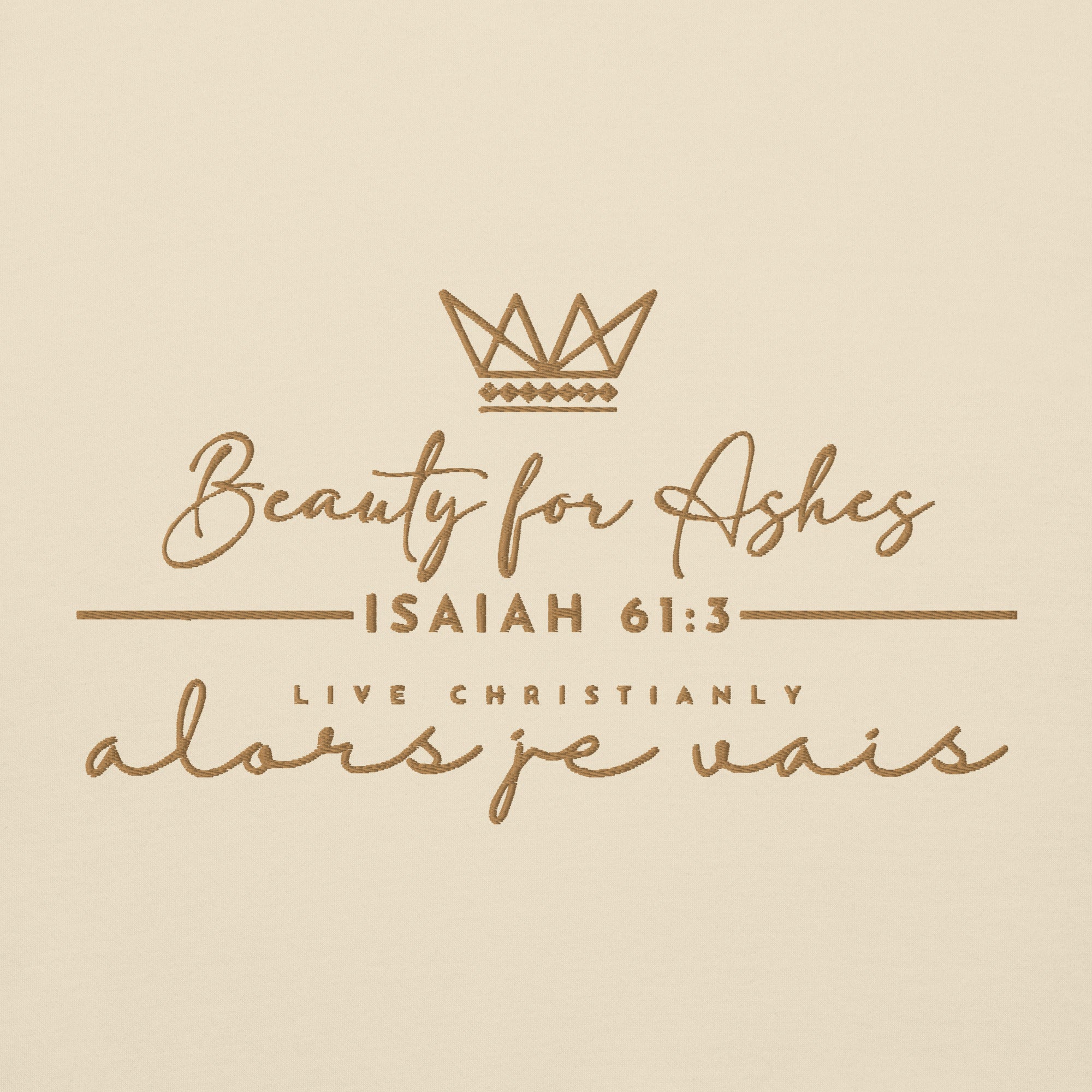 Make a statement with this luxurious and exclusive ALORS JE VAIS hoodie. Elevate your style and stand out from the crowd with the high-quality materials and designed with heart of grace, humility and love for Our Lord and Savior Christ Jesus. It's a must-have for those who appreciate a little luxury while they make a bold statement of Faith + Love.