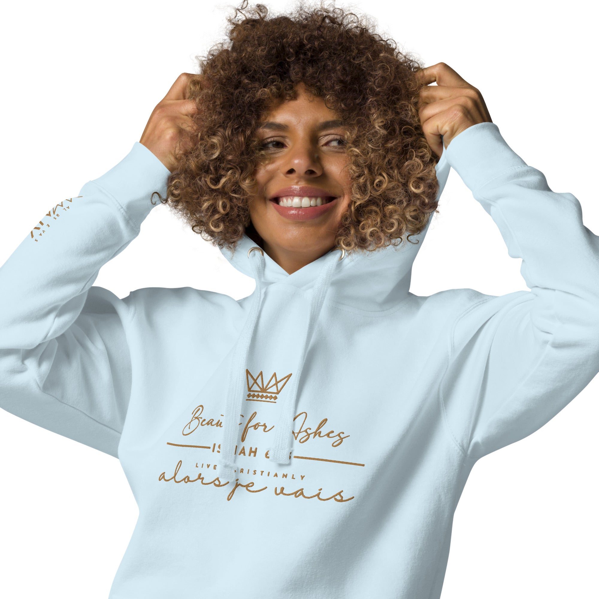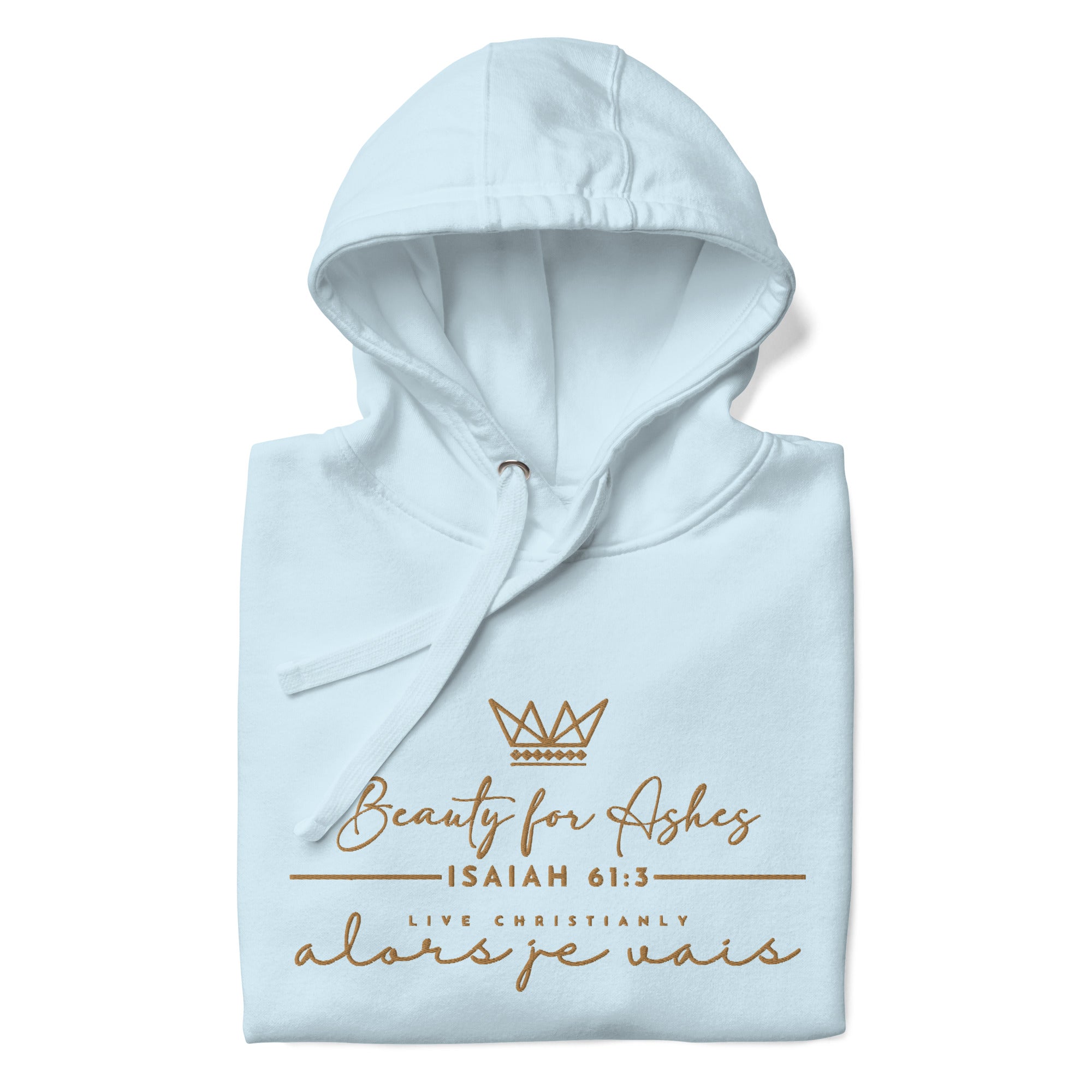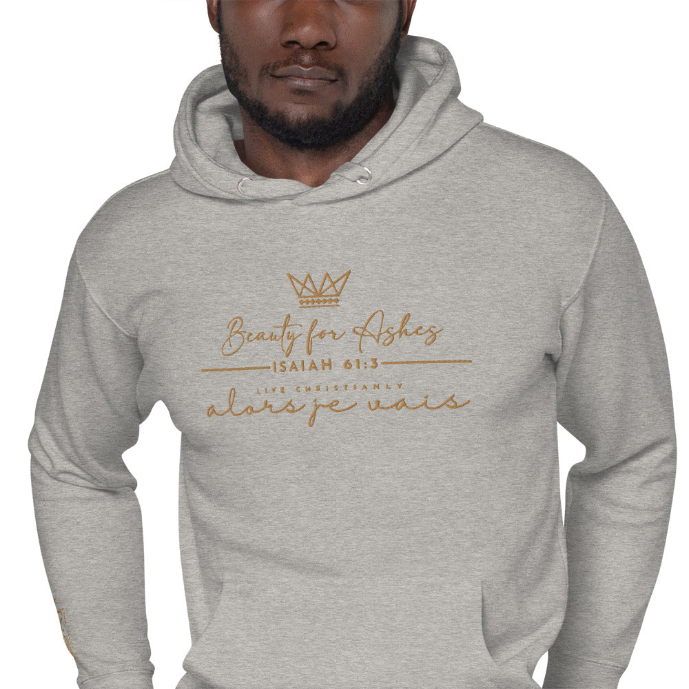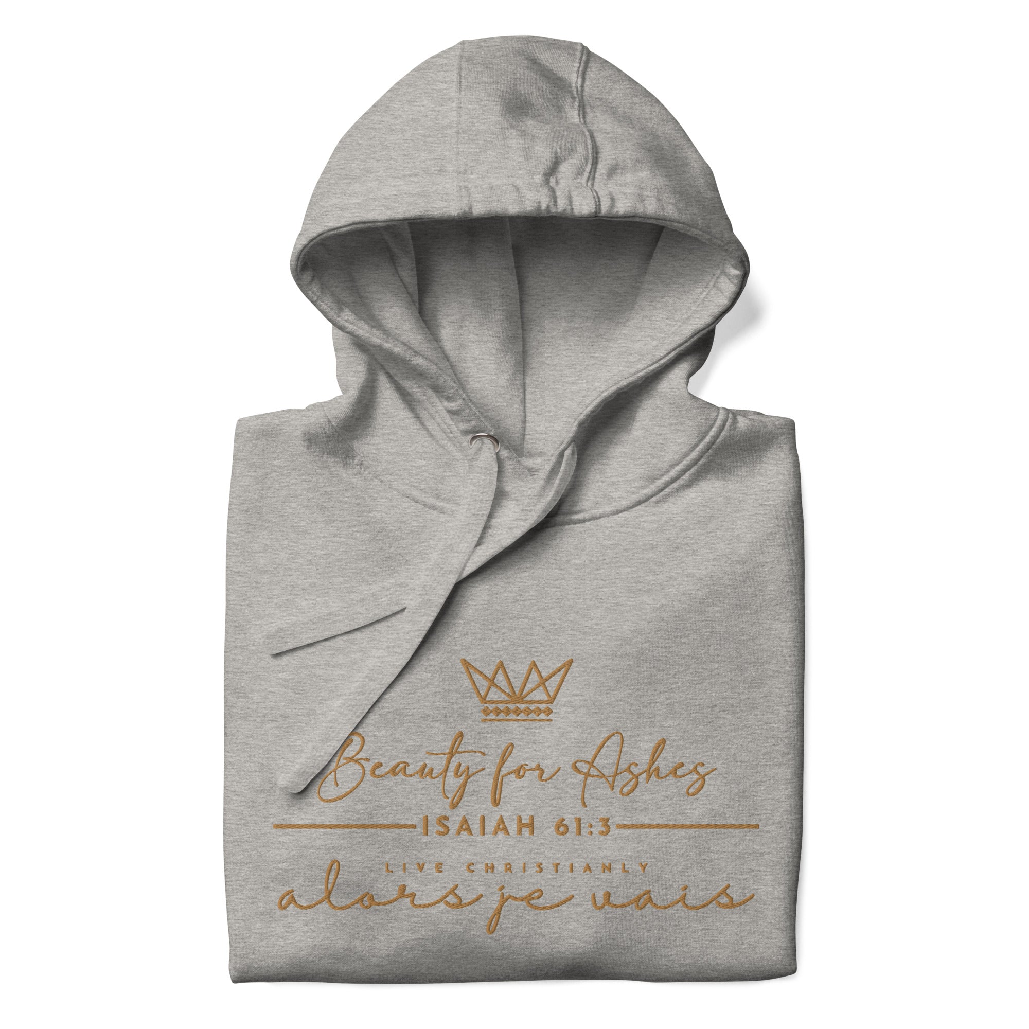 The luxurious way to show off your faith. Wrap yourself in the ultimate comfort and style with our 'BEAUTY FOR ASHES Hoodie'. Perfect for any occasion, this hoodie serves as a reminder of your devotion while elevating your wardrobe. Crafted with the highest quality materials, it's a must-have for any fashion-forward believer; a product loved by those with discerning taste.in the warmth of love and tranquility that only comes from loving Jesus.