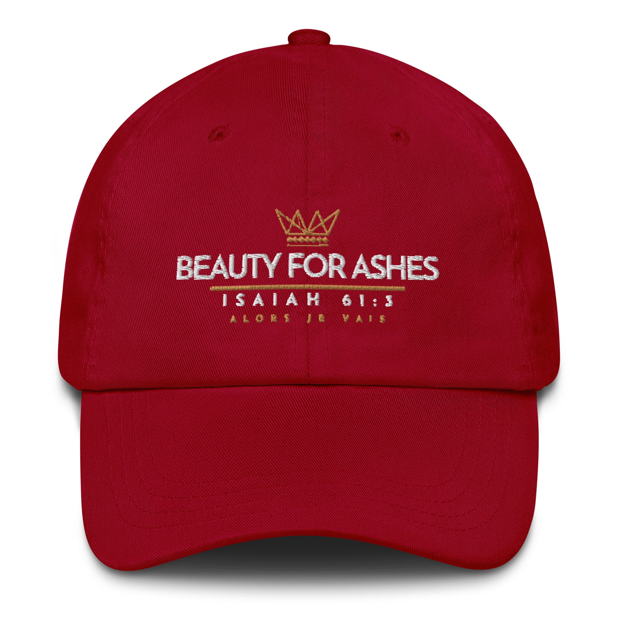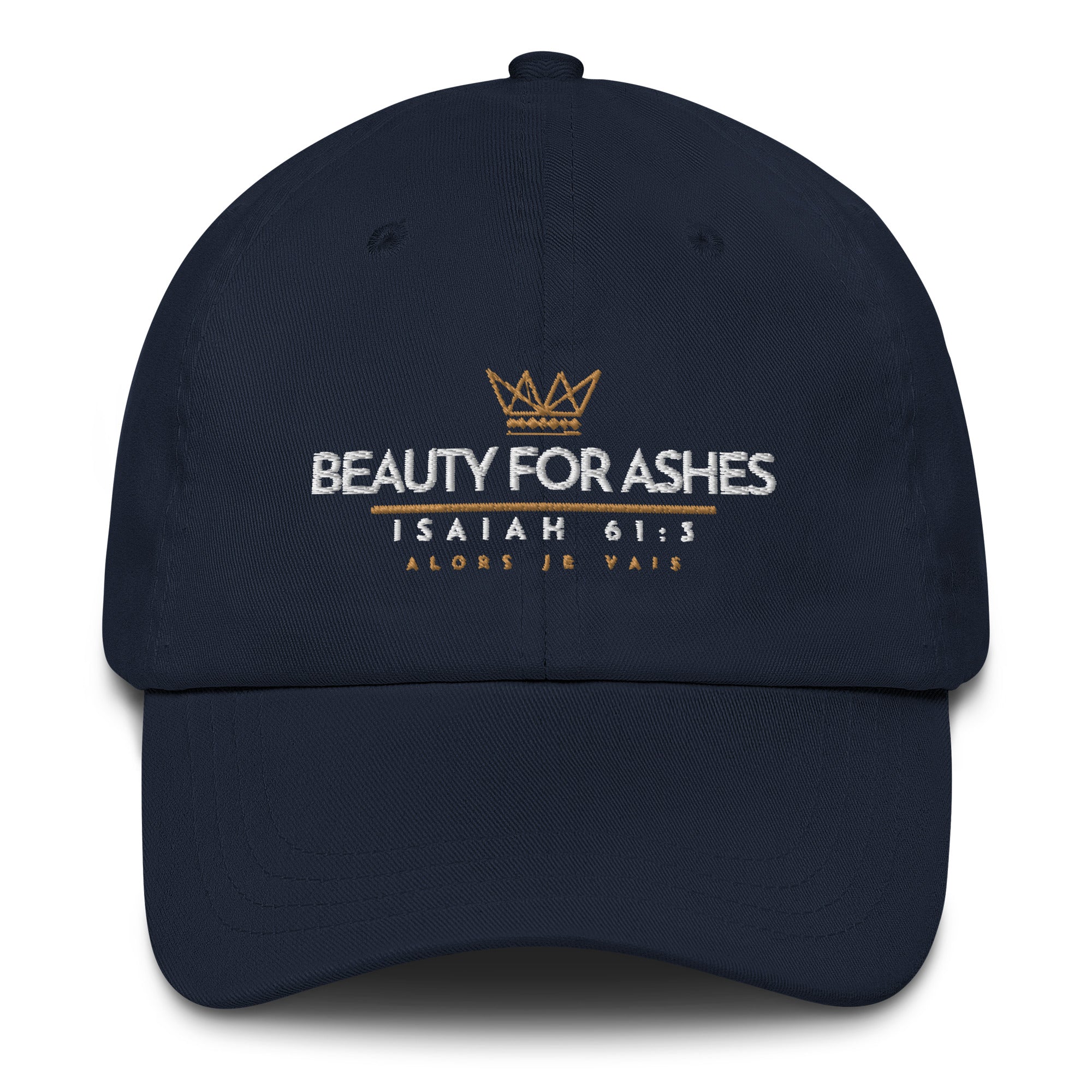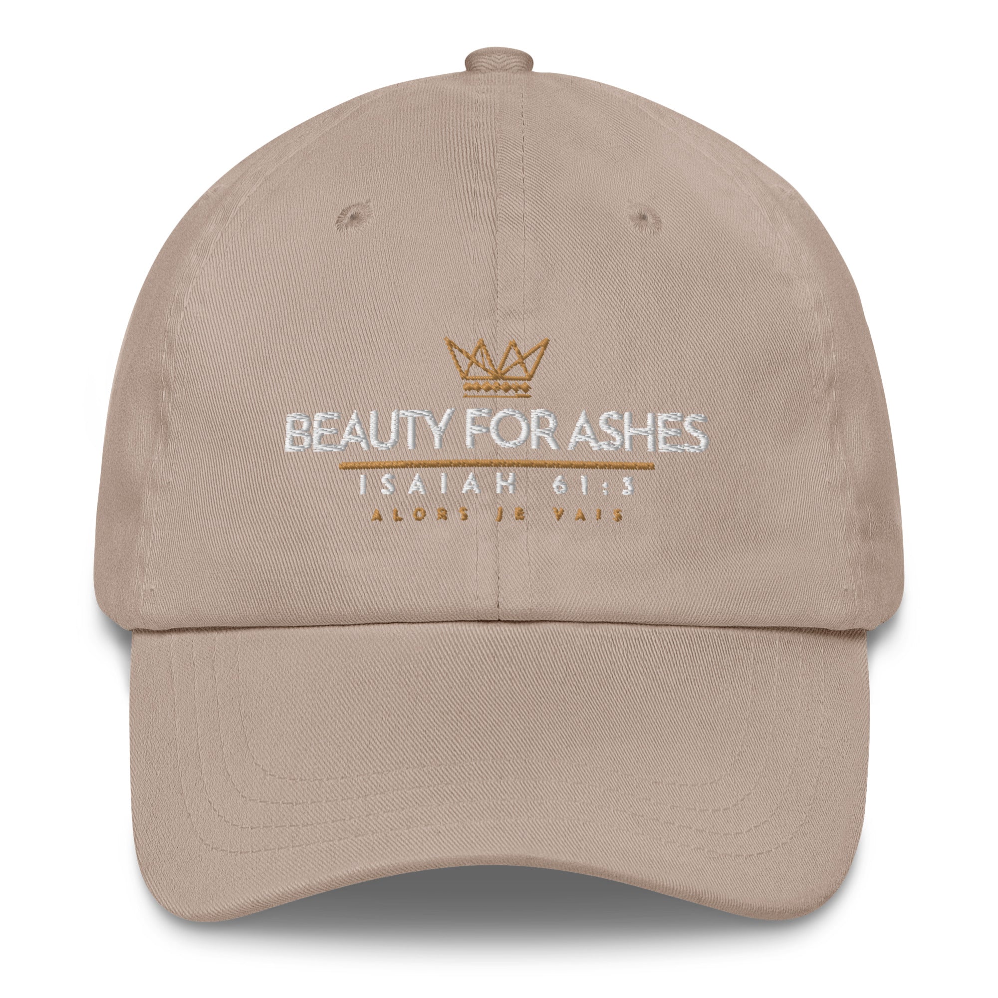 ALORS JE VAIS’ BEAUTY FOR ASHES DAD HAT - Perfect for those days when you want to make a statement without saying a word. This stylish and versatile hat adds a touch of elegance to any outfit and shows off your impeccable taste. With its timeless design and high-quality materials, this hat is a sophisticated accessory for any occasion.