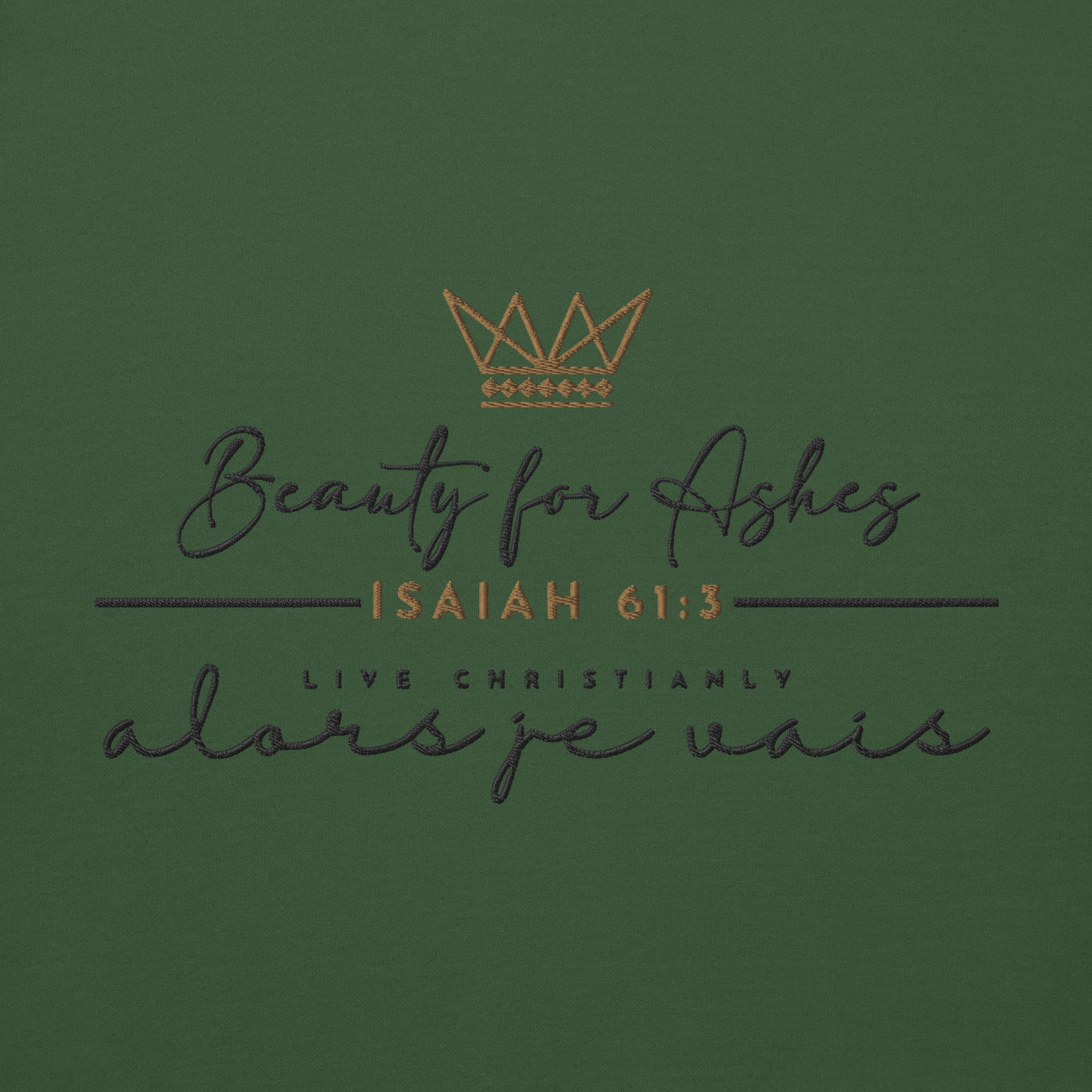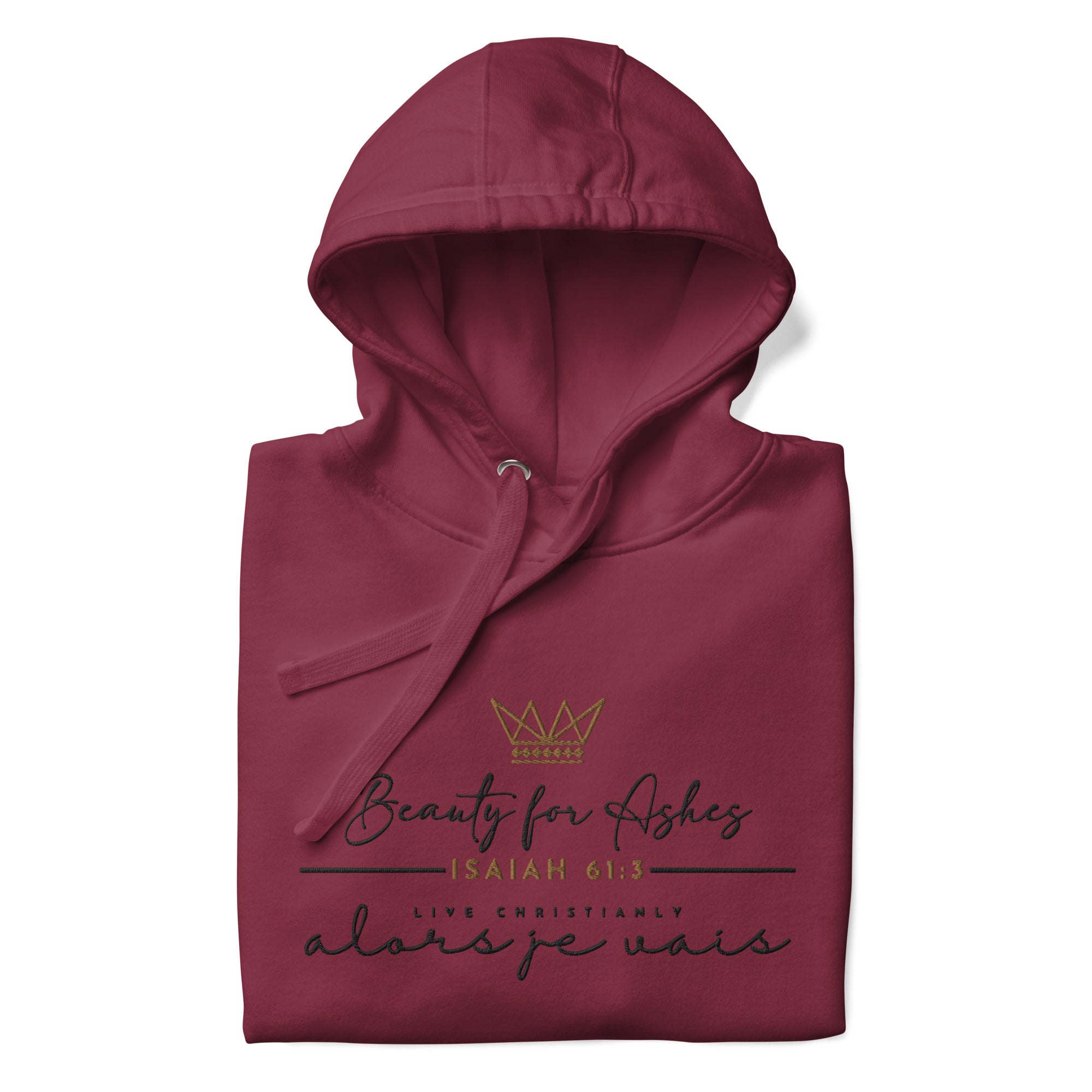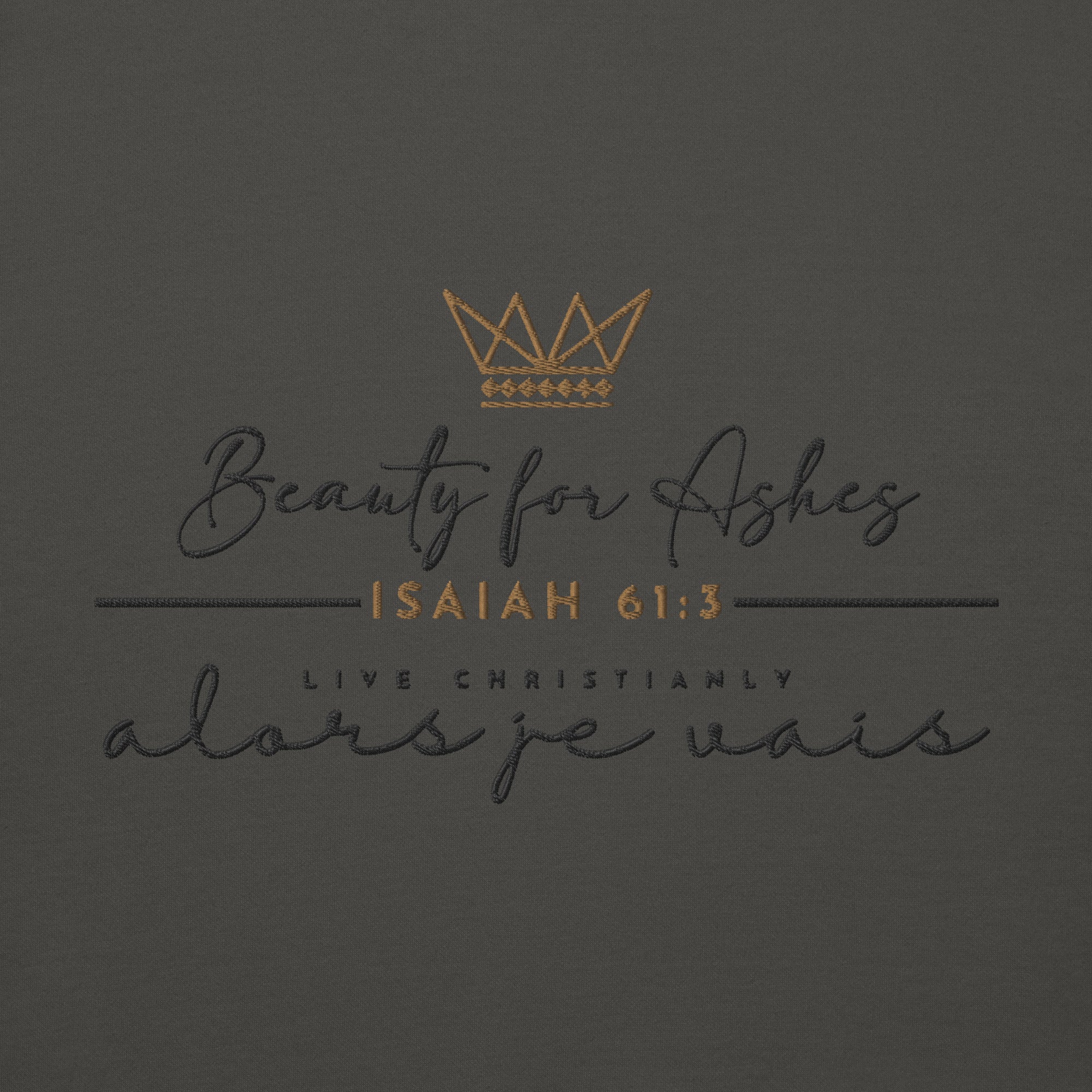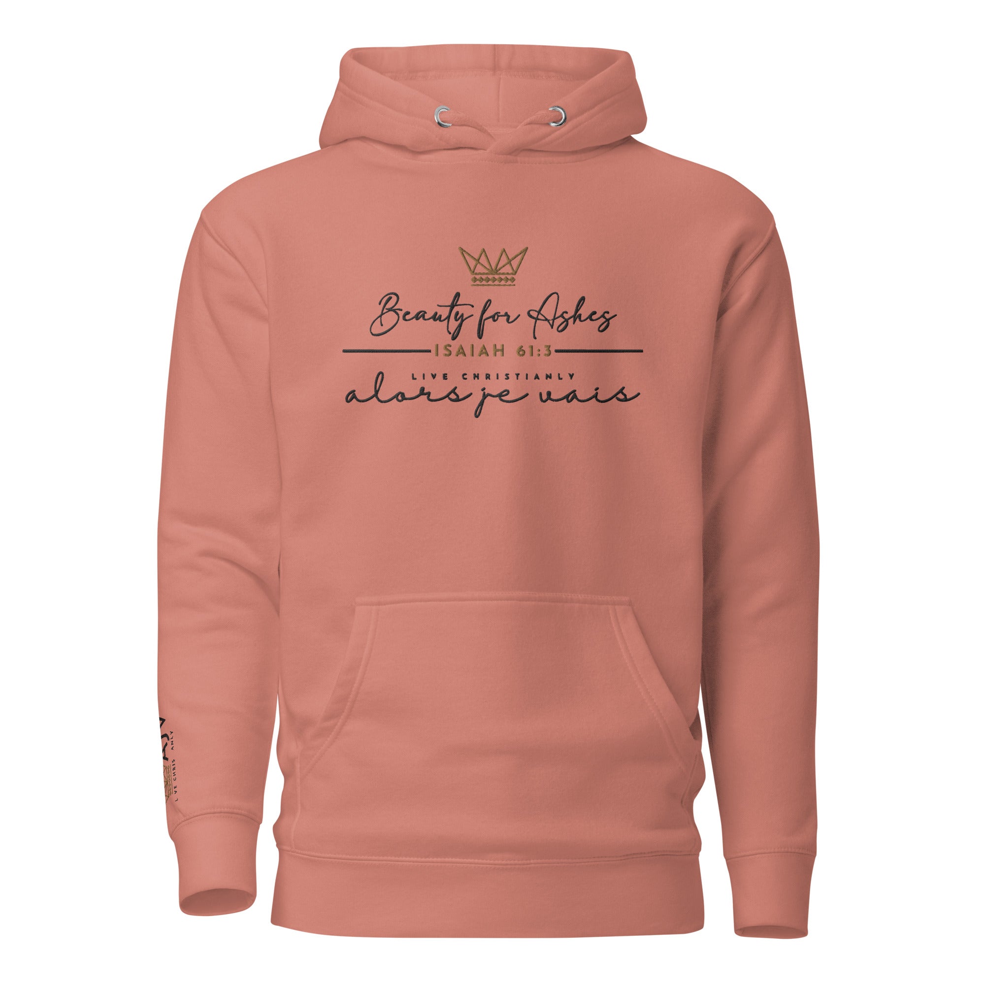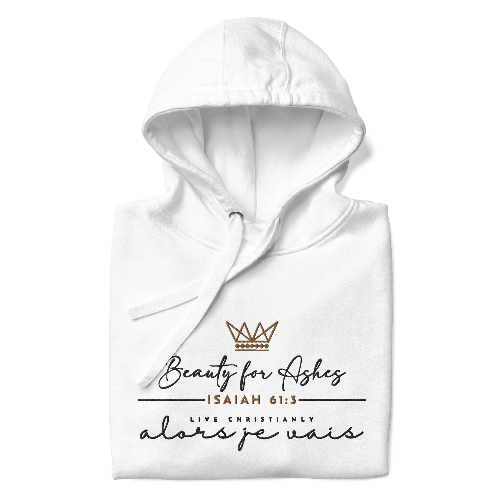 The luxurious way to show off your faith. Wrap yourself in the ultimate comfort and style with our 'BEAUTY FOR ASHES Hoodie'. Perfect for any occasion, this hoodie serves as a reminder of your devotion while elevating your wardrobe. Crafted with the highest quality materials, it's a must-have for any fashion-forward believer; a product loved by those with discerning taste.in the warmth of love and tranquility that only comes from loving Jesus.