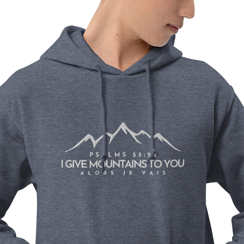 Introducing our MOUNTAINS HODDIE, the perfect companion for your everyday life. Wrap yourself in its embrace and feel an elevated sense of style and luxury. Our hoodie offers both functionality and sophistication - whether you're running errands or exploring the great outdoors. With its artistic design and impeccable quality, you can trust that it will withstand the test of time. Take on any challenge with ease, knowing that you're always dressed for success at peace as you: GIVE GOD YOUR CARES AND CONCERNS, BOTH BIG AND SAMLL IN JESUS NAME!