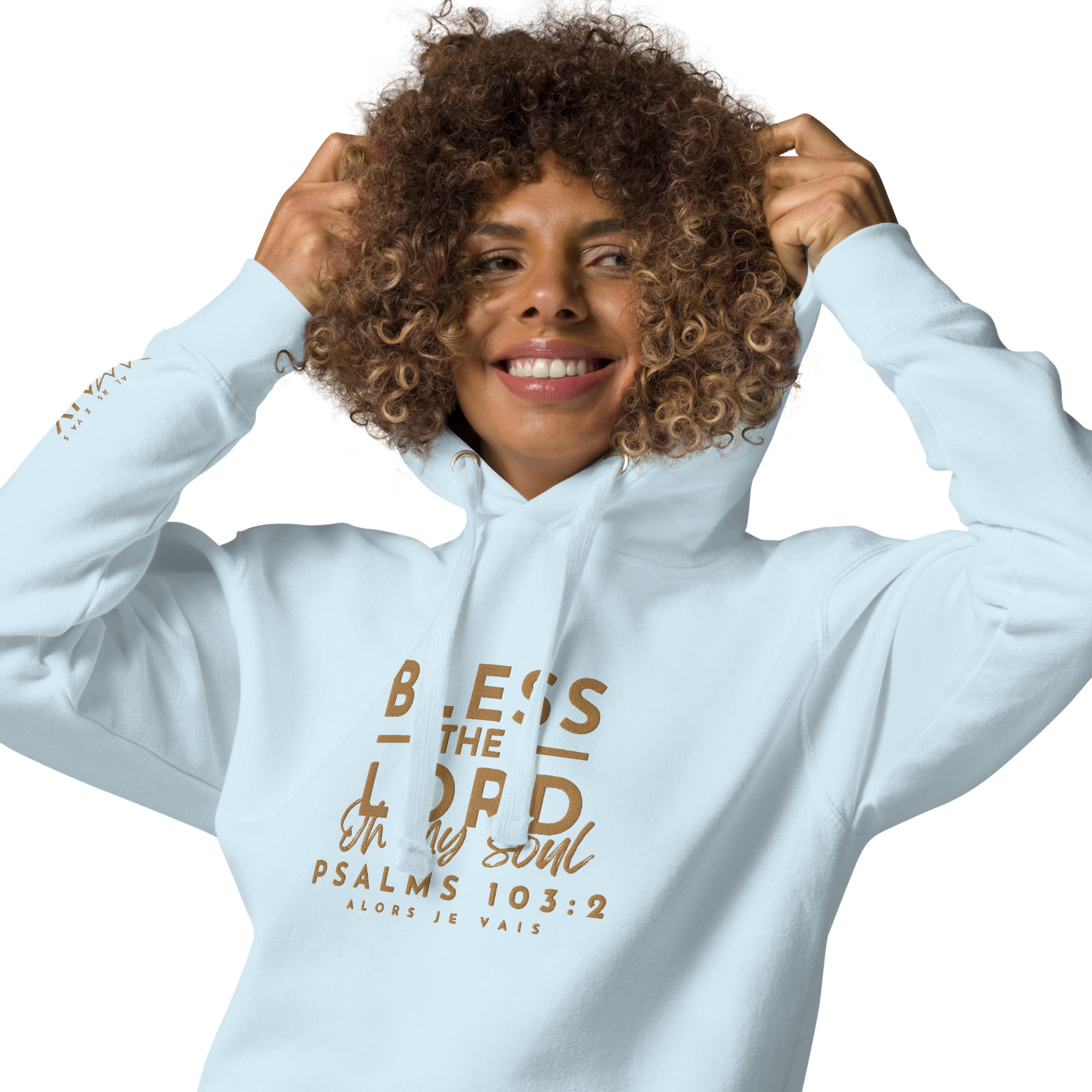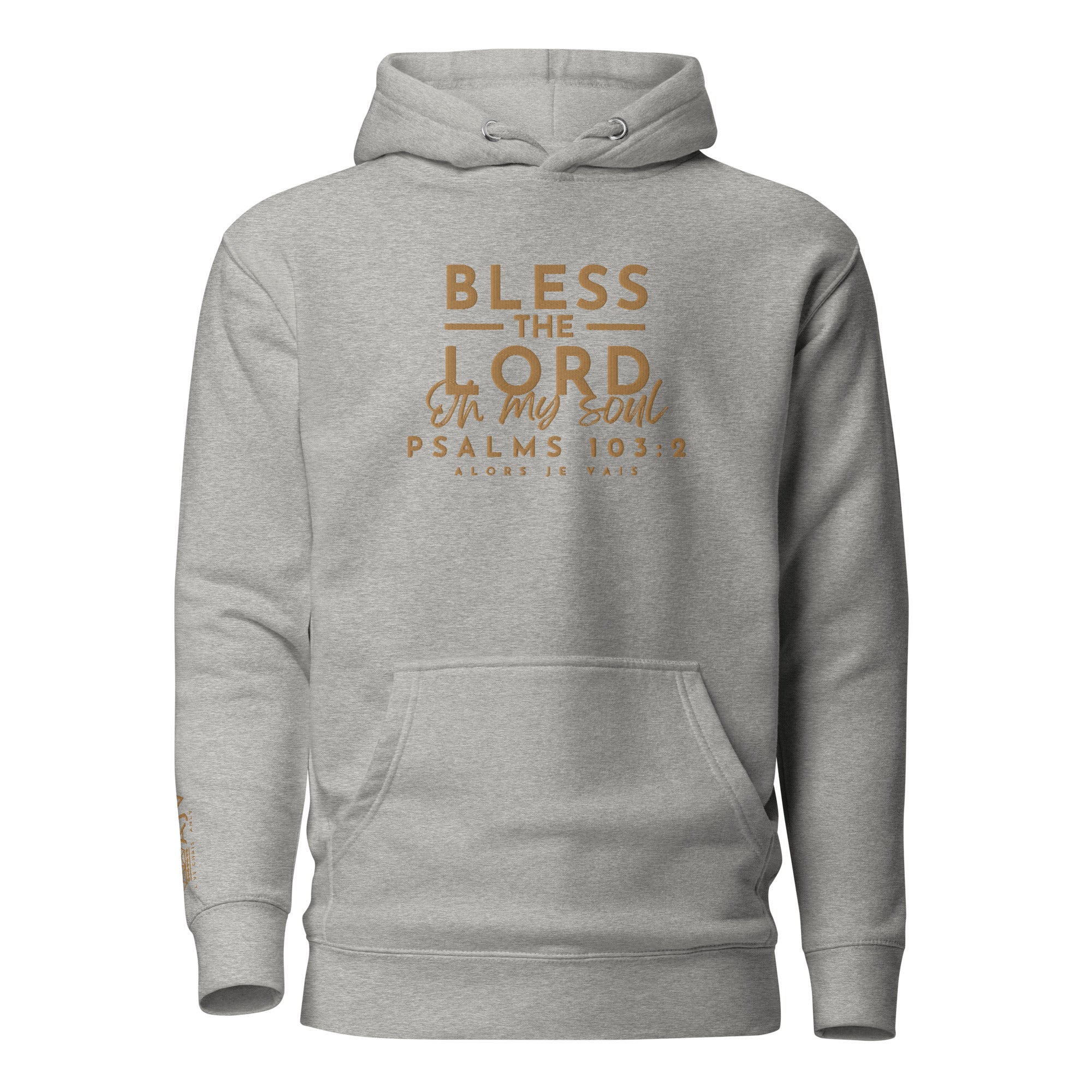 Elevate your style game and express your gratitude with this luxurious hoodie. Let this sophisticated and exclusive design be a reminder to bless the Lord, every single day.