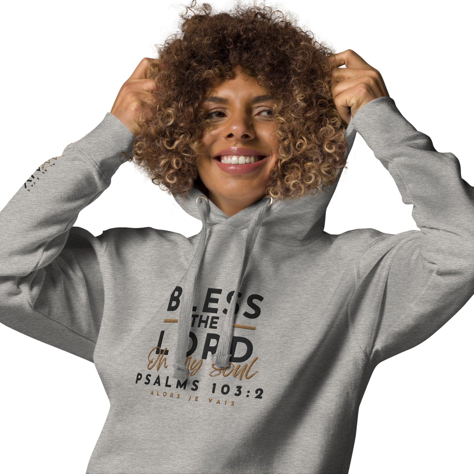 Elevate your style game and express your gratitude with this luxurious hoodie. Let this sophisticated and exclusive design be a reminder to bless the Lord, every single day.