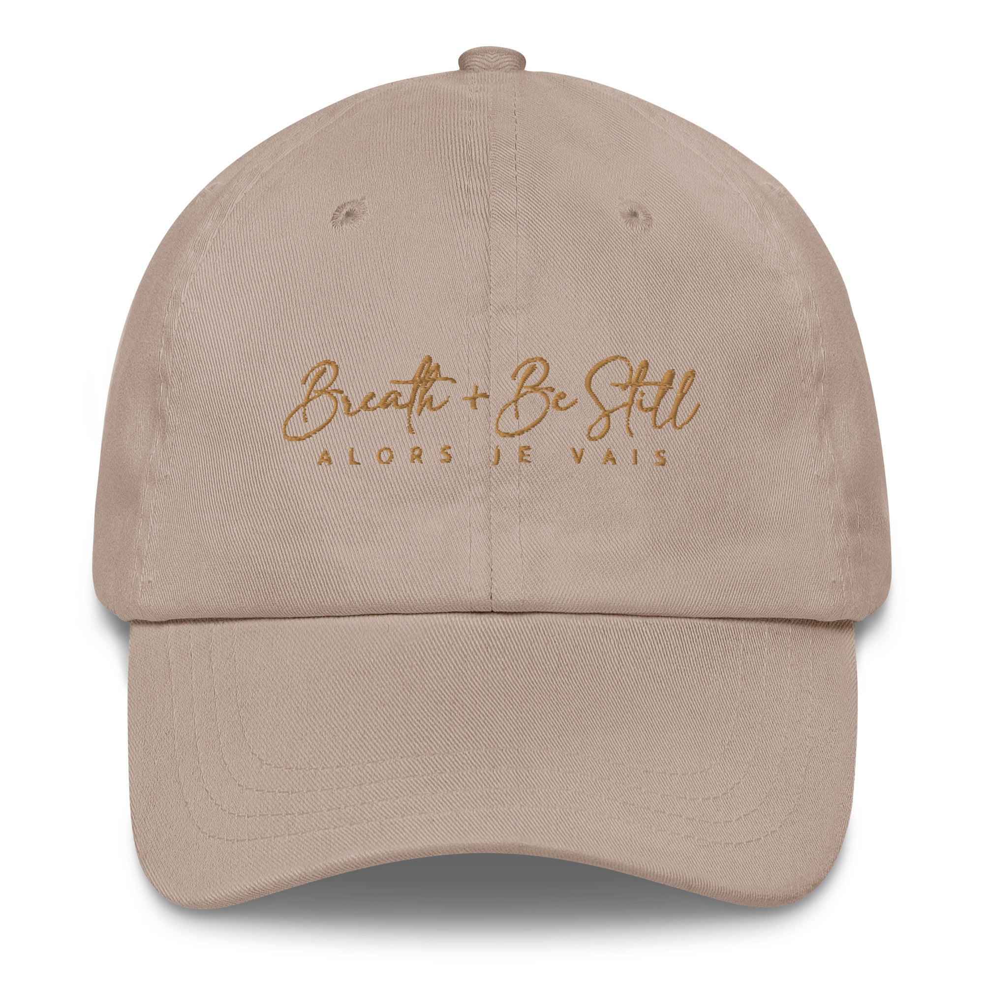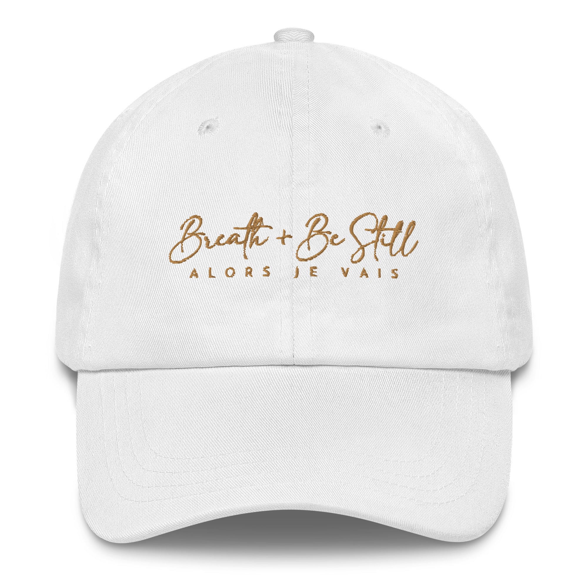 ALORS JE VAIS’ BE STILL HAT Embrace the art of peaceful living with this sophisticated and exclusive cap. Let your faith take center stage and stay tranquil as you are reminded that YOU HAVE A GOD that takes GOOD care of you and us all as we remain rooted and grounded in our faith in Him. Let this hat be a reminder to let go of worries and find peace in stillness in the tried and true character of the Lord and His provision.