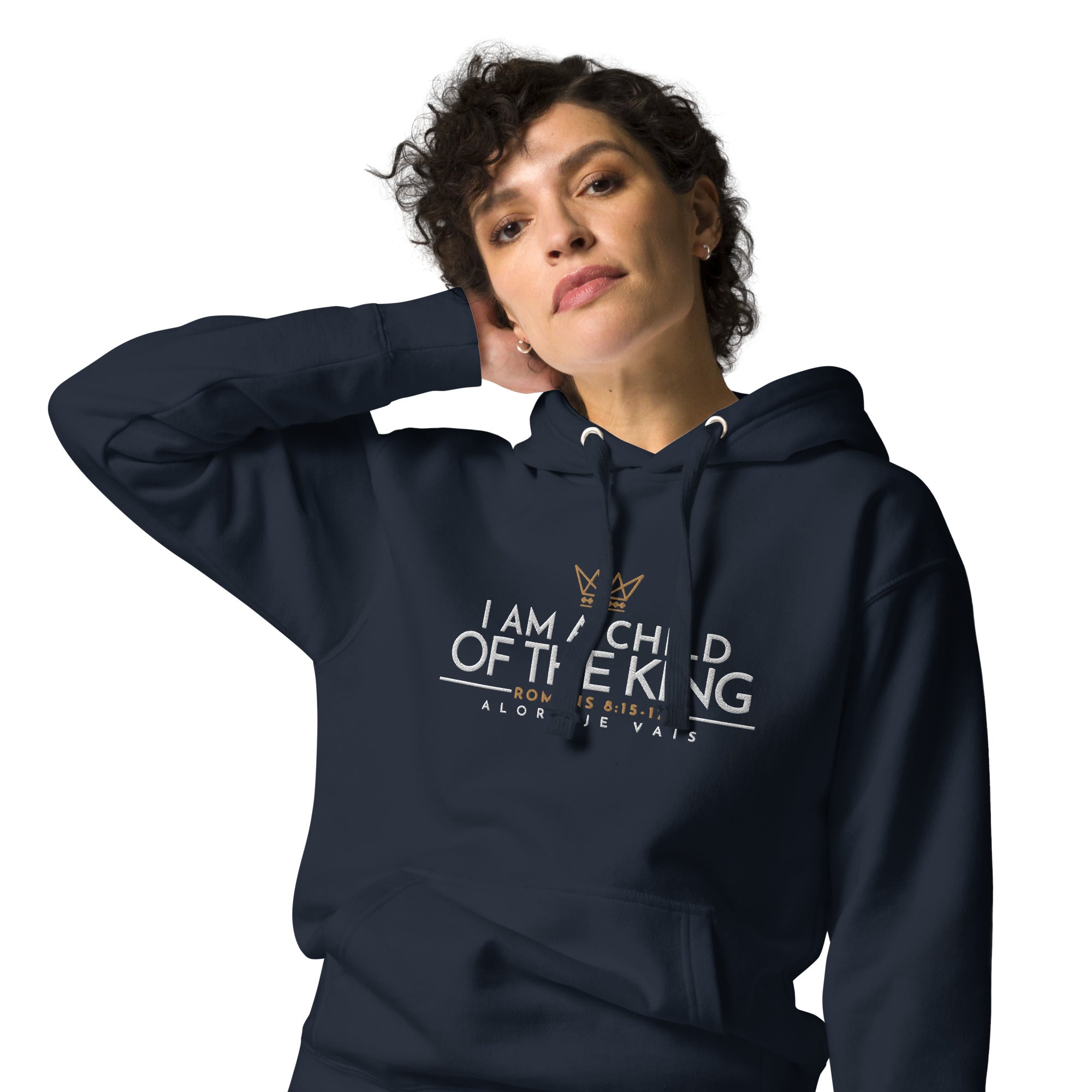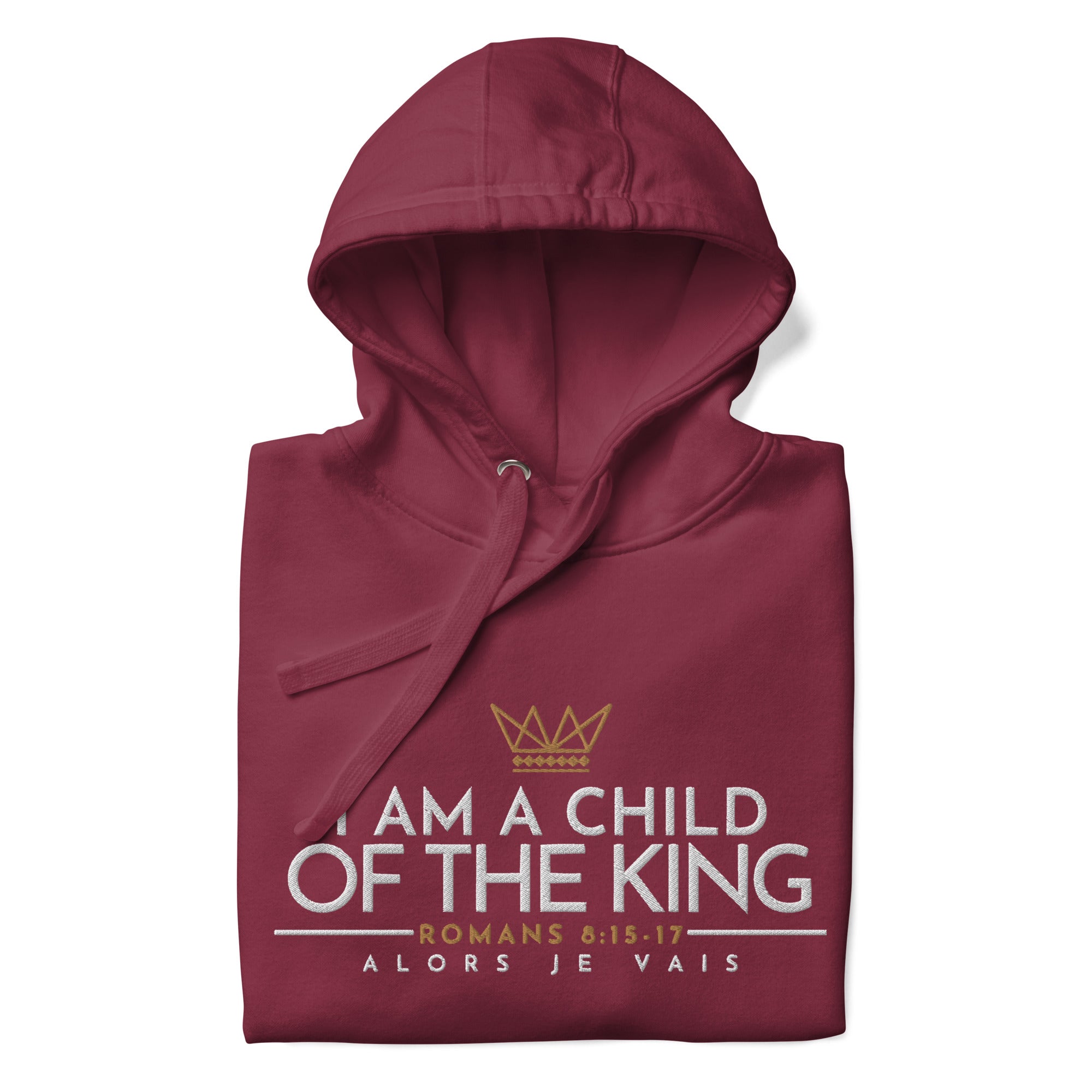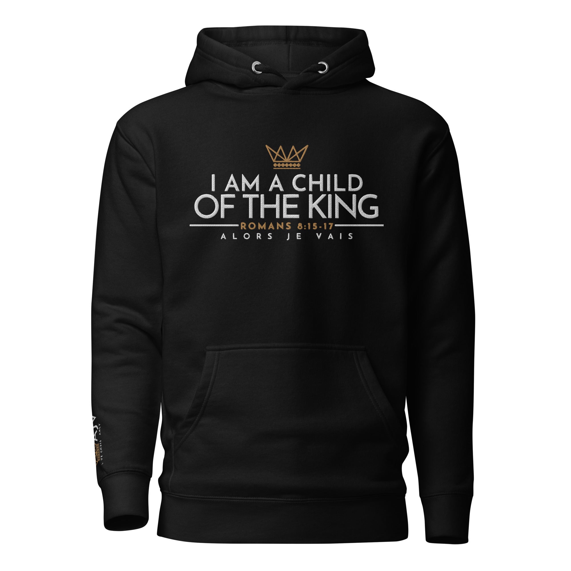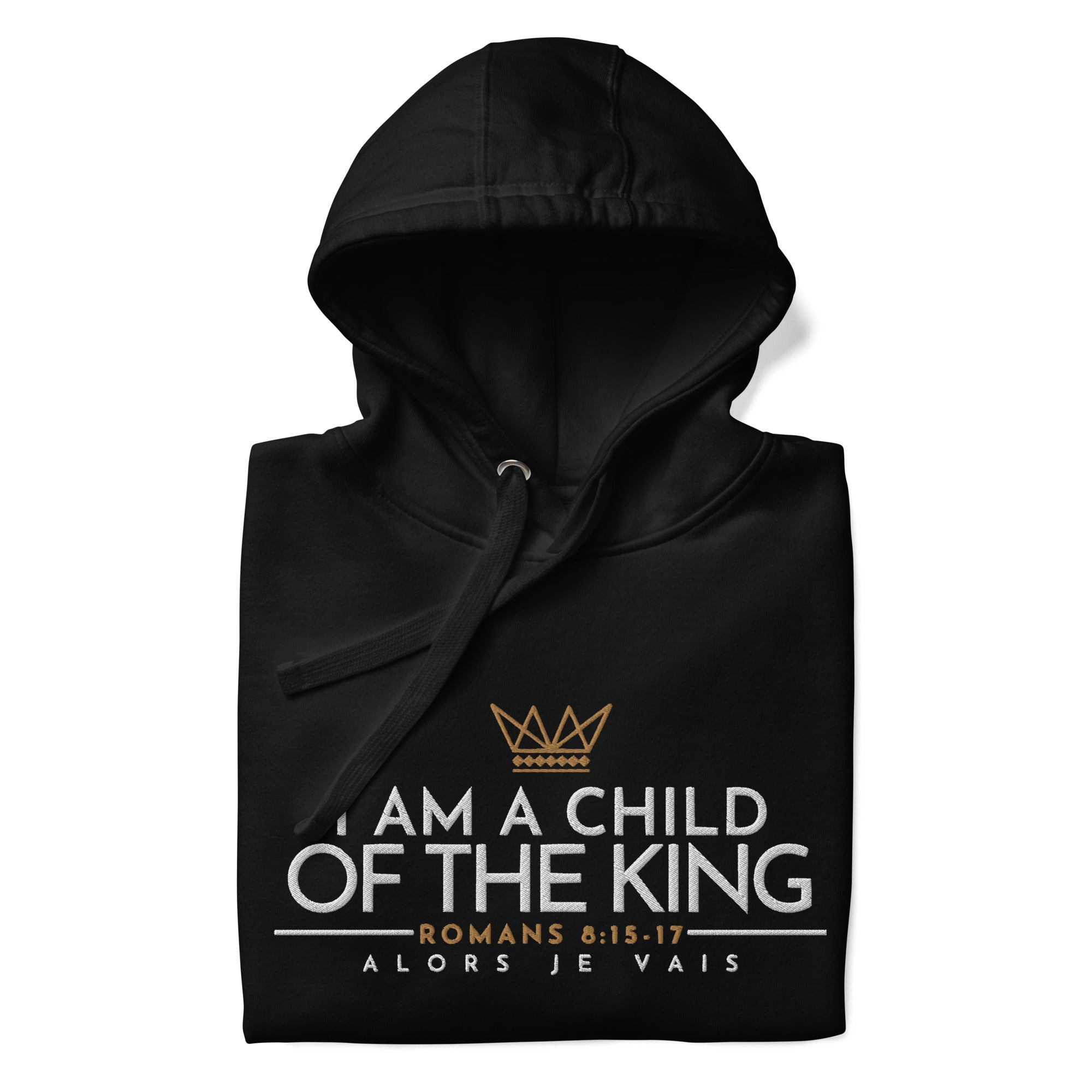 Make a statement with this luxurious and exclusive ALORS JE VAIS hoodie. Elevate your style and stand out from the crowd with the high-quality materials and designed with heart of grace, humility and love for Our Lord and Savior Christ Jesus. It's a must-have for those who appreciate a little luxury while they make a bold statement of Faith + Love.