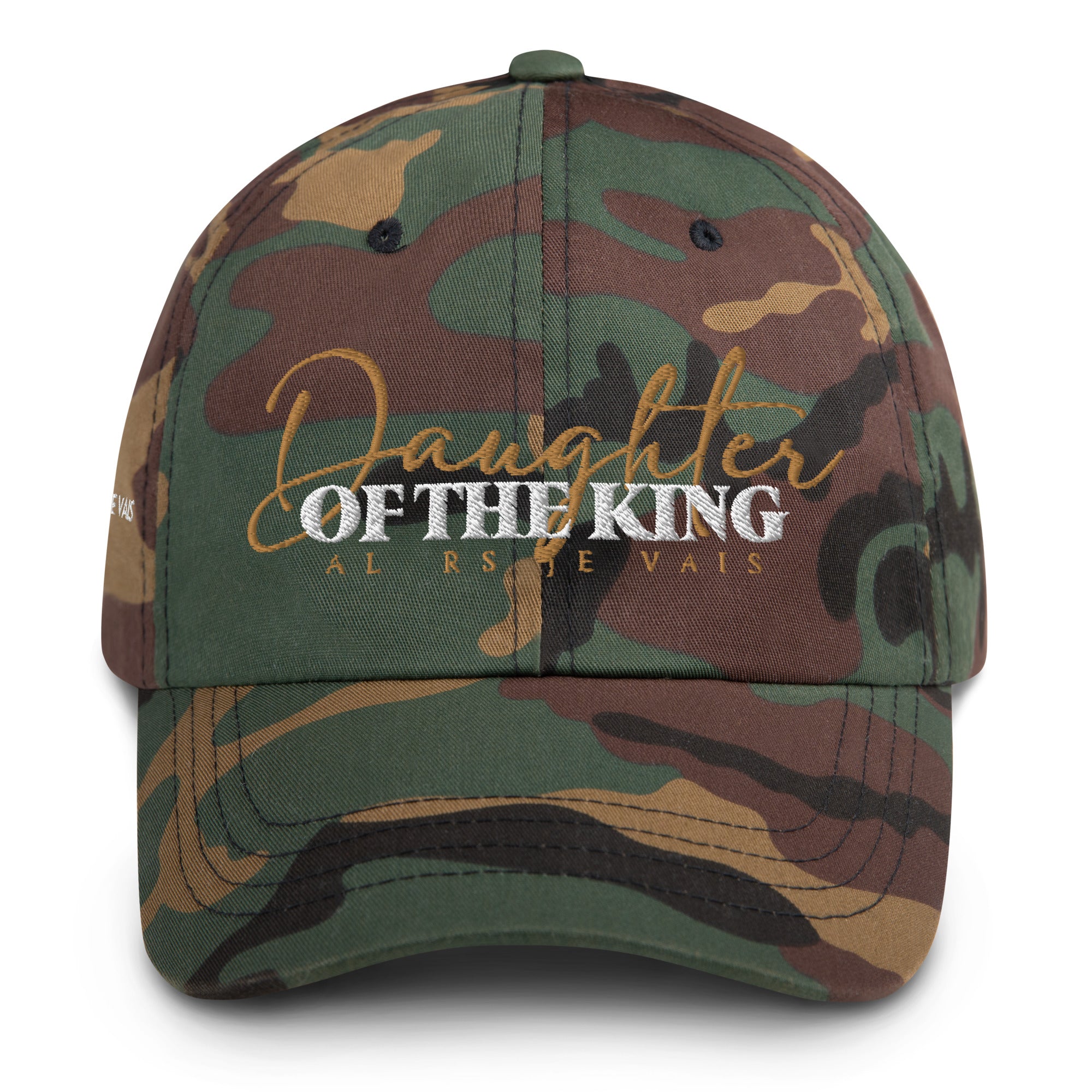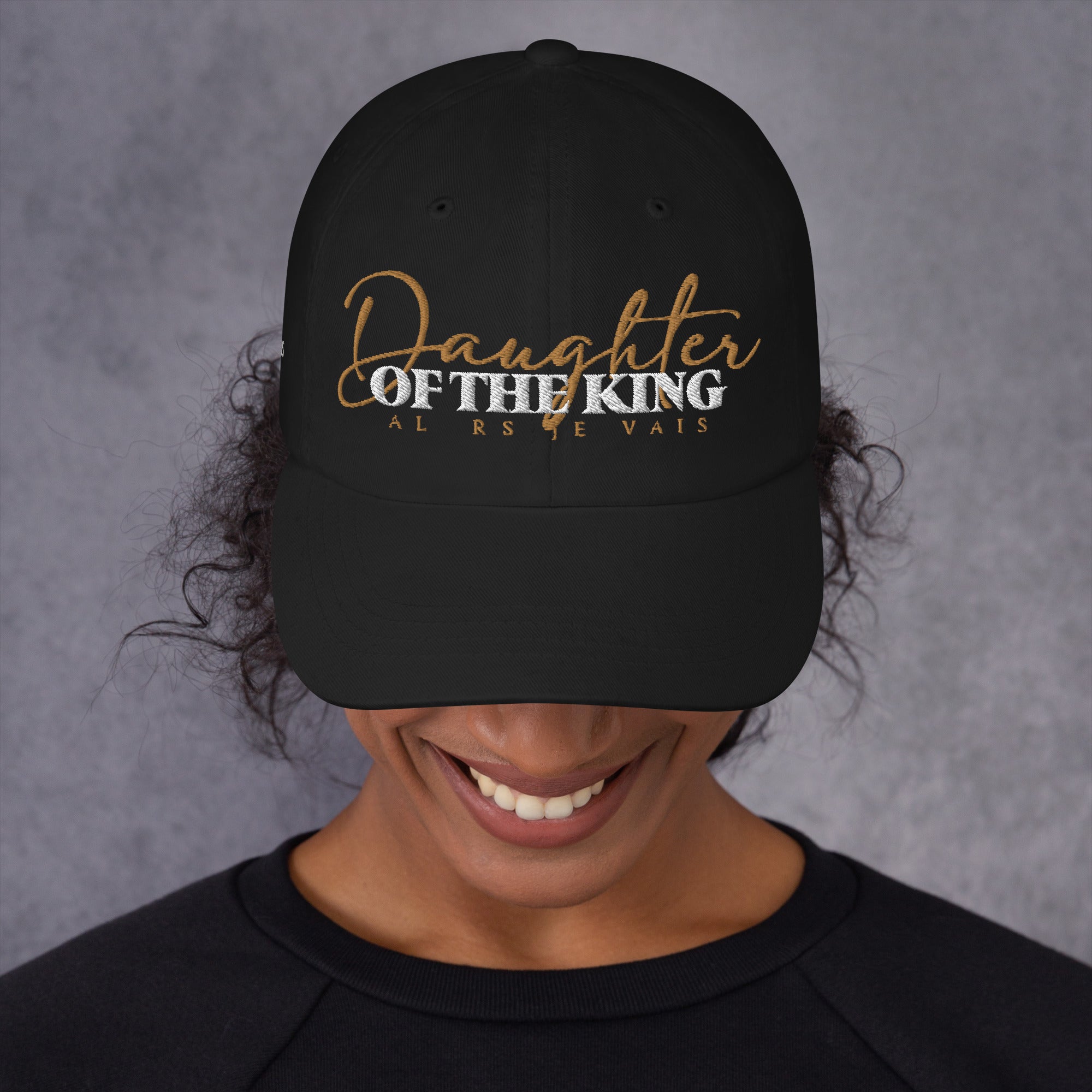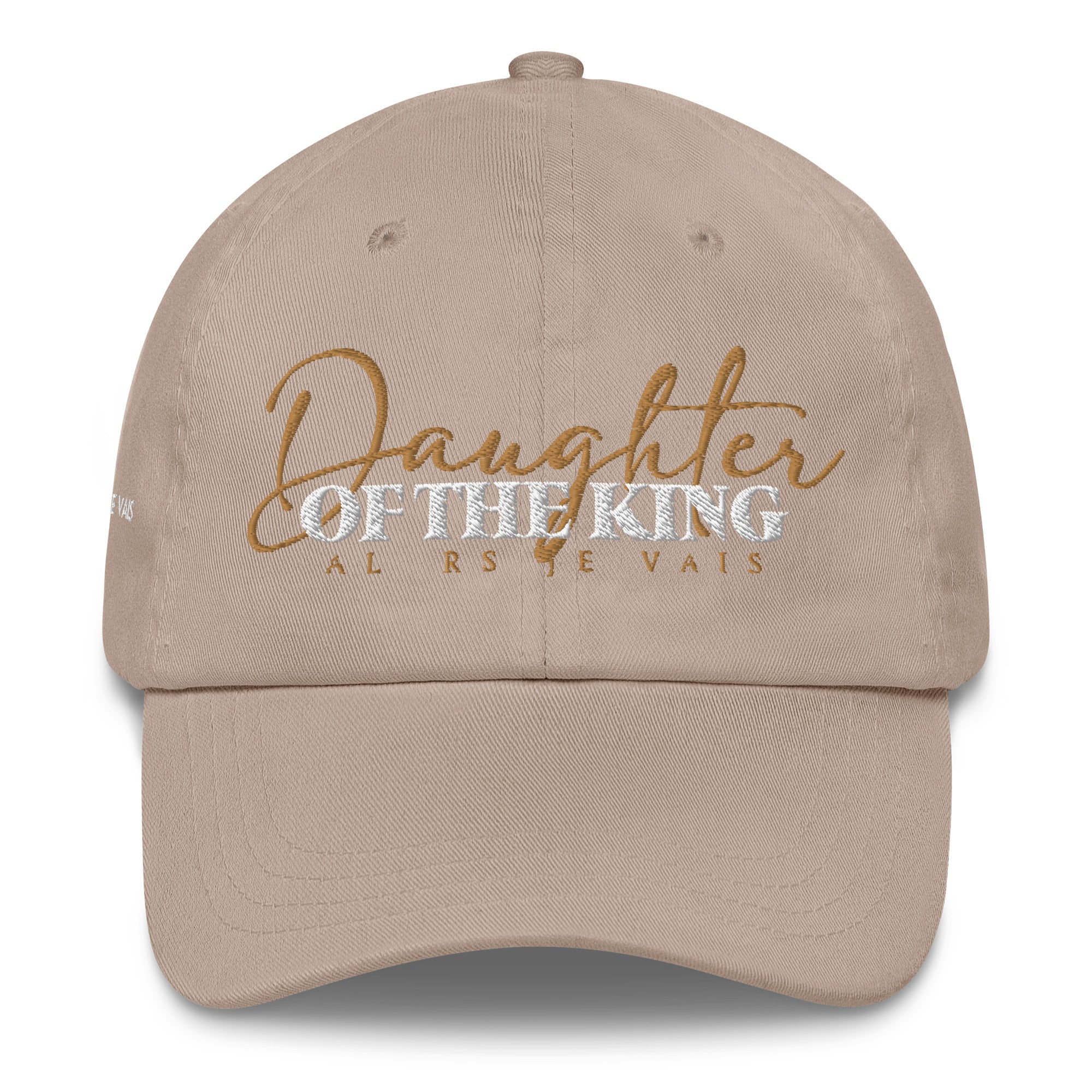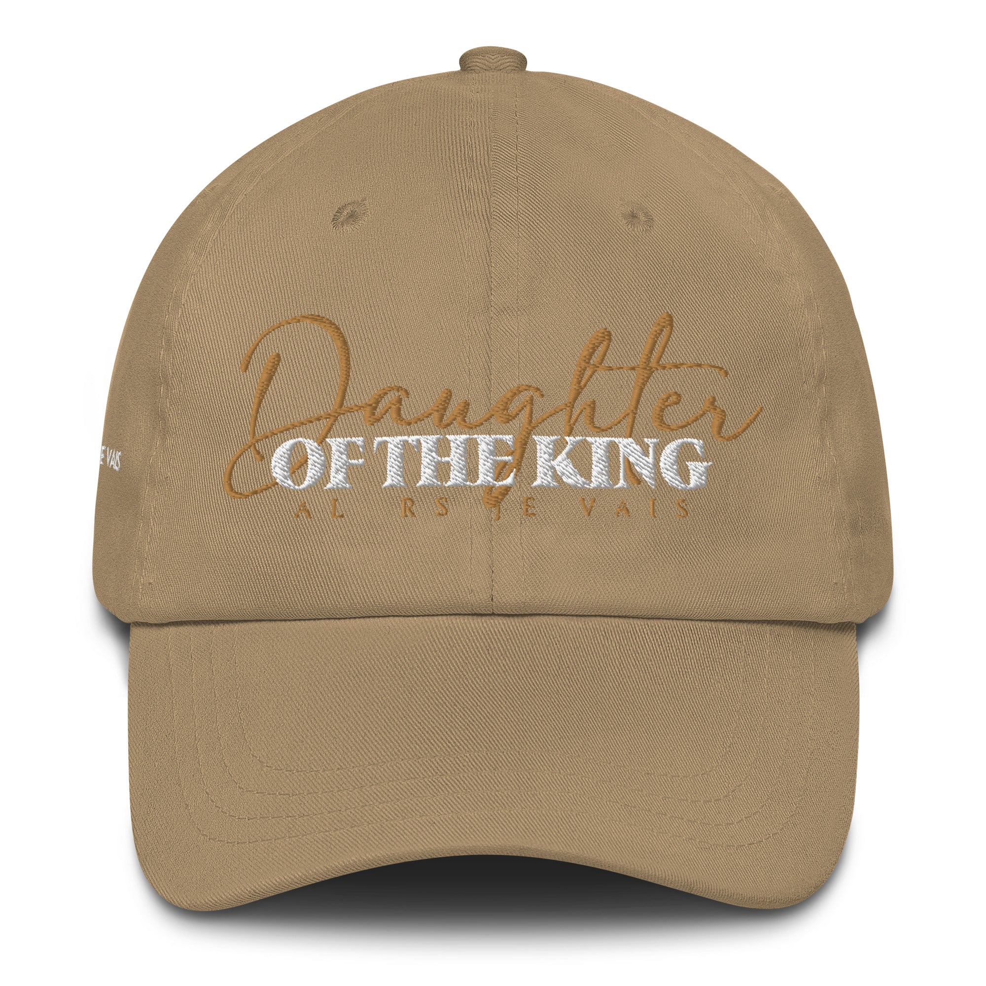Daughter of The King DAD HAT - Transform any outfit into a statement piece. Crafted with the finest materials and a sleek, modern design, our DAUGHTER OF THE KING DAD HAT will elevate your look, leave a lasting impression and make a statement wherever you go. It's time to embrace your Christian Royalty with this expression of love and loyalty!