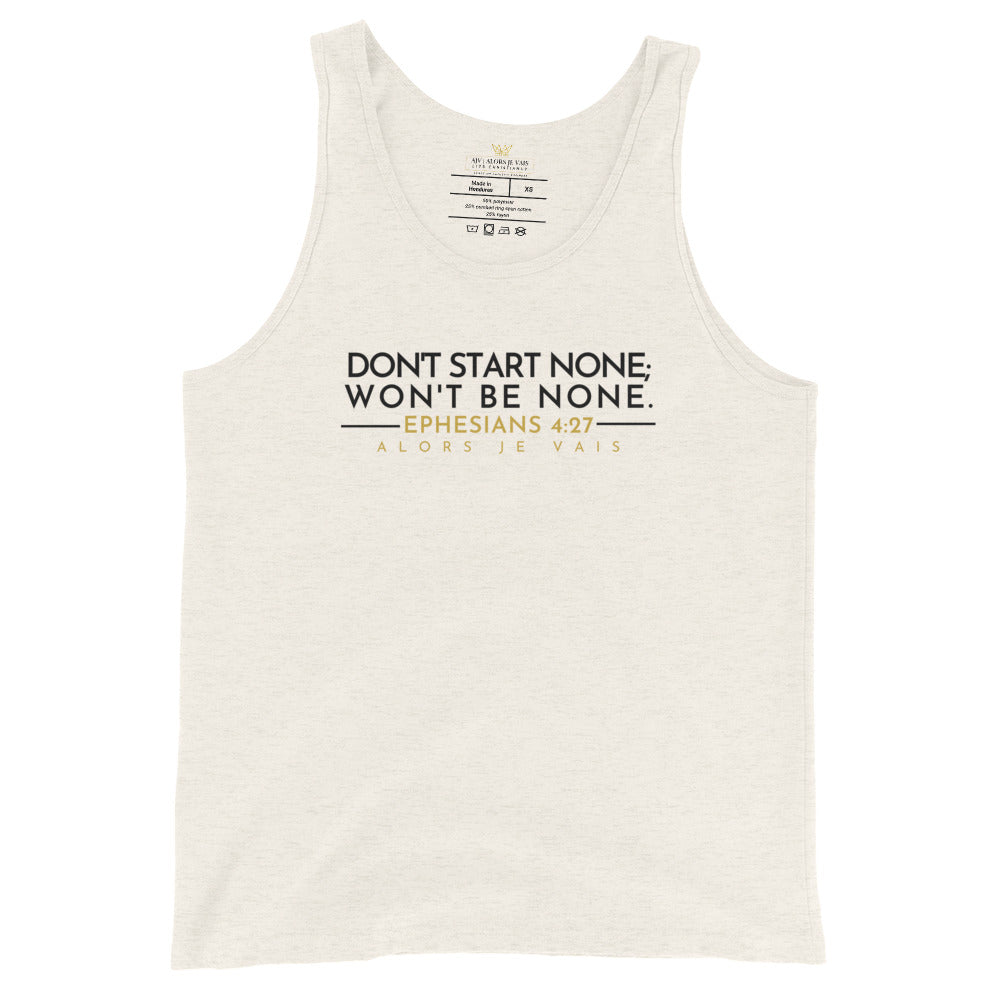 "Designed to keep your mind and body strong, our unisex tank top serves as a powerful reminder to stay focused and stay on track."
