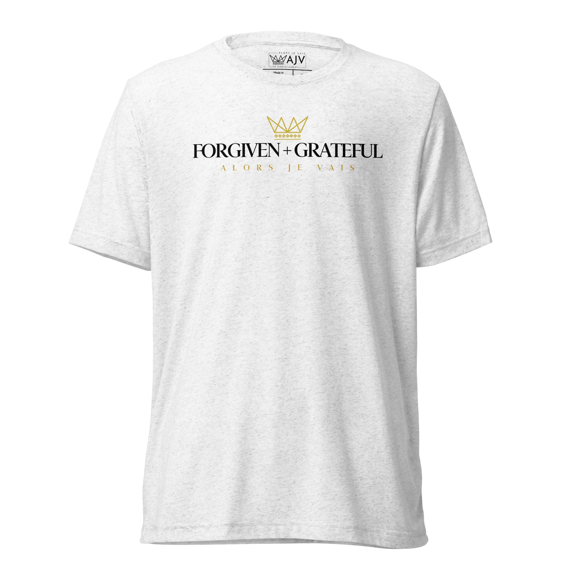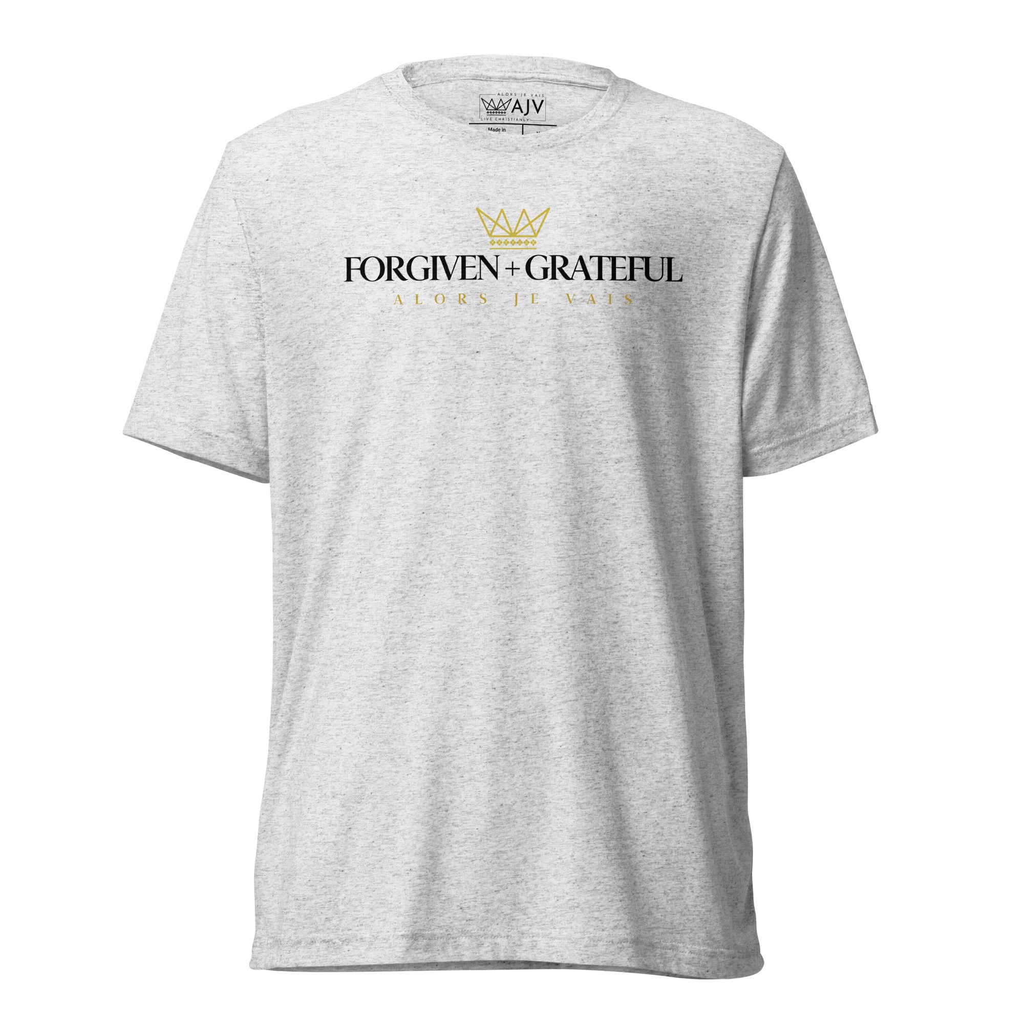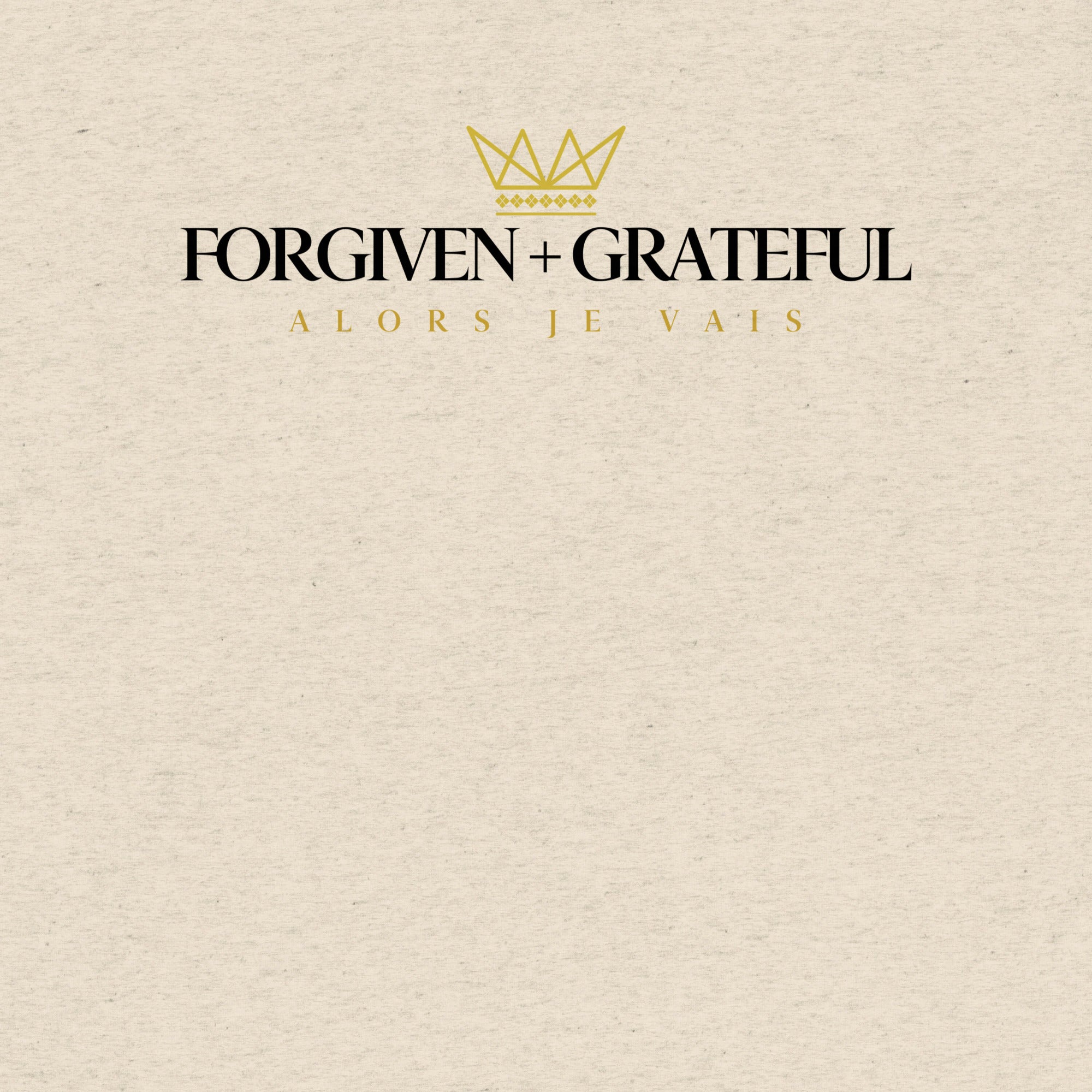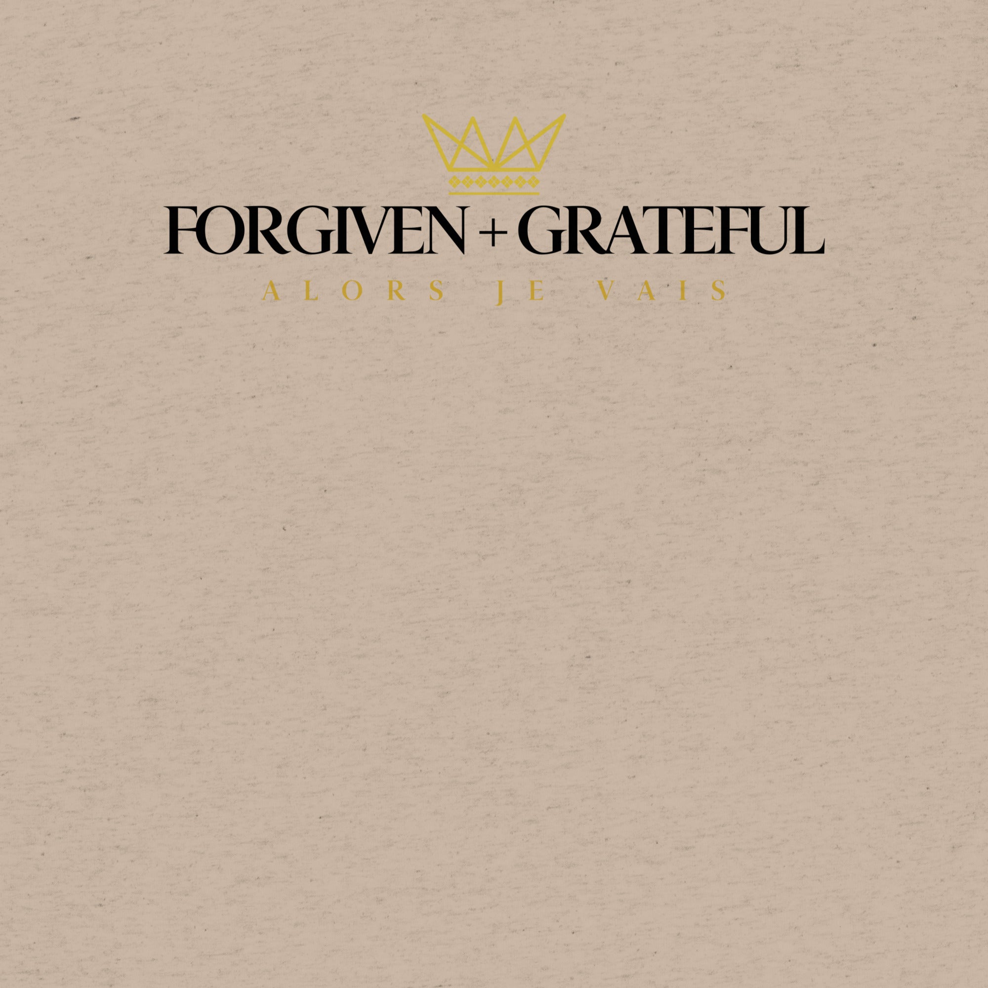 This ALORS JE VAIS tee embodies the concepts of forgiveness and gratitude from God, through Christ. You'll feel the warmth and comfort of this exclusive premium product, making it the perfect addition to any stylish wardrobe.
