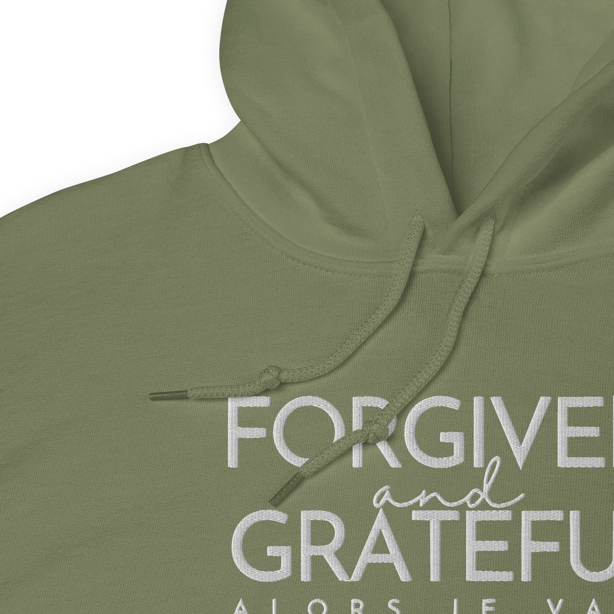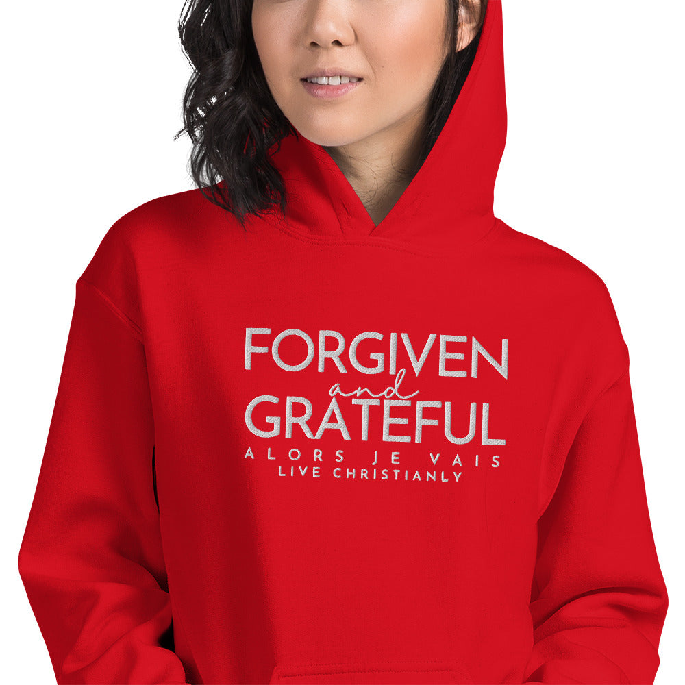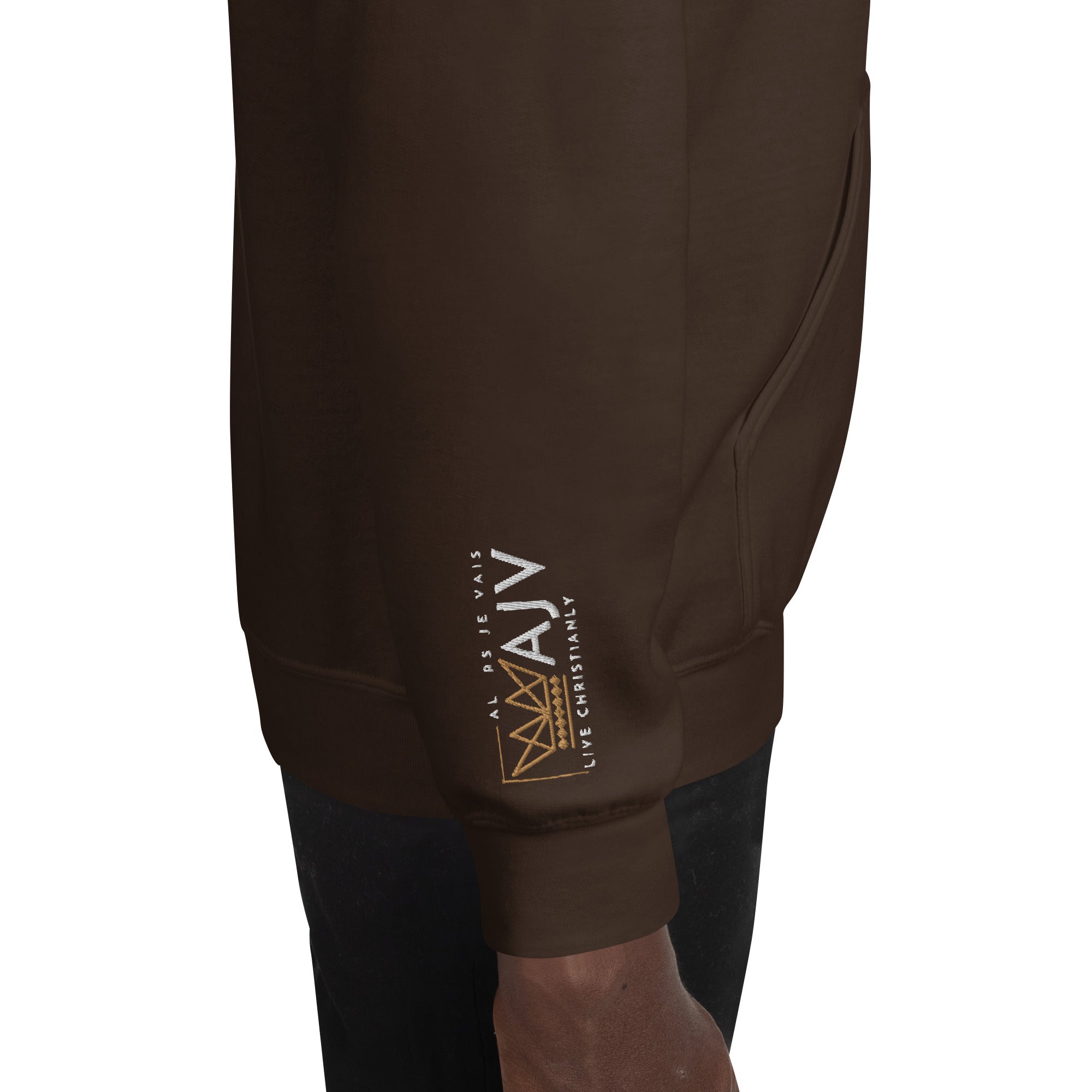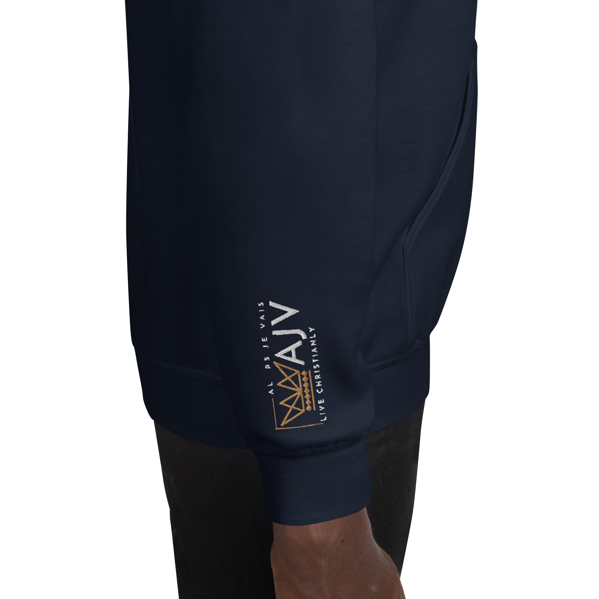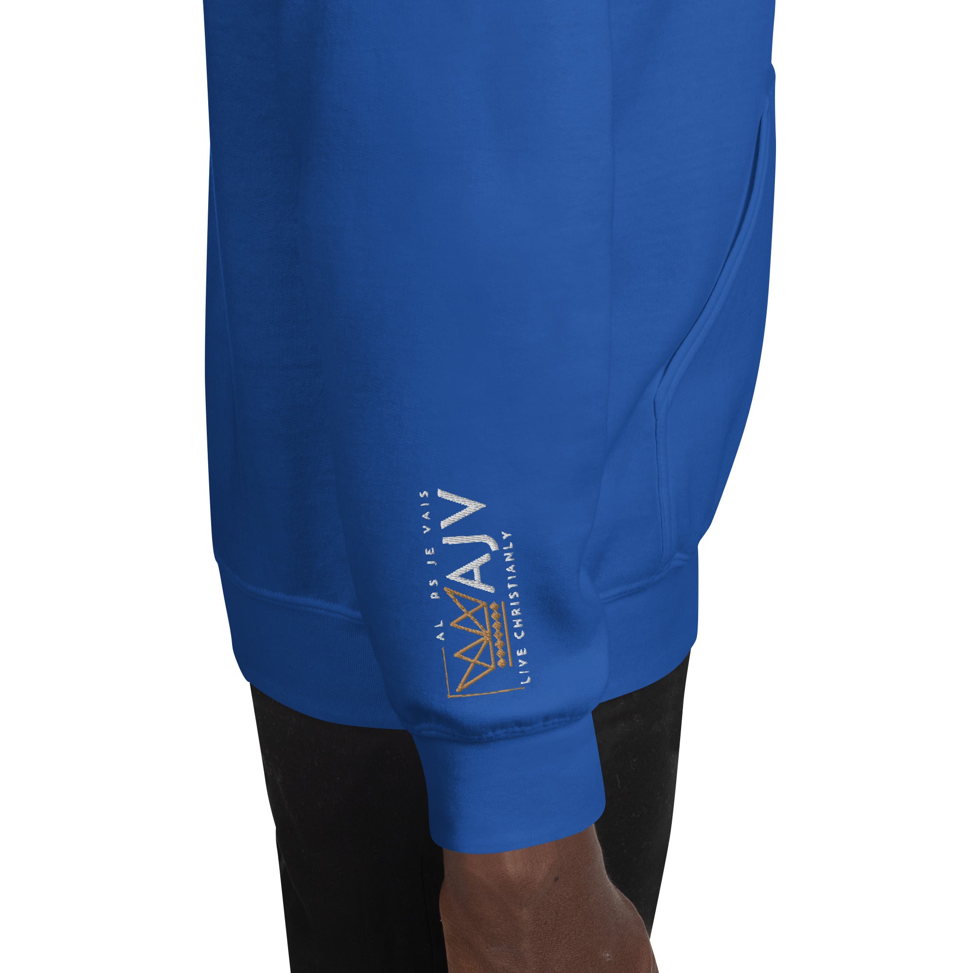 This ALORS JE VAIS Hoodie embodies the concepts of forgiveness and gratitude from God, through Christ. You'll feel the warmth and comfort of this exclusive premium product, making it the perfect addition to any stylish wardrobe.