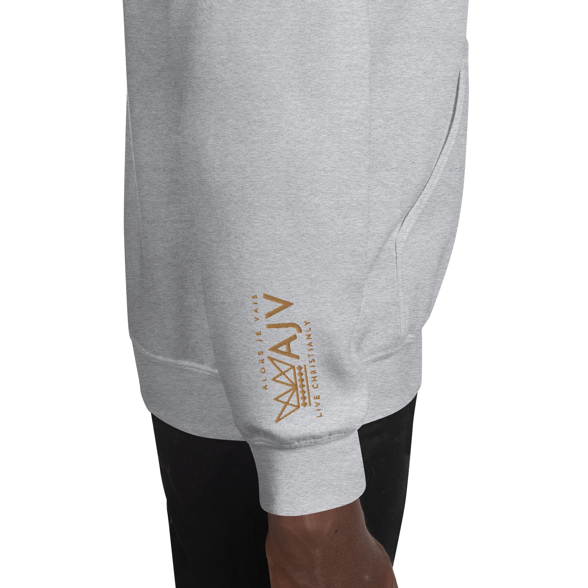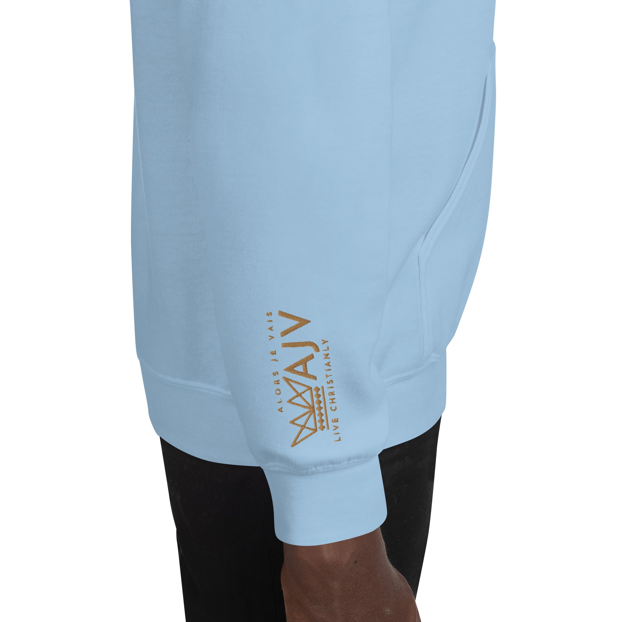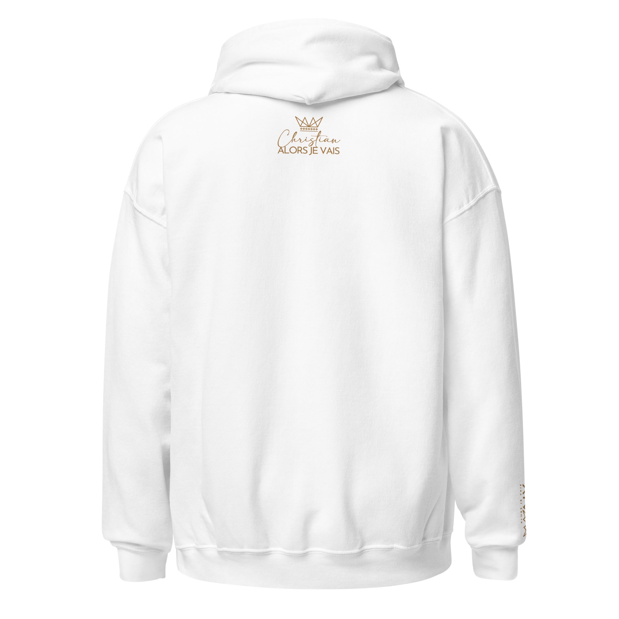 This ALORS JE VAIS Hoodie embodies the concepts of forgiveness and gratitude from God, through Christ. You'll feel the warmth and comfort of this exclusive premium product, making it the perfect addition to any stylish wardrobe.