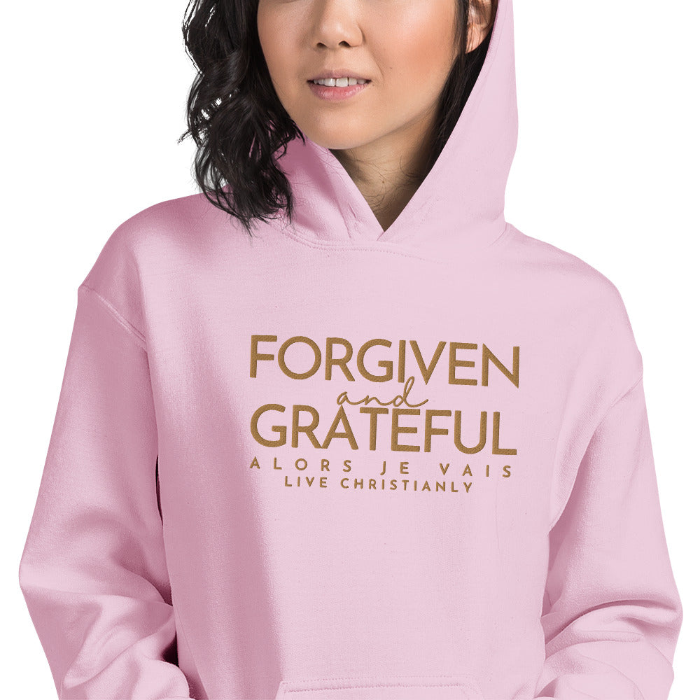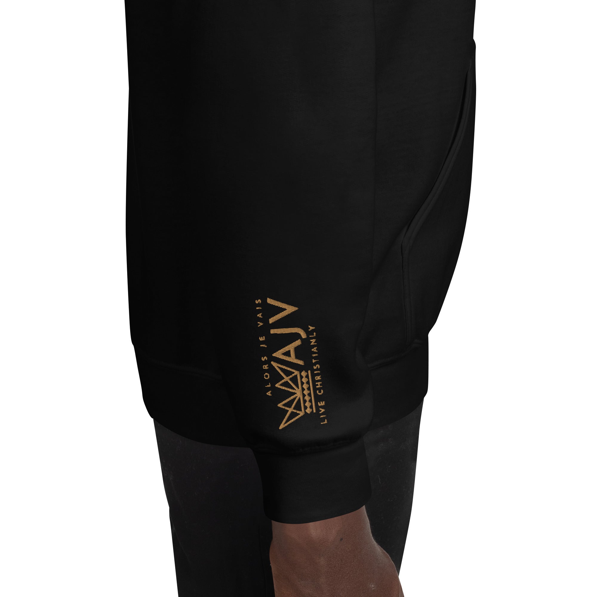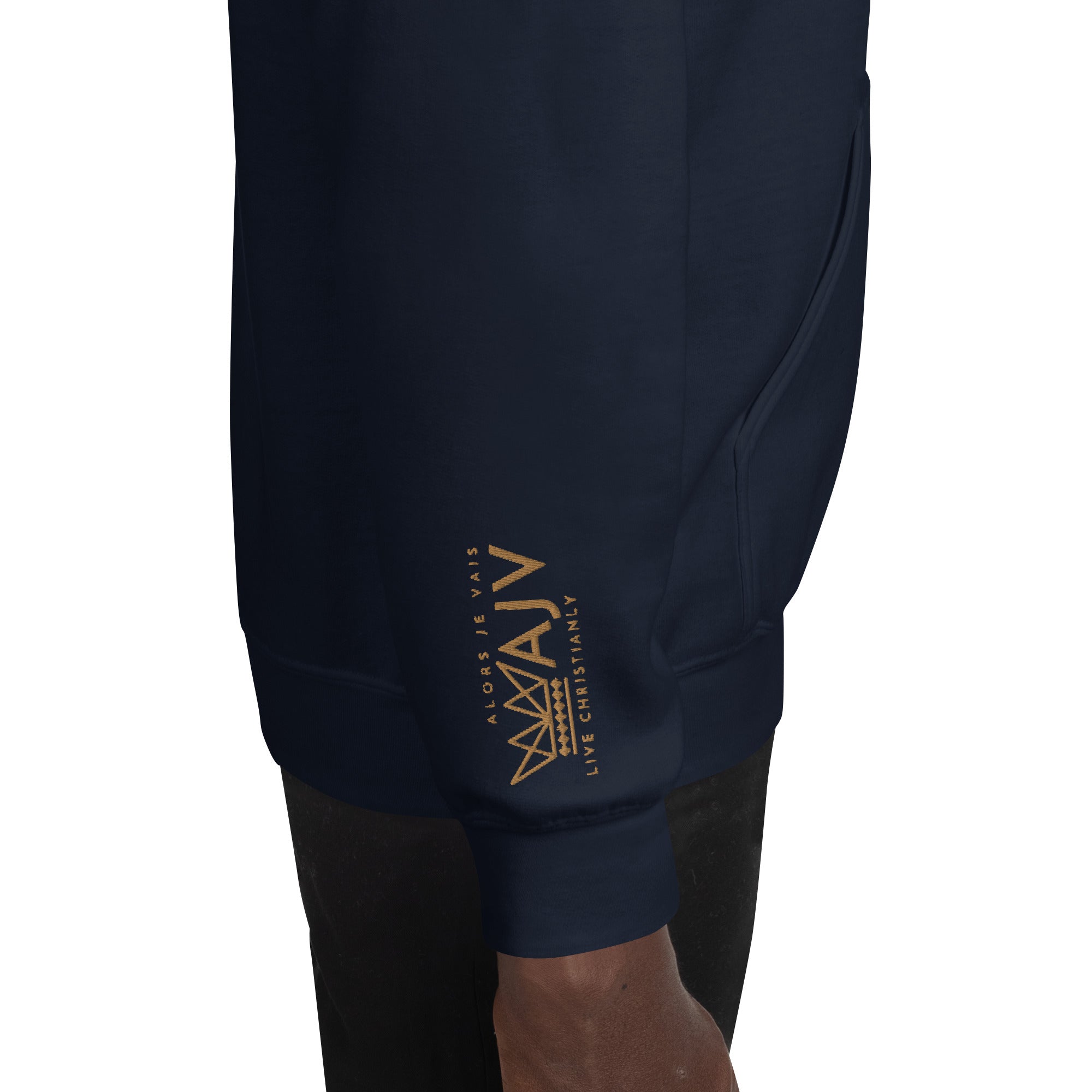 This ALORS JE VAIS Hoodie embodies the concepts of forgiveness and gratitude from God, through Christ. You'll feel the warmth and comfort of this exclusive premium product, making it the perfect addition to any stylish wardrobe.