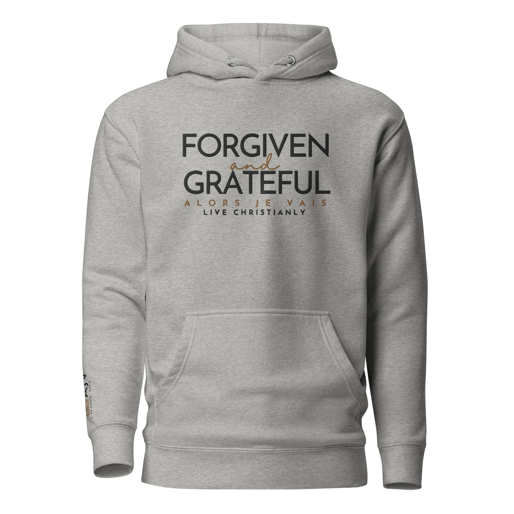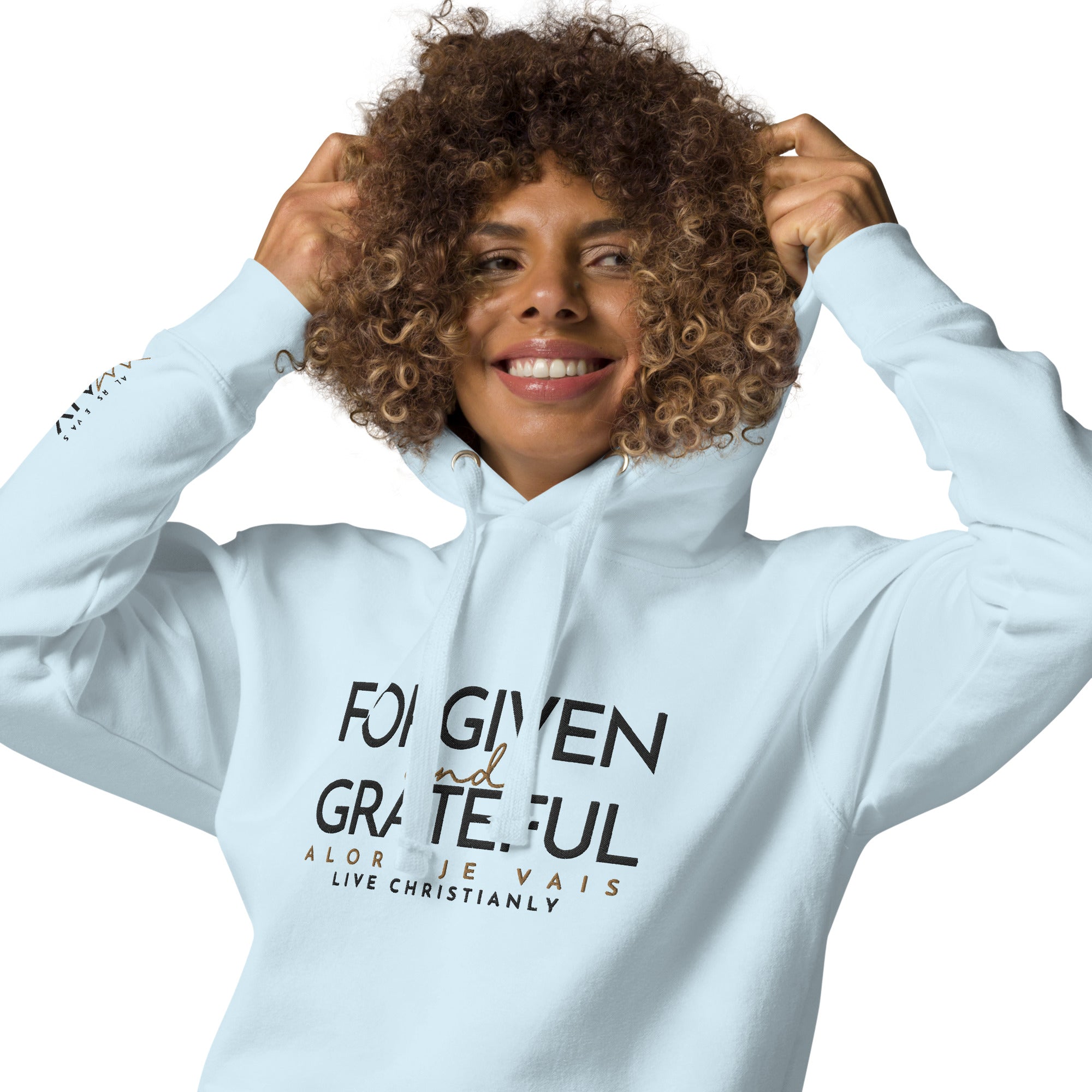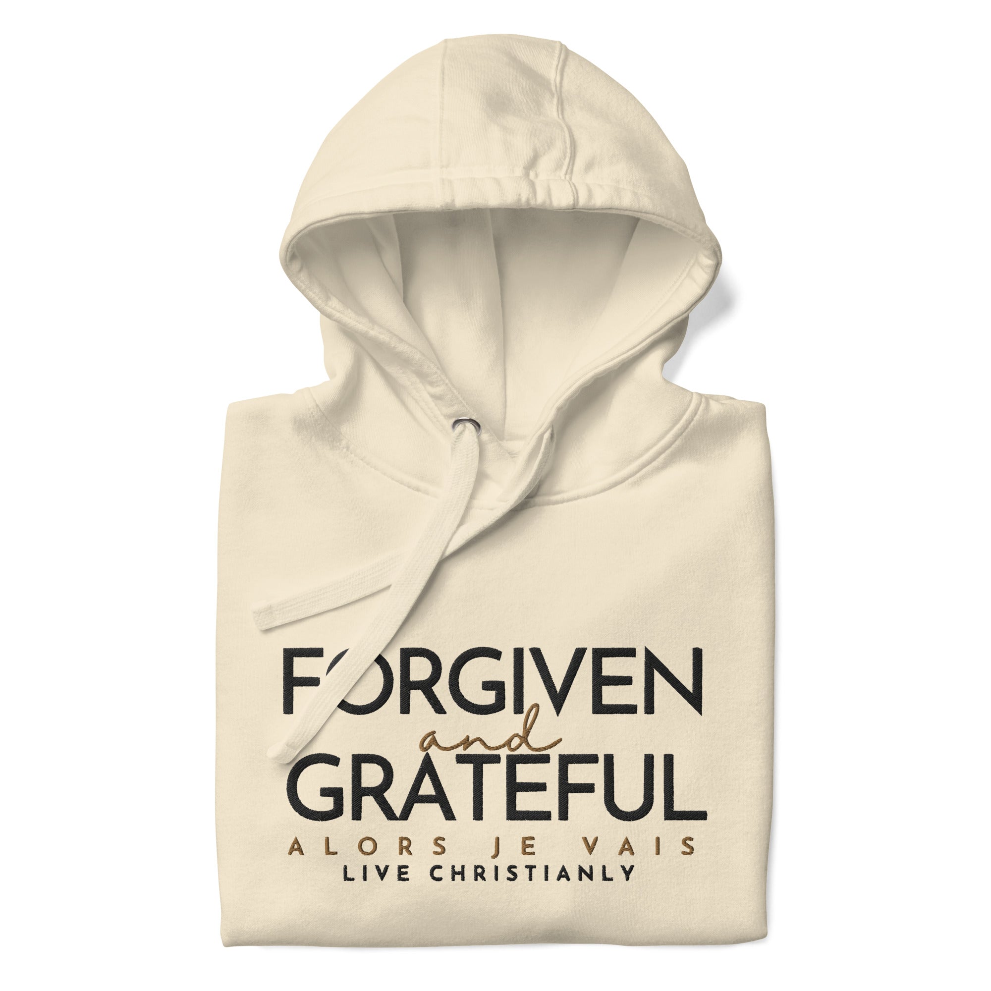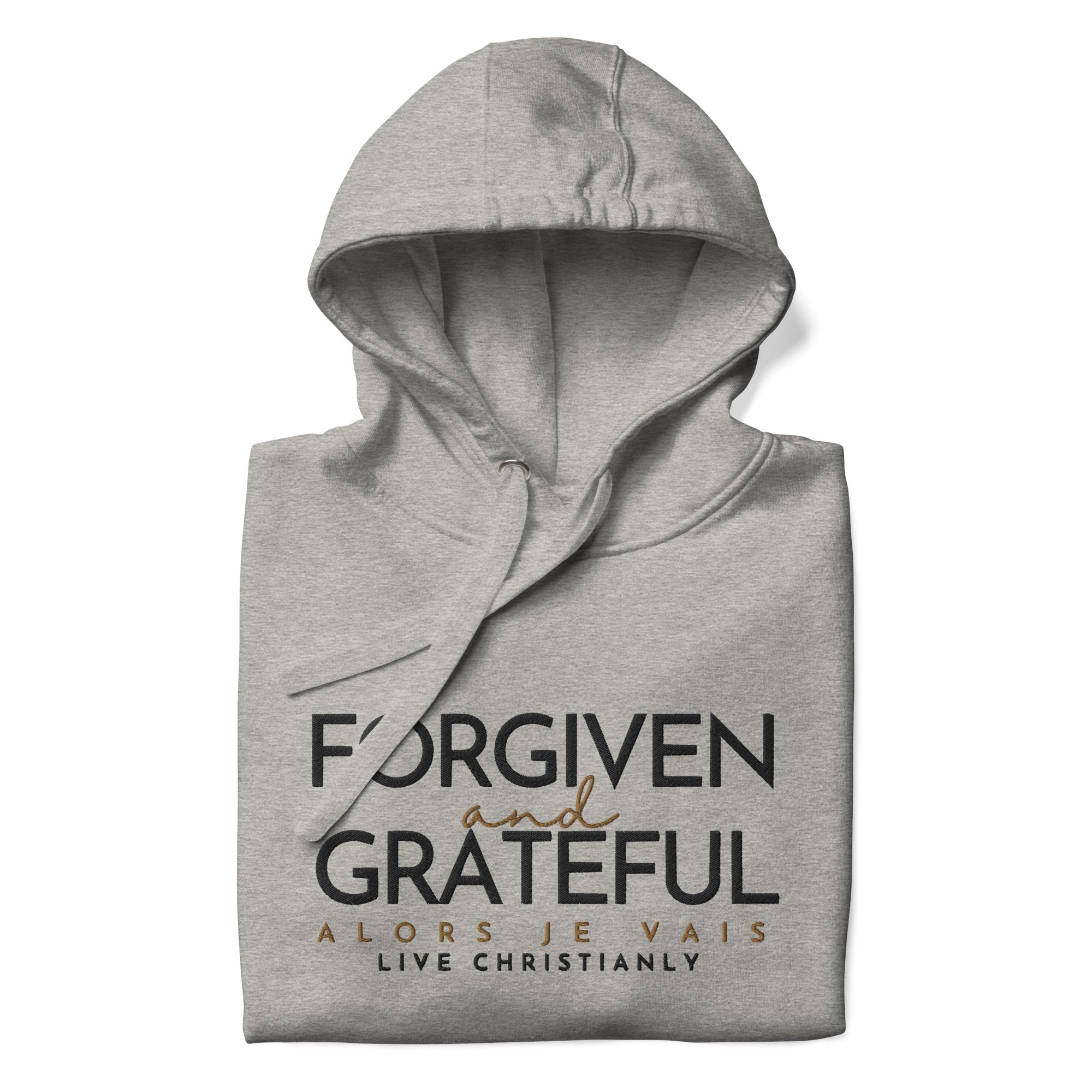 This ALORS JE VAIS Hoodie embodies the concepts of forgiveness and gratitude from God, through Christ. You'll feel the warmth and comfort of this exclusive premium product, making it the perfect addition to any stylish wardrobe.