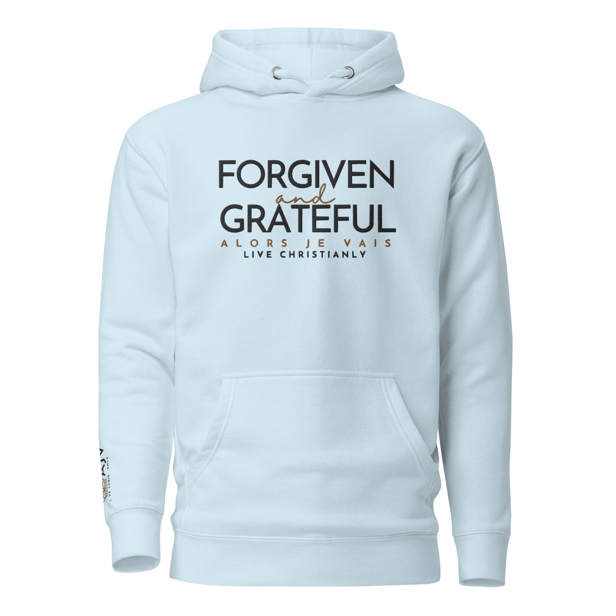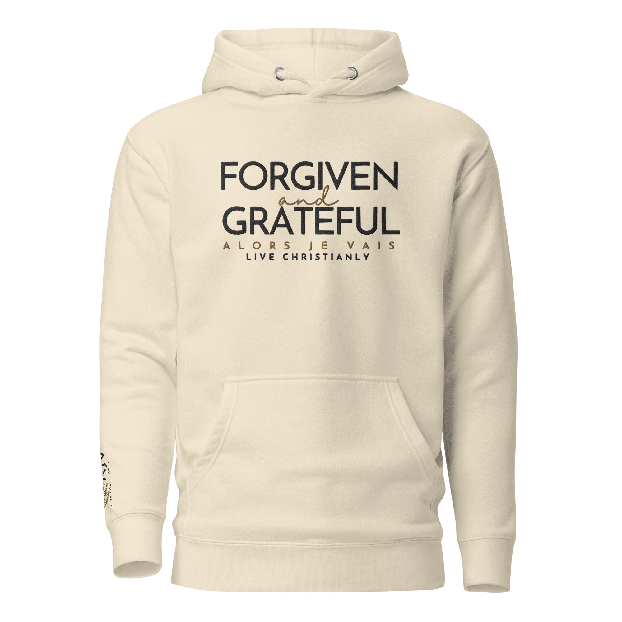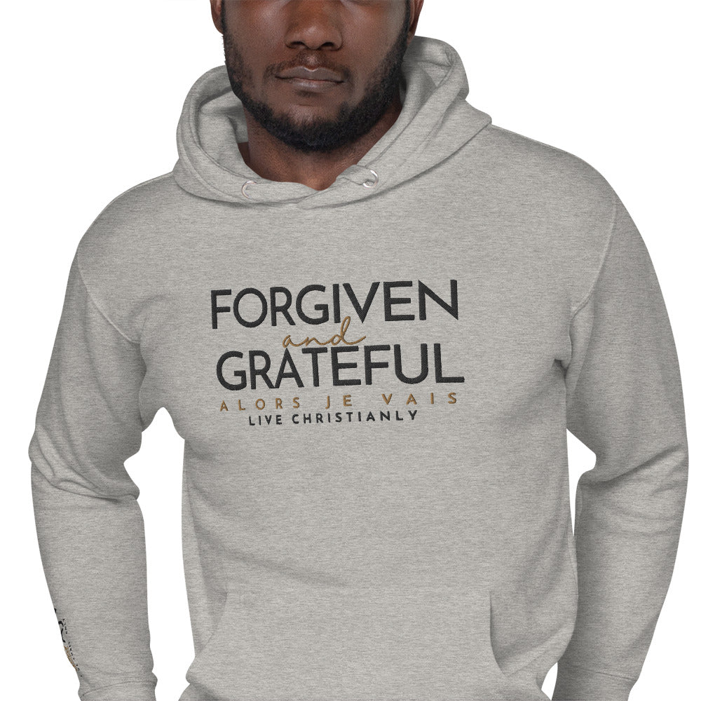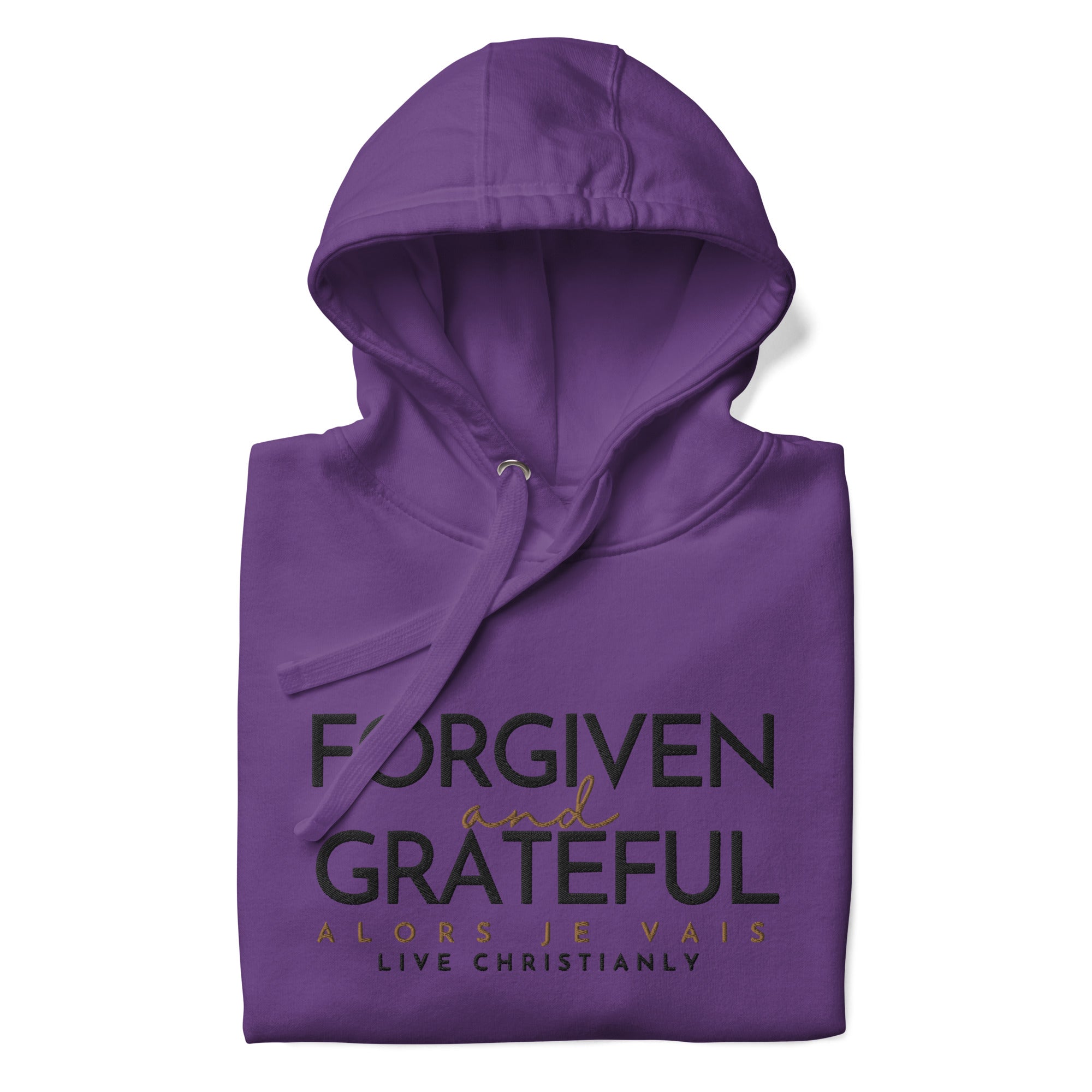 This ALORS JE VAIS Hoodie embodies the concepts of forgiveness and gratitude from God, through Christ. You'll feel the warmth and comfort of this exclusive premium product, making it the perfect addition to any stylish wardrobe.