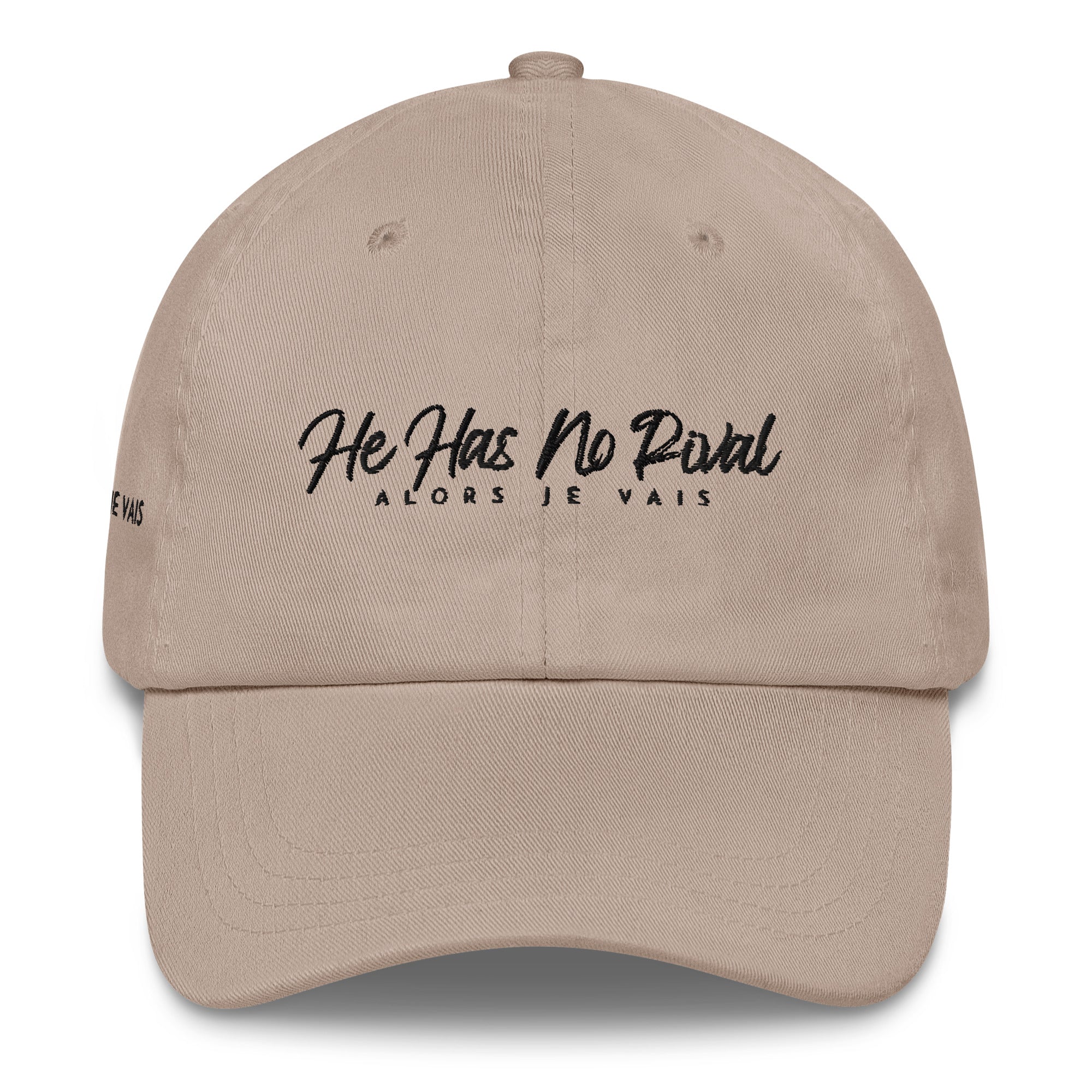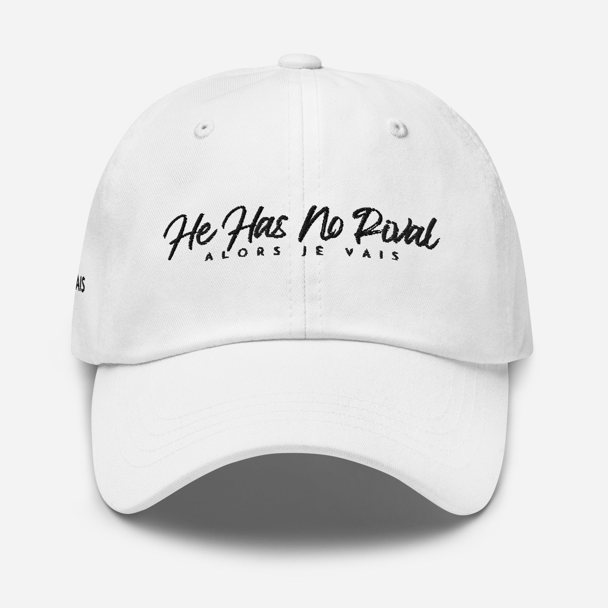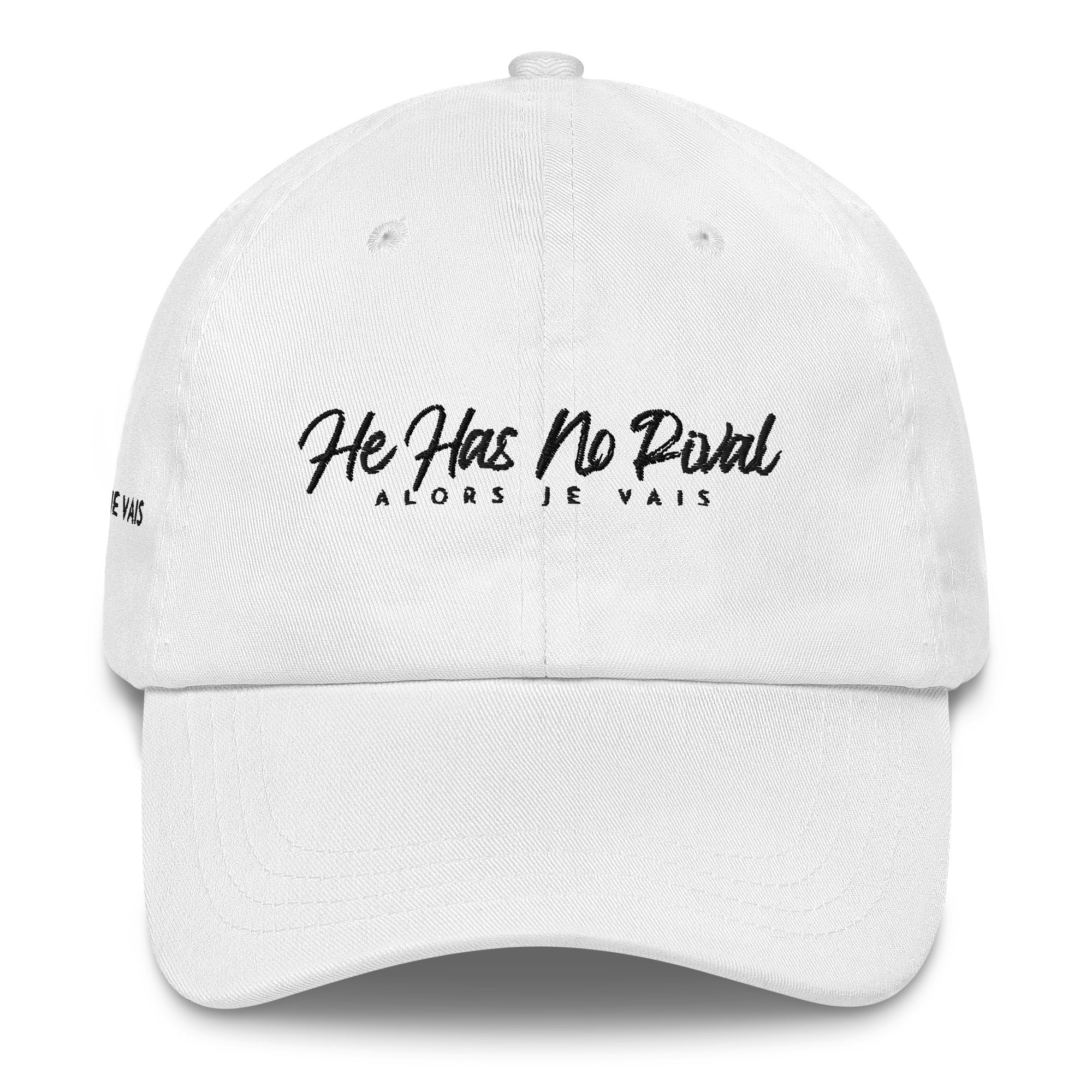 ALORS JE VAIS’ HE HAS NO RIVAL-Unleash your inner confidence with this premium HE has NO rival Dad hat. Its striking design and high-quality craftsmanship make it a statement piece fit for the most discerning fashion connoisseurs. Don't compromise on style, elevate your wardrobe with this exclusive hat.