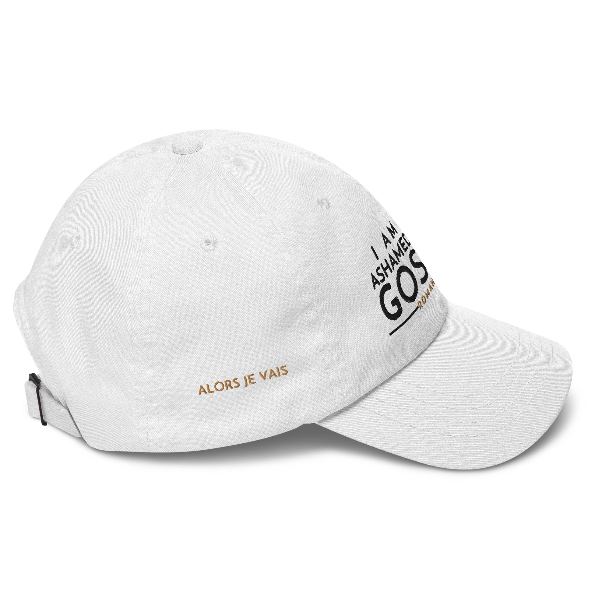 Proudly display your faith with our elegant and exclusive I AM NOT ASHAMED DAD HAT (W). Embrace the timeless message of The Gospel while exuding sophistication and style. Made with premium materials and designed with taste in mind, this hat is the perfect addition to any fashion-forward wardrobe. Share your beliefs in a subtle yet powerful way with this must-have accessory.