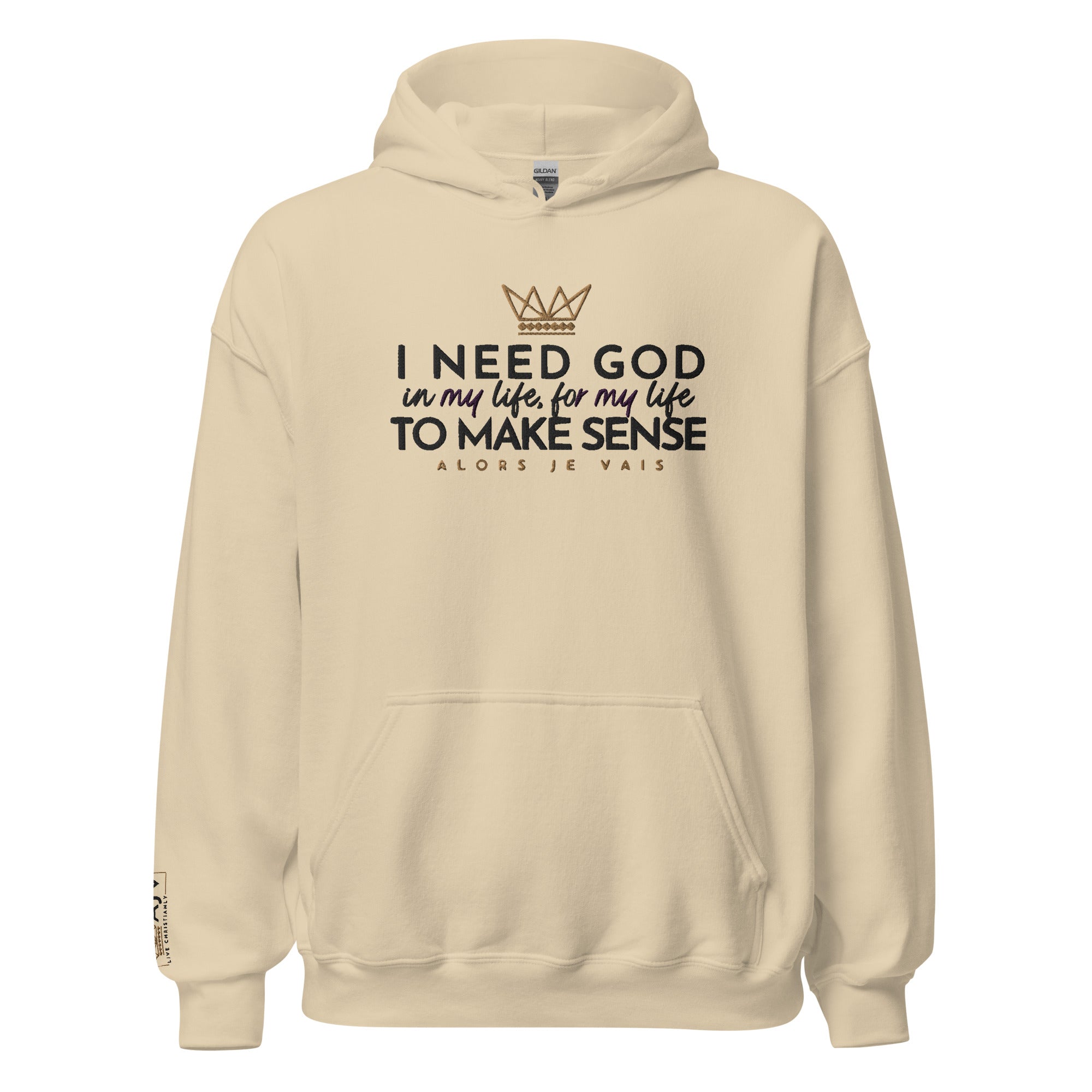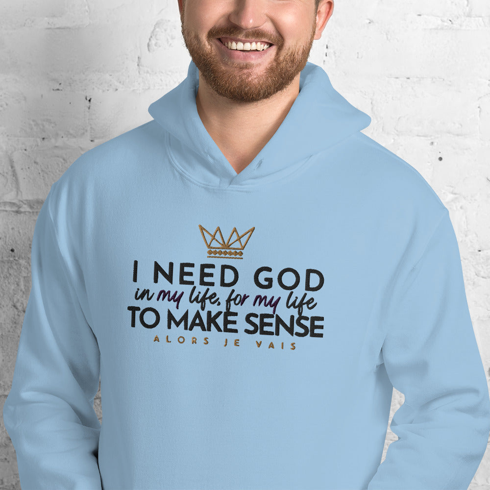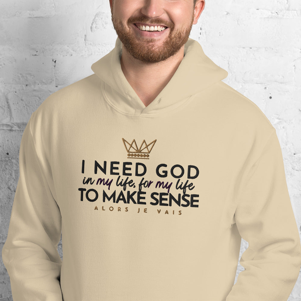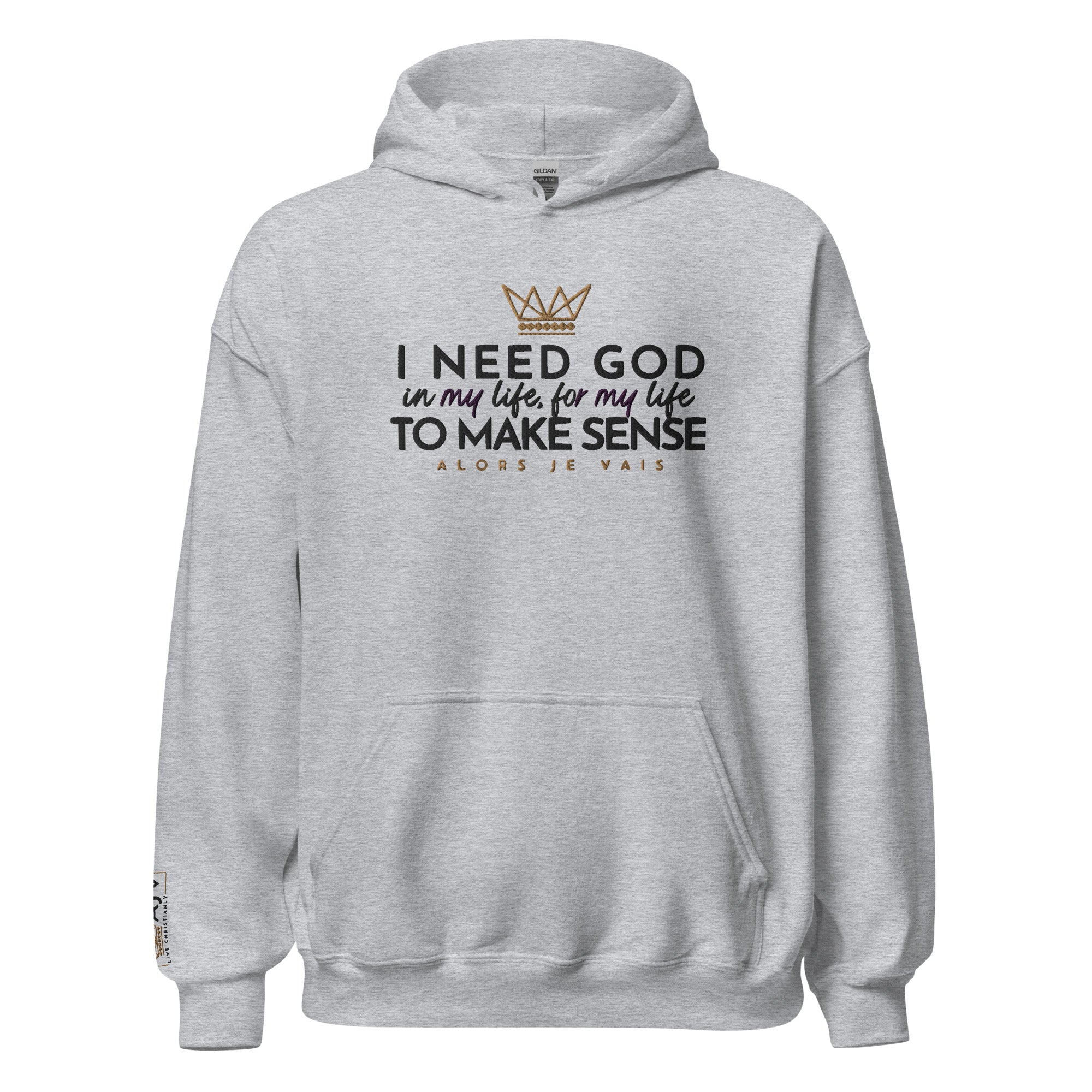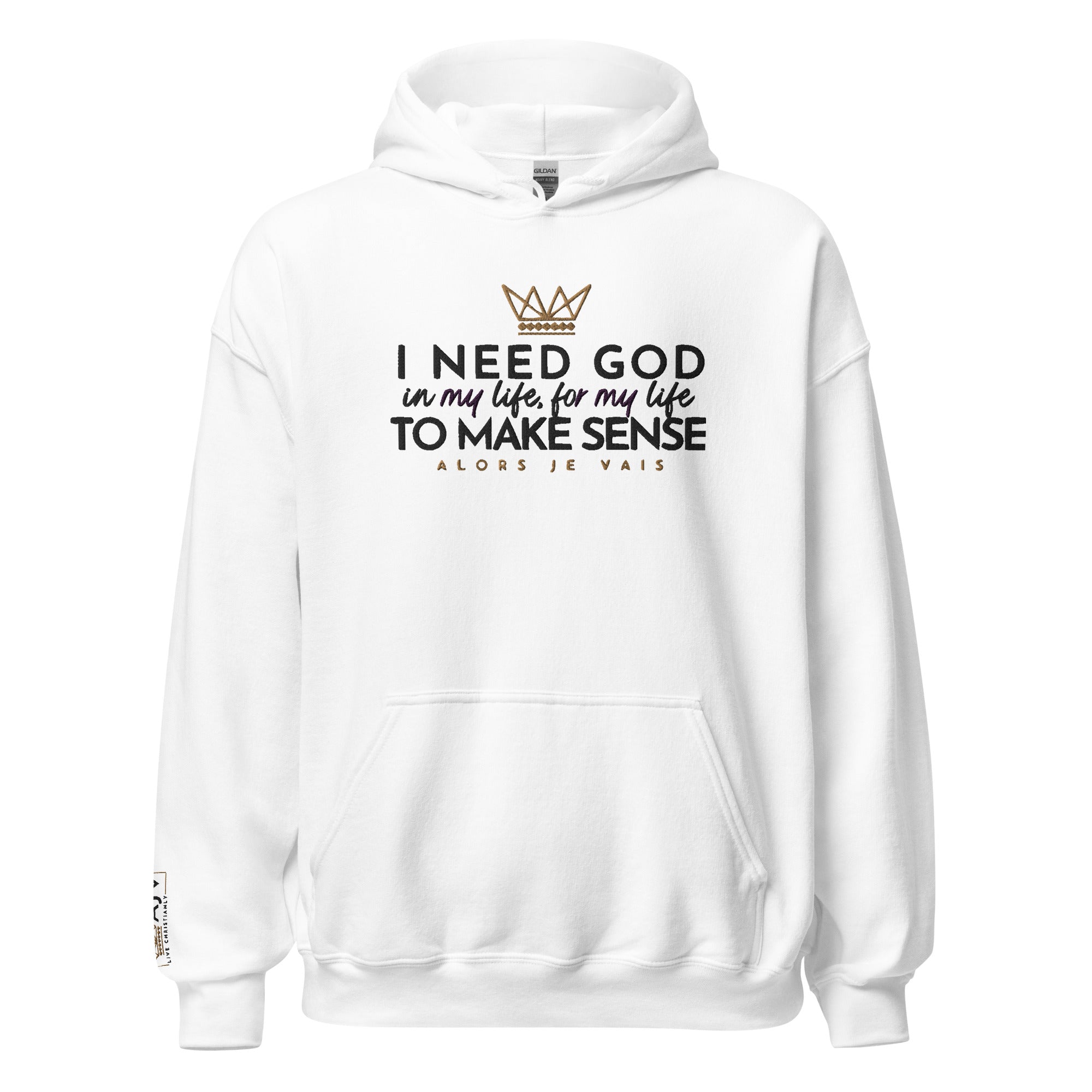 Dress to impress and keep your faith close to your chest and walk in style, with our I NEED GOD Hoodie. Our premium fabric and timeless design is sure to elevate your wardrobe while reminding you of your devotion to the King of kings while announcing it proudly to the world. Experience the ultimate comfort and style with our exclusive hoodie. Perfect for any setting, you'll feel like a Christian at work dress to express and impress being in this premium piece.