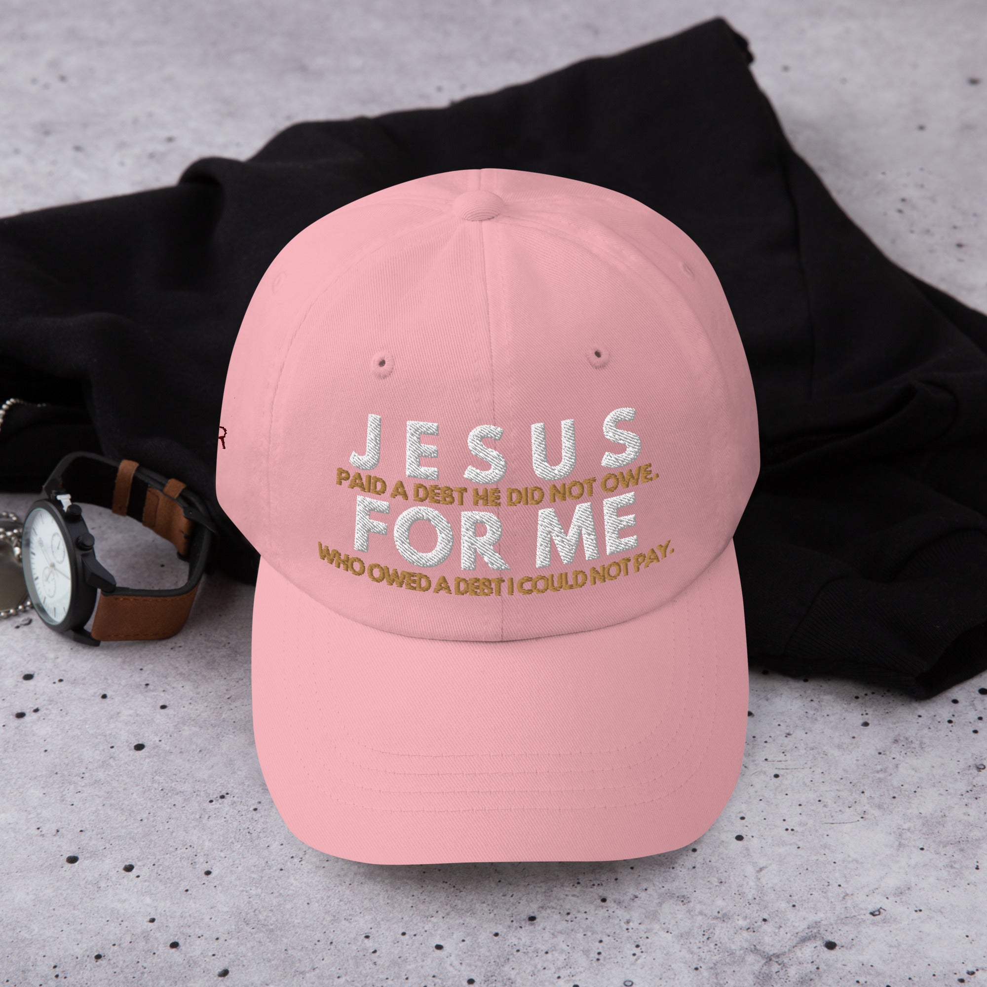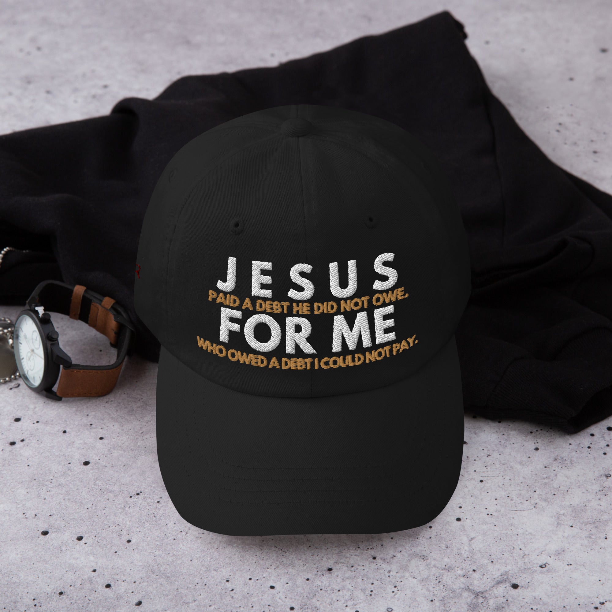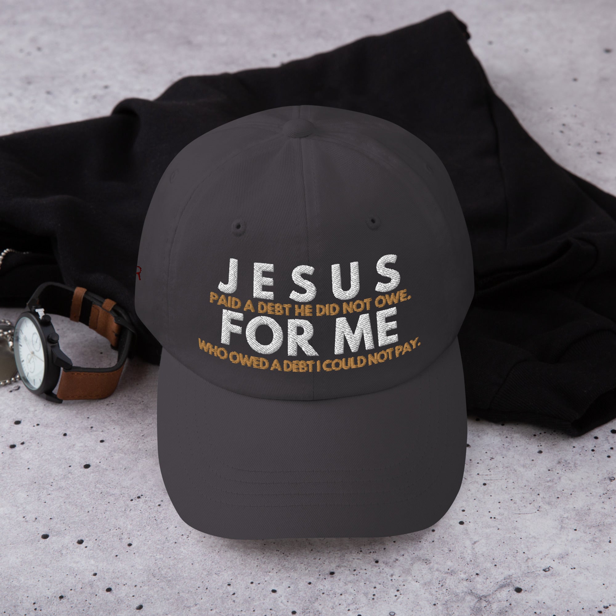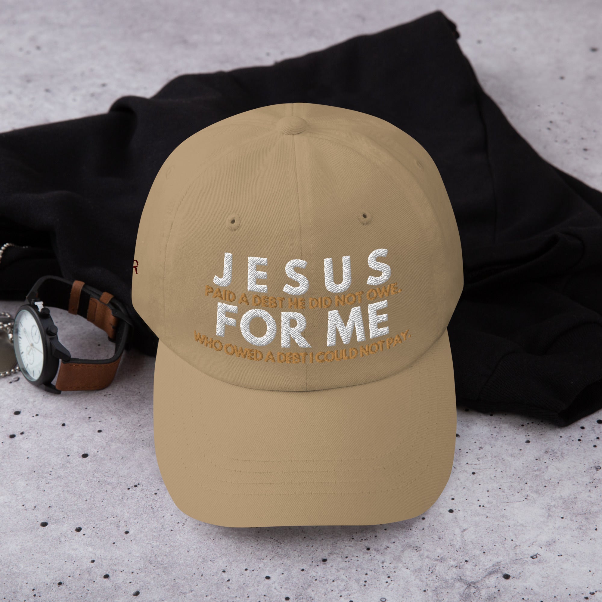 Proudly display your faith with our elegant and exclusive JESUS FOR ME - DAD HAT. Embrace the timeless message of The Gospel while exuding sophistication and style. Made with premium materials and designed with taste in mind, this hat is the perfect addition to any fashion-forward wardrobe. Share your beliefs in a subtle yet powerful way with this must-have accessory.