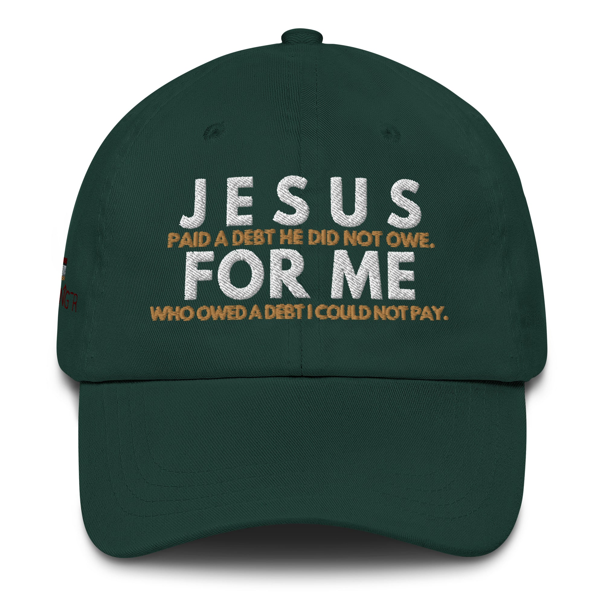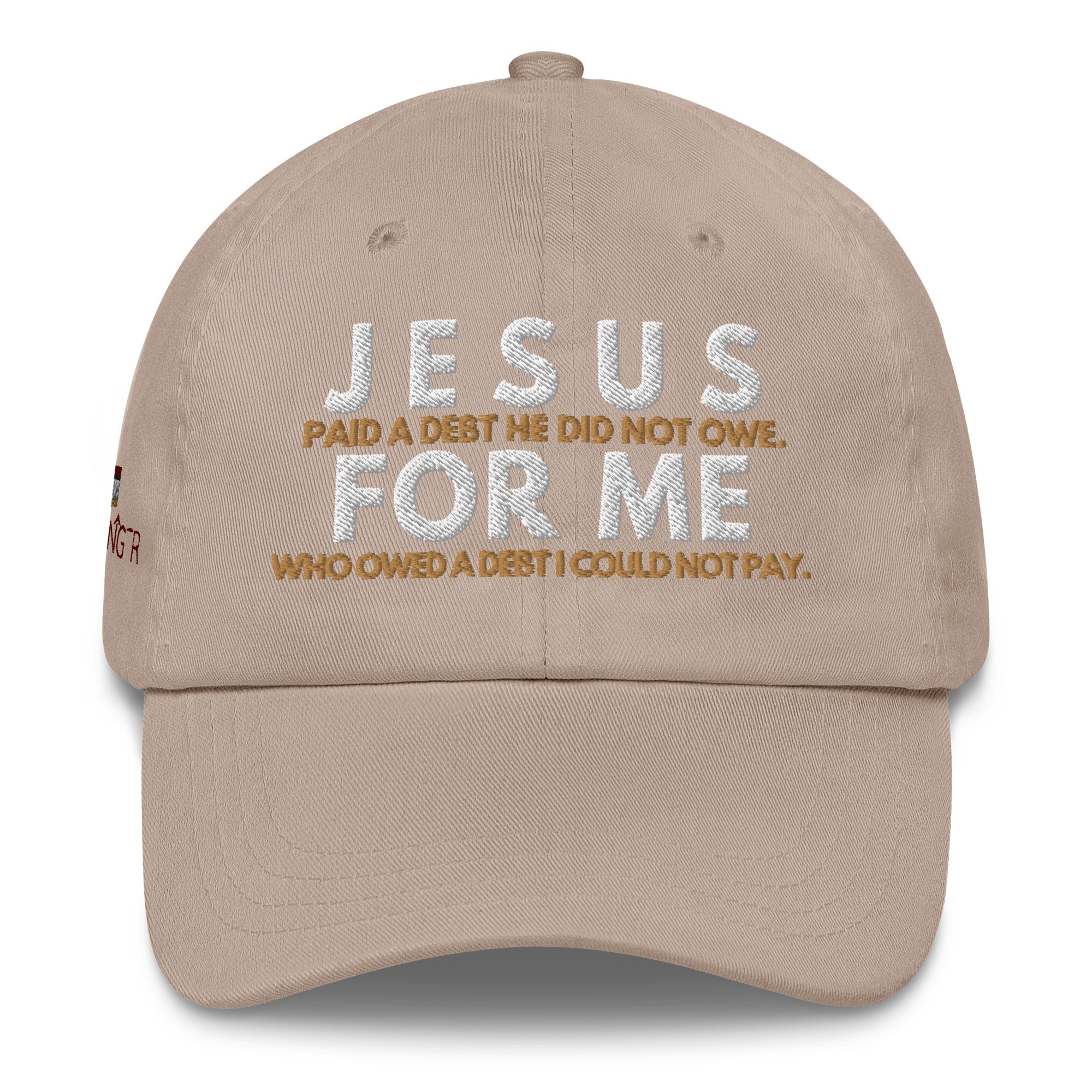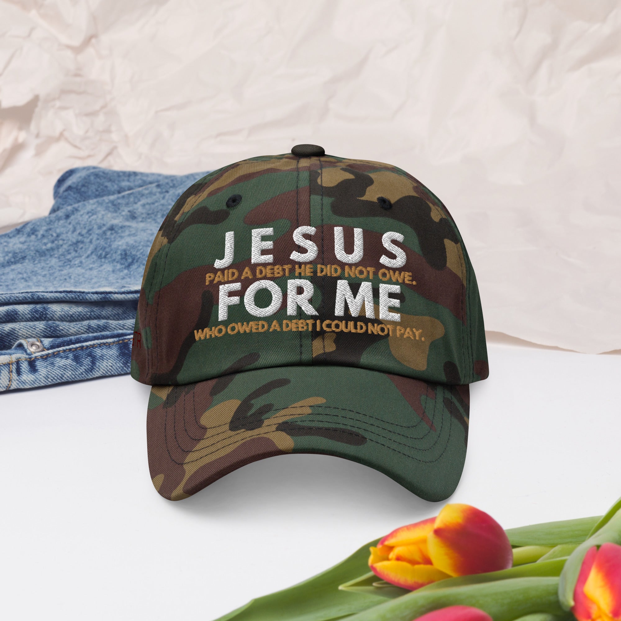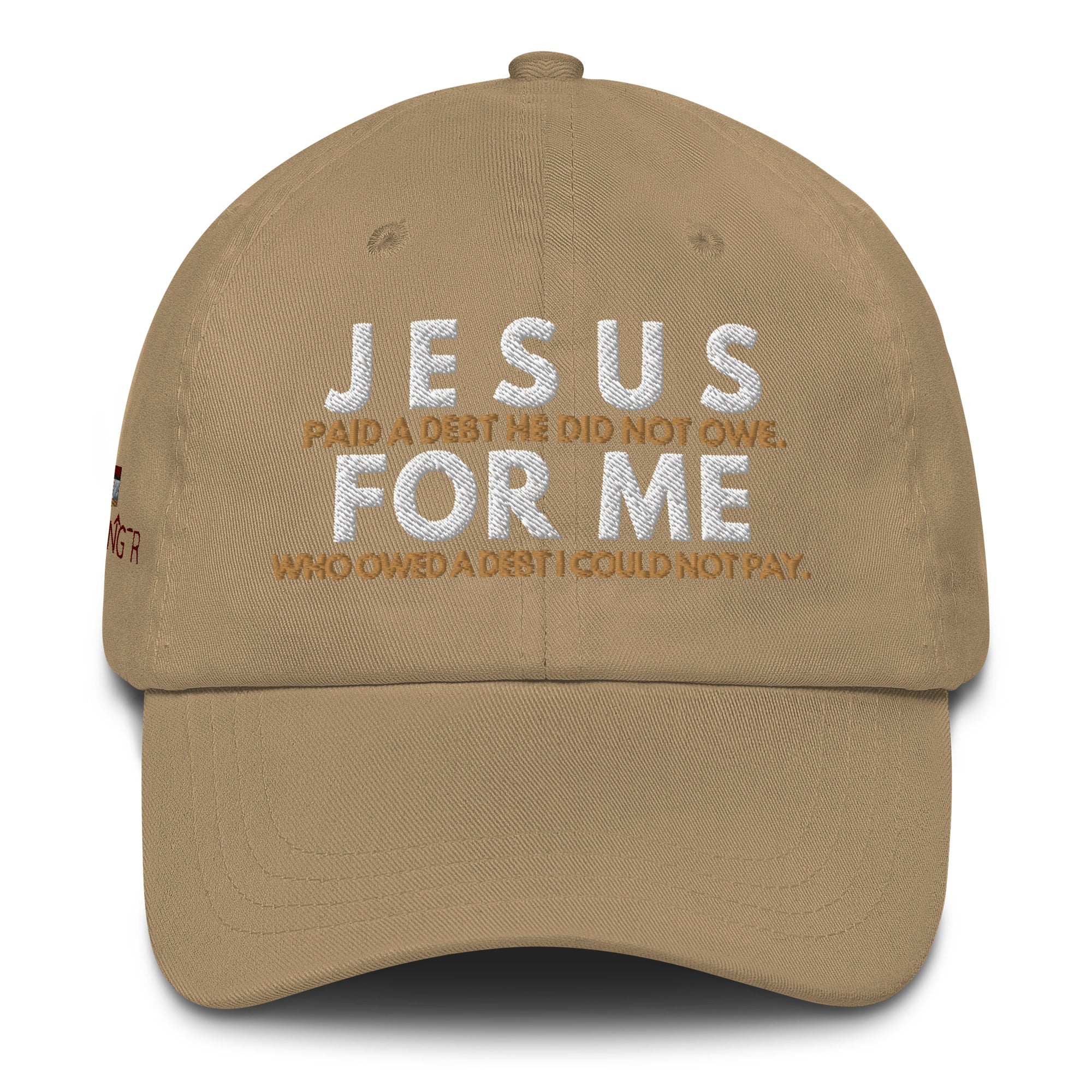 Proudly display your faith with our elegant and exclusive JESUS FOR ME - DAD HAT. Embrace the timeless message of The Gospel while exuding sophistication and style. Made with premium materials and designed with taste in mind, this hat is the perfect addition to any fashion-forward wardrobe. Share your beliefs in a subtle yet powerful way with this must-have accessory.