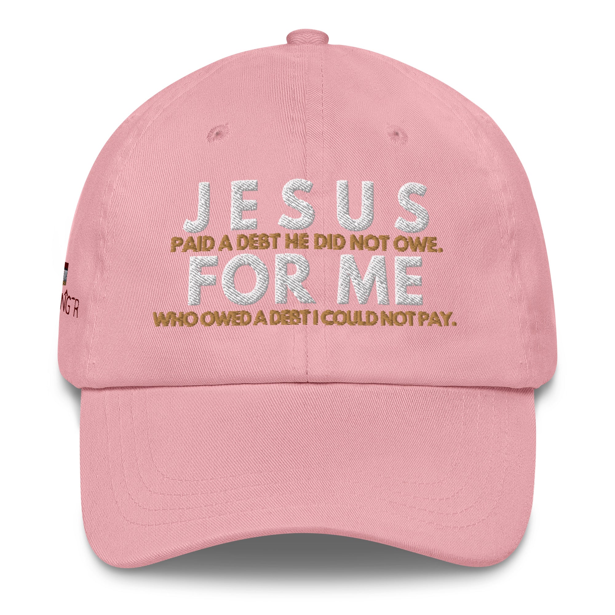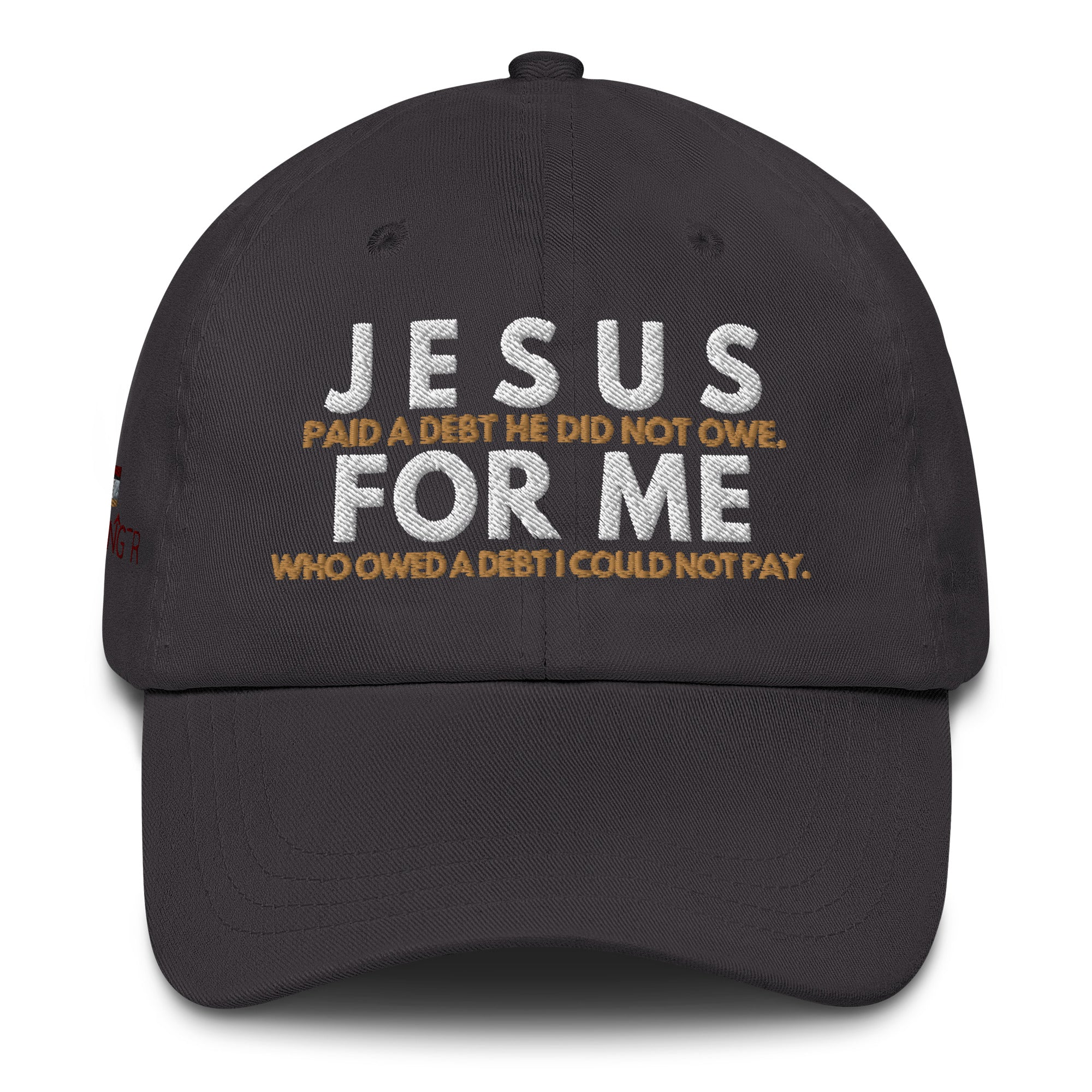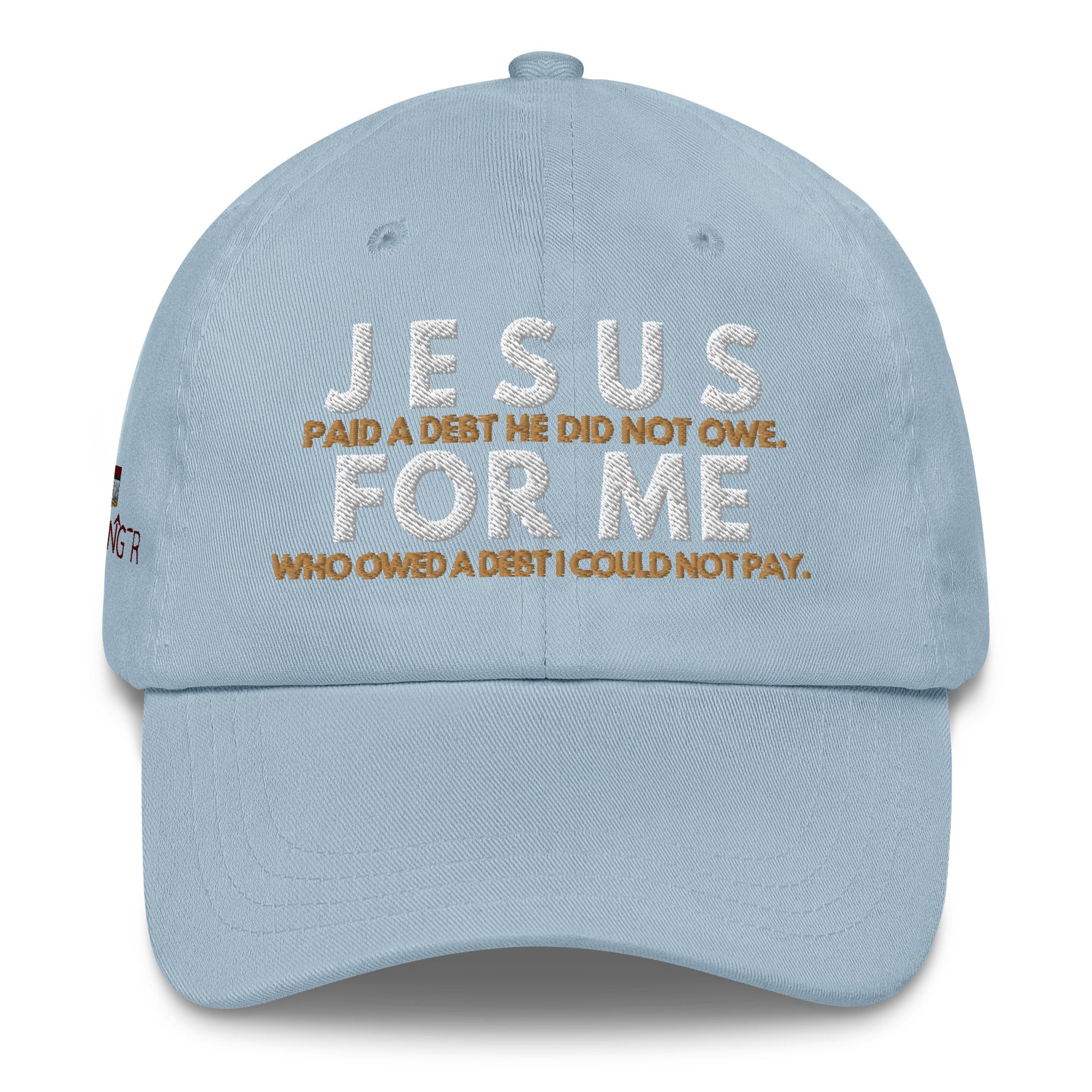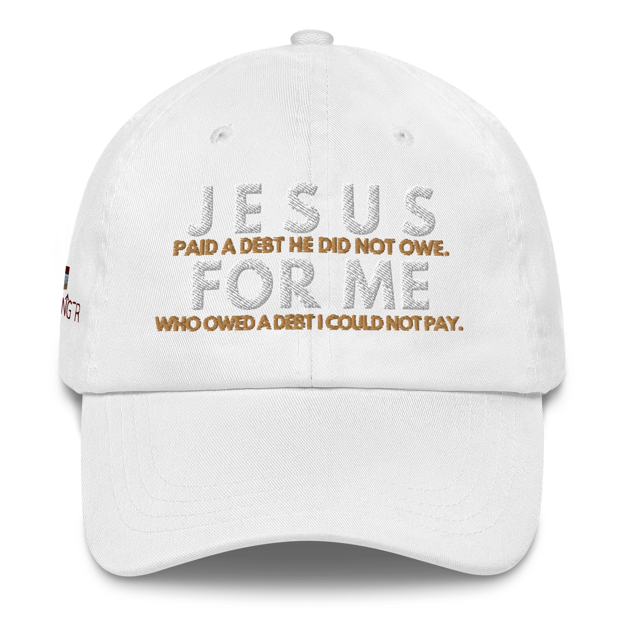 Proudly display your faith with our elegant and exclusive JESUS FOR ME - DAD HAT. Embrace the timeless message of The Gospel while exuding sophistication and style. Made with premium materials and designed with taste in mind, this hat is the perfect addition to any fashion-forward wardrobe. Share your beliefs in a subtle yet powerful way with this must-have accessory.