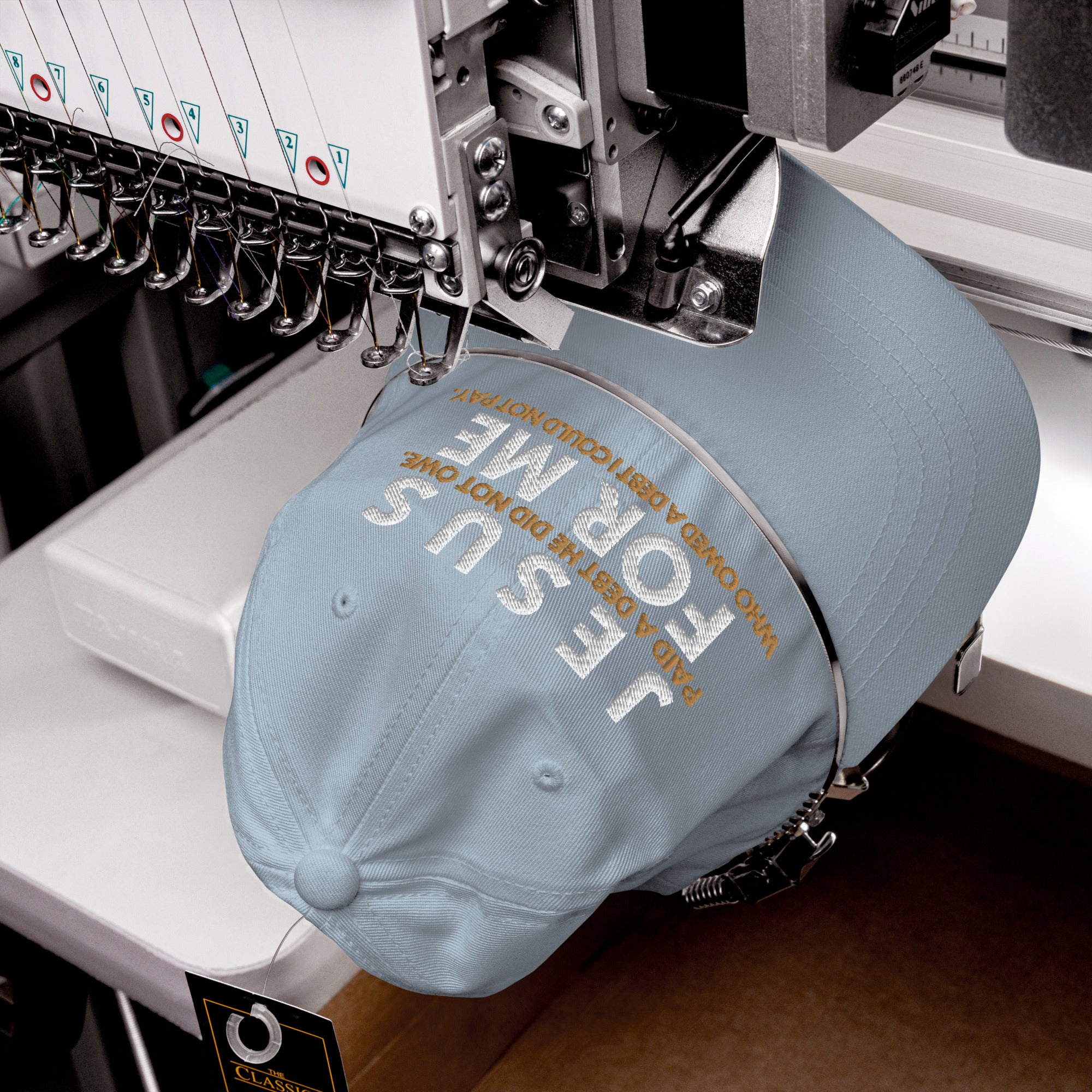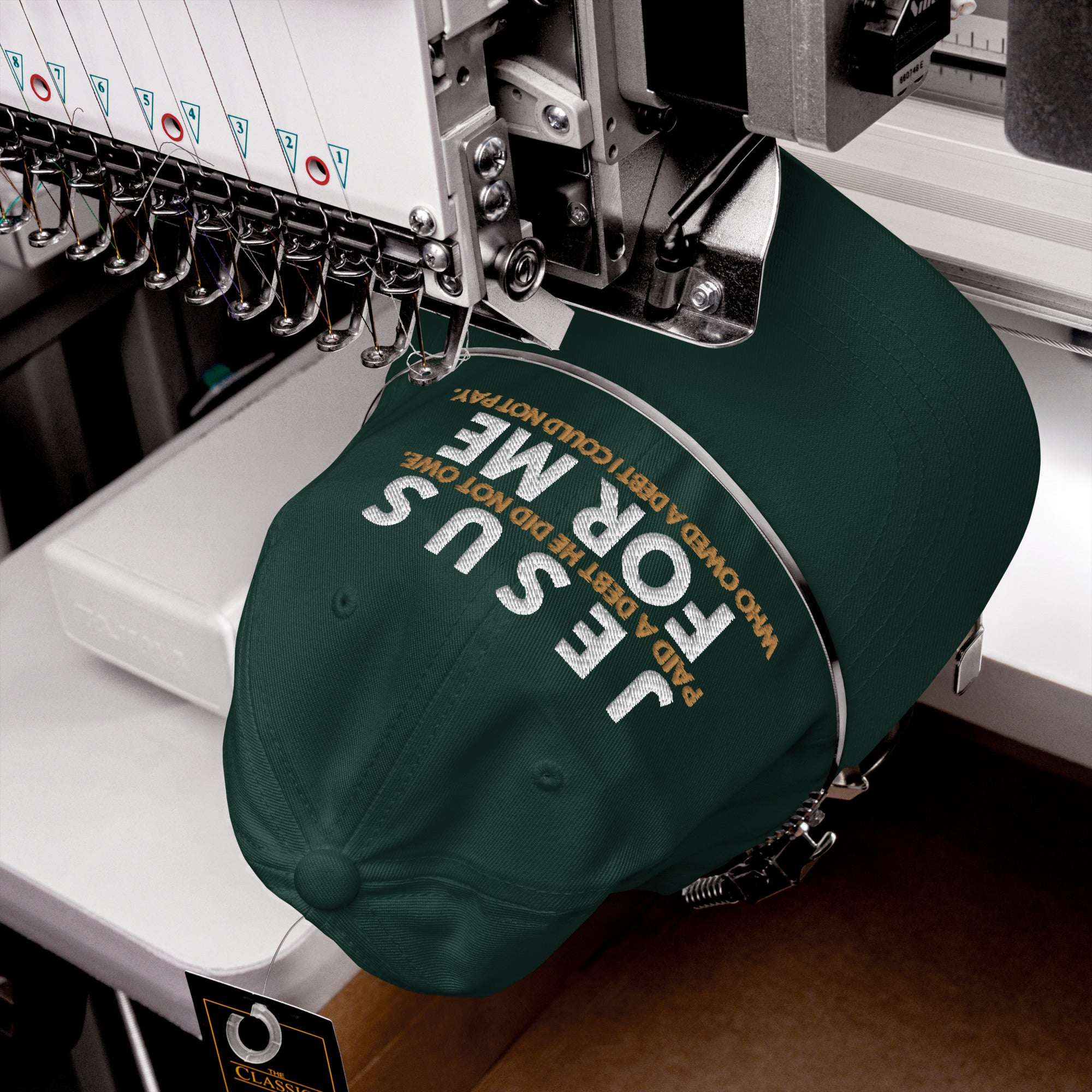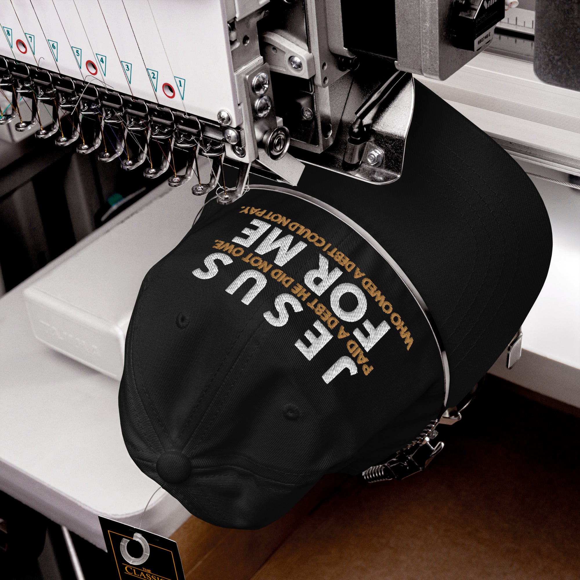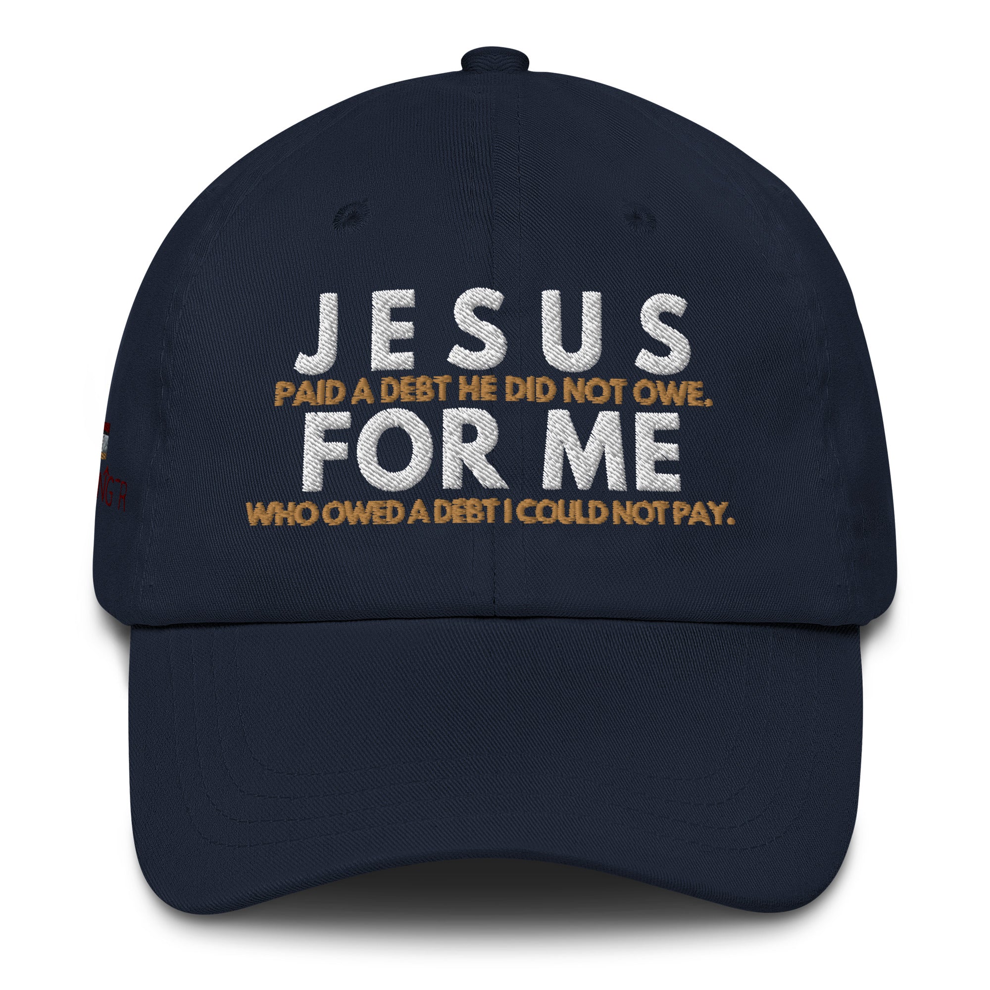 Proudly display your faith with our elegant and exclusive JESUS FOR ME - DAD HAT. Embrace the timeless message of The Gospel while exuding sophistication and style. Made with premium materials and designed with taste in mind, this hat is the perfect addition to any fashion-forward wardrobe. Share your beliefs in a subtle yet powerful way with this must-have accessory.