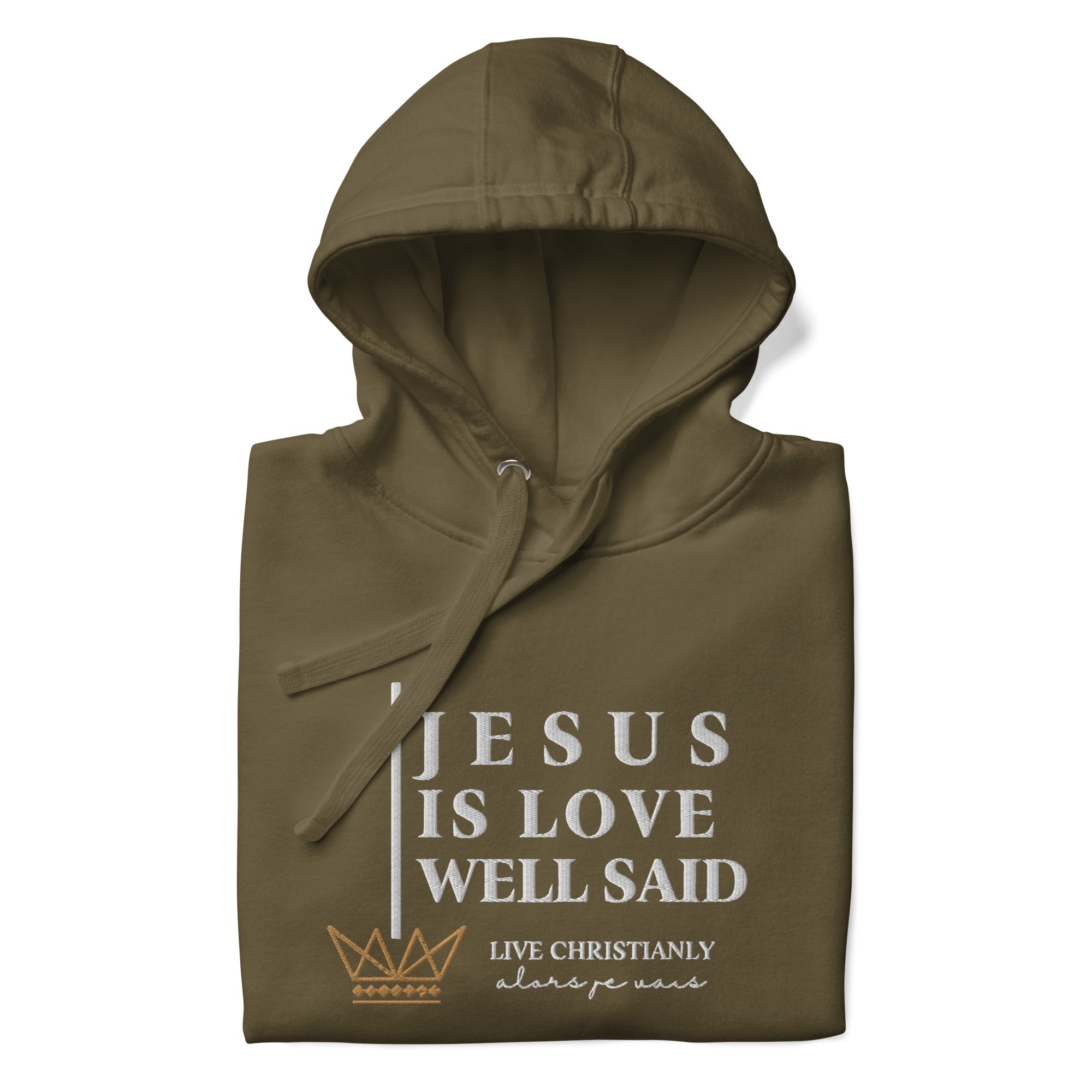 The luxurious way to show off your faith. Wrap yourself in the ultimate comfort and style with our 'JESUS IS LOVE WELL SAID Hoodie'. Perfect for any occasion, this hoodie serves as a reminder of your devotion while elevating your wardrobe. Crafted with the highest quality materials, it's a must-have for any fashion-forward believer; a product loved by those with discerning taste.in the warmth of love and tranquility that only comes from loving Jesus.