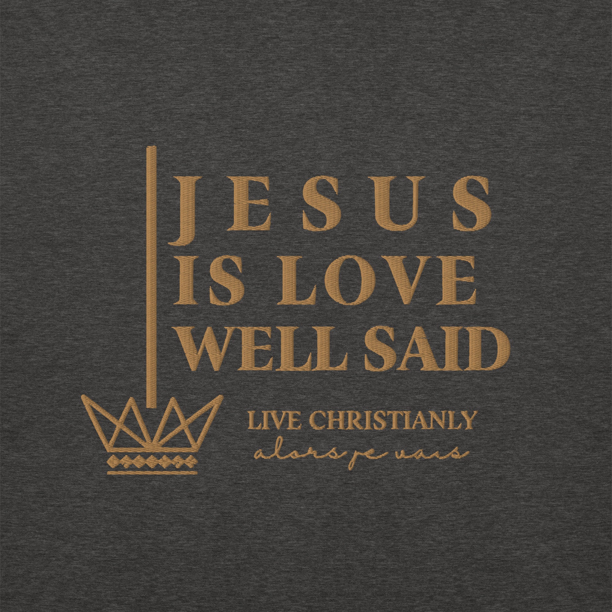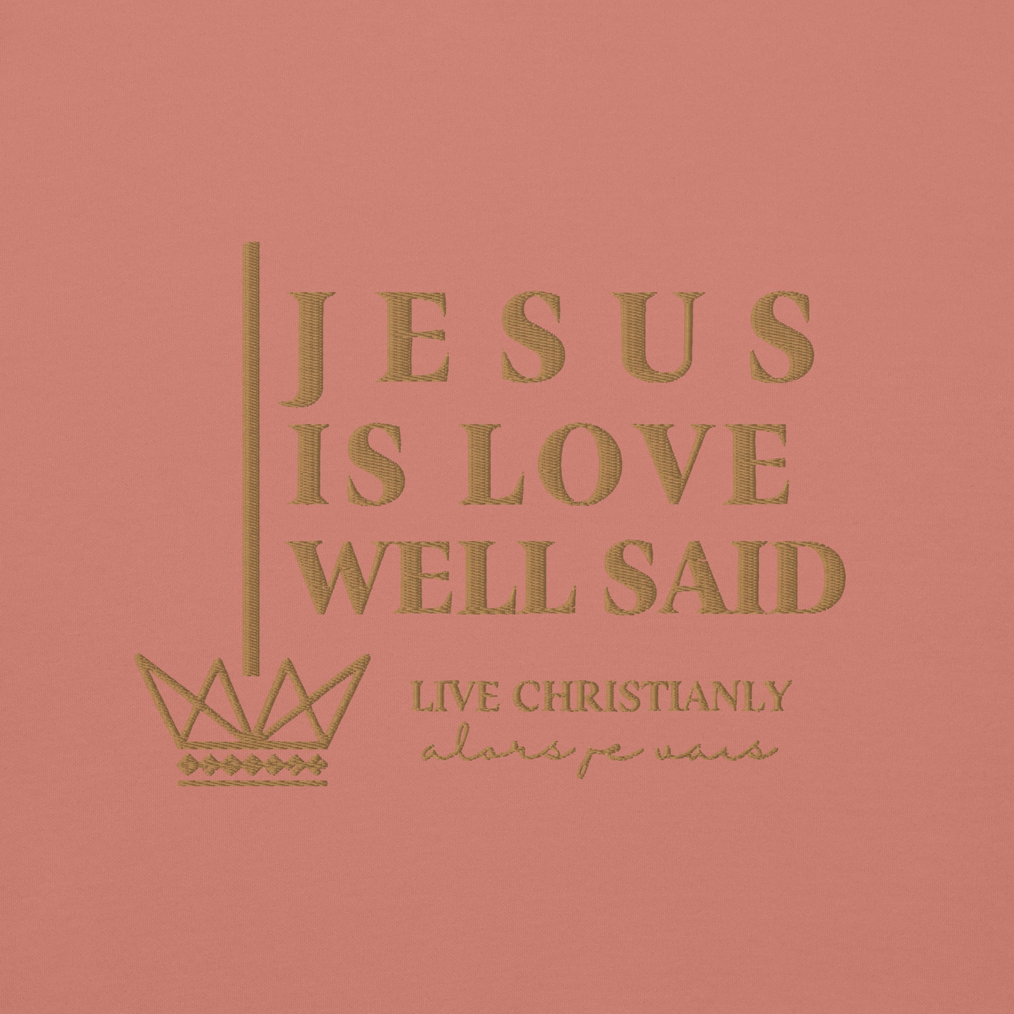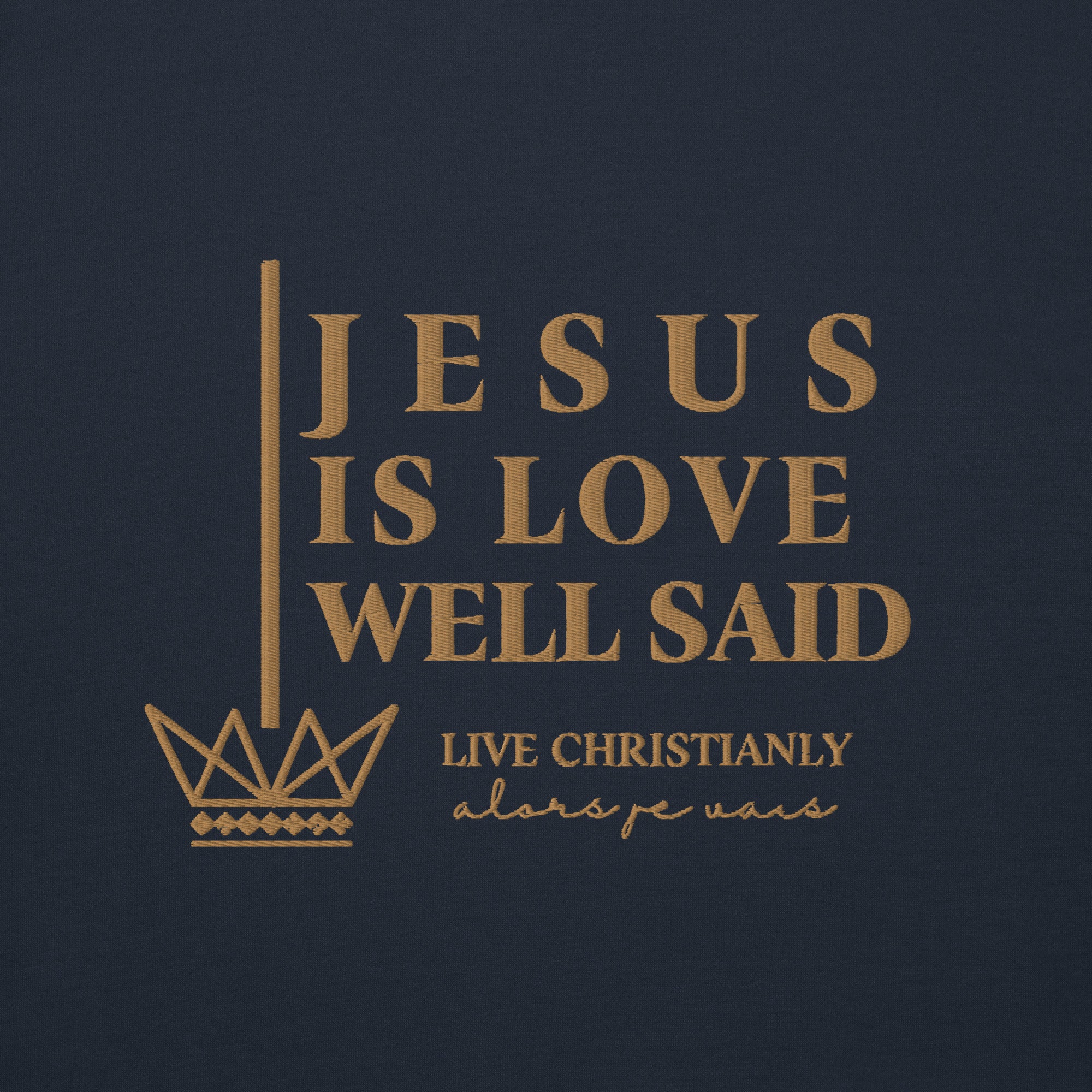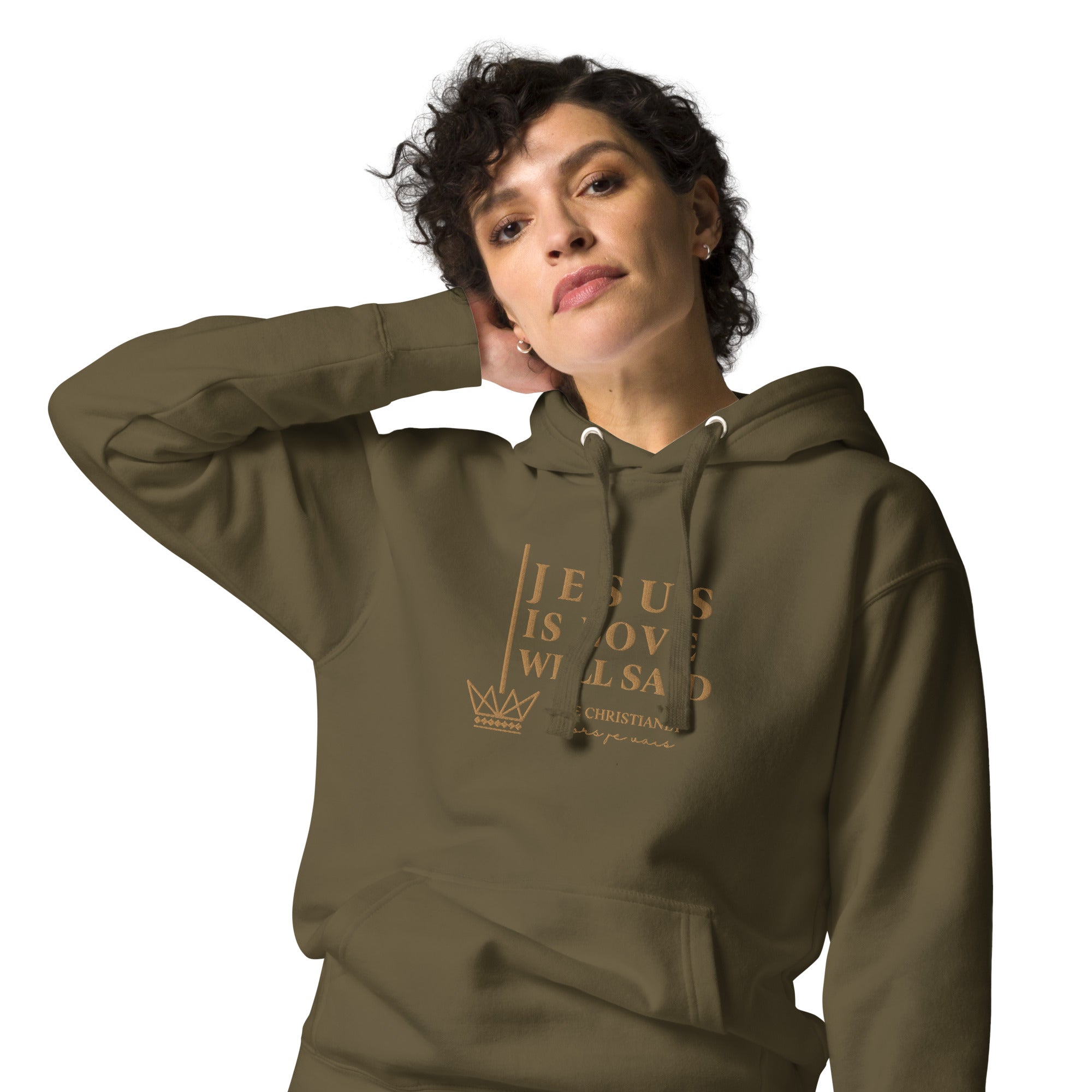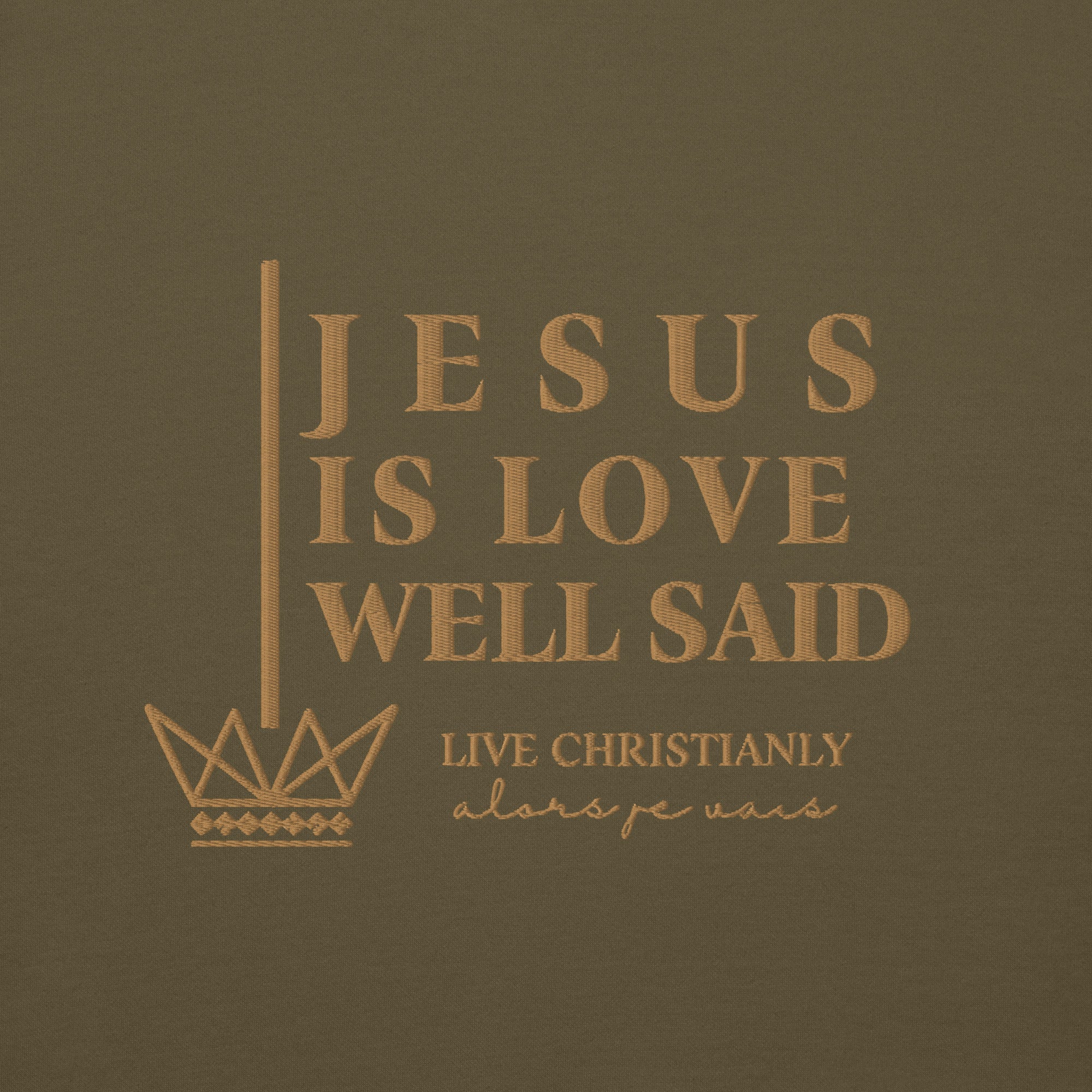 The luxurious way to show off your faith. Wrap yourself in the ultimate comfort and style with our 'JESUS IS LOVE WELL SAID Hoodie'. Perfect for any occasion, this hoodie serves as a reminder of your devotion while elevating your wardrobe. Crafted with the highest quality materials, it's a must-have for any fashion-forward believer; a product loved by those with discerning taste.in the warmth of love and tranquility that only comes from loving Jesus.
