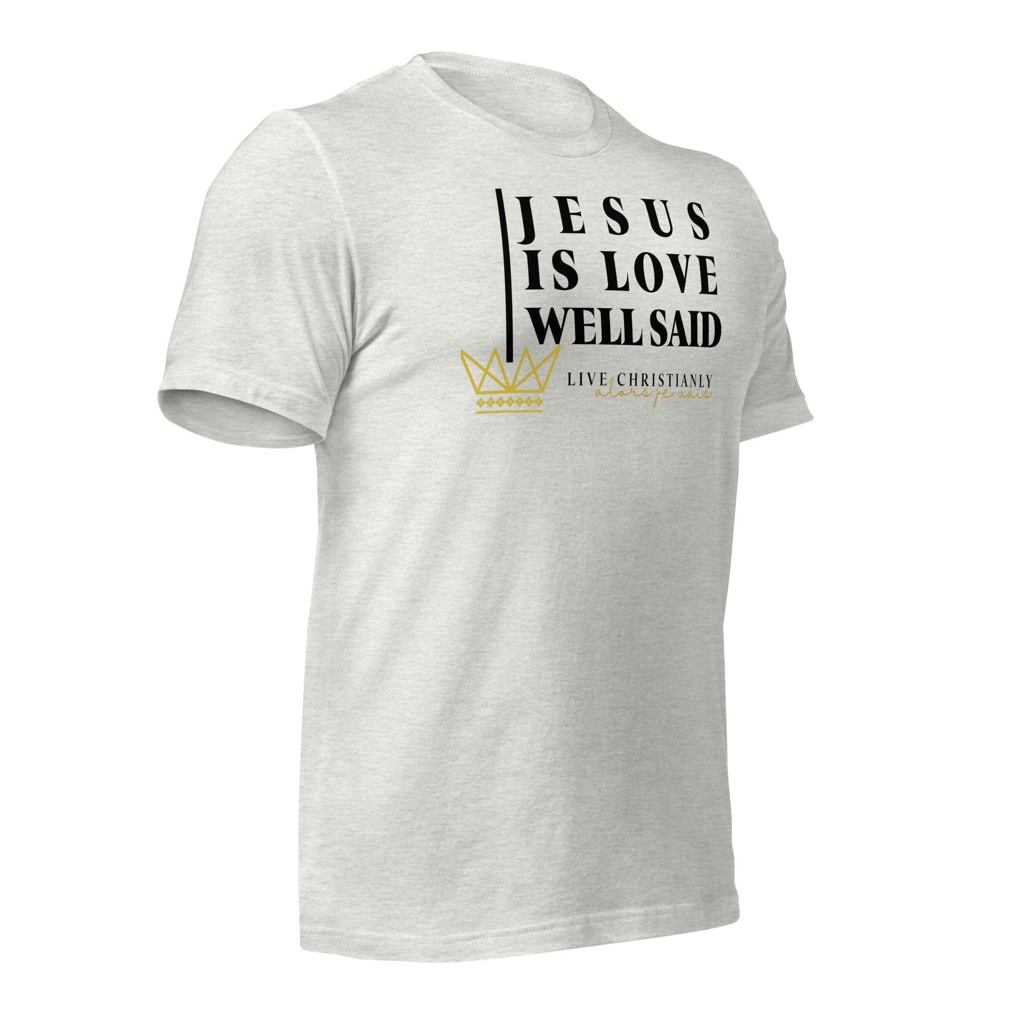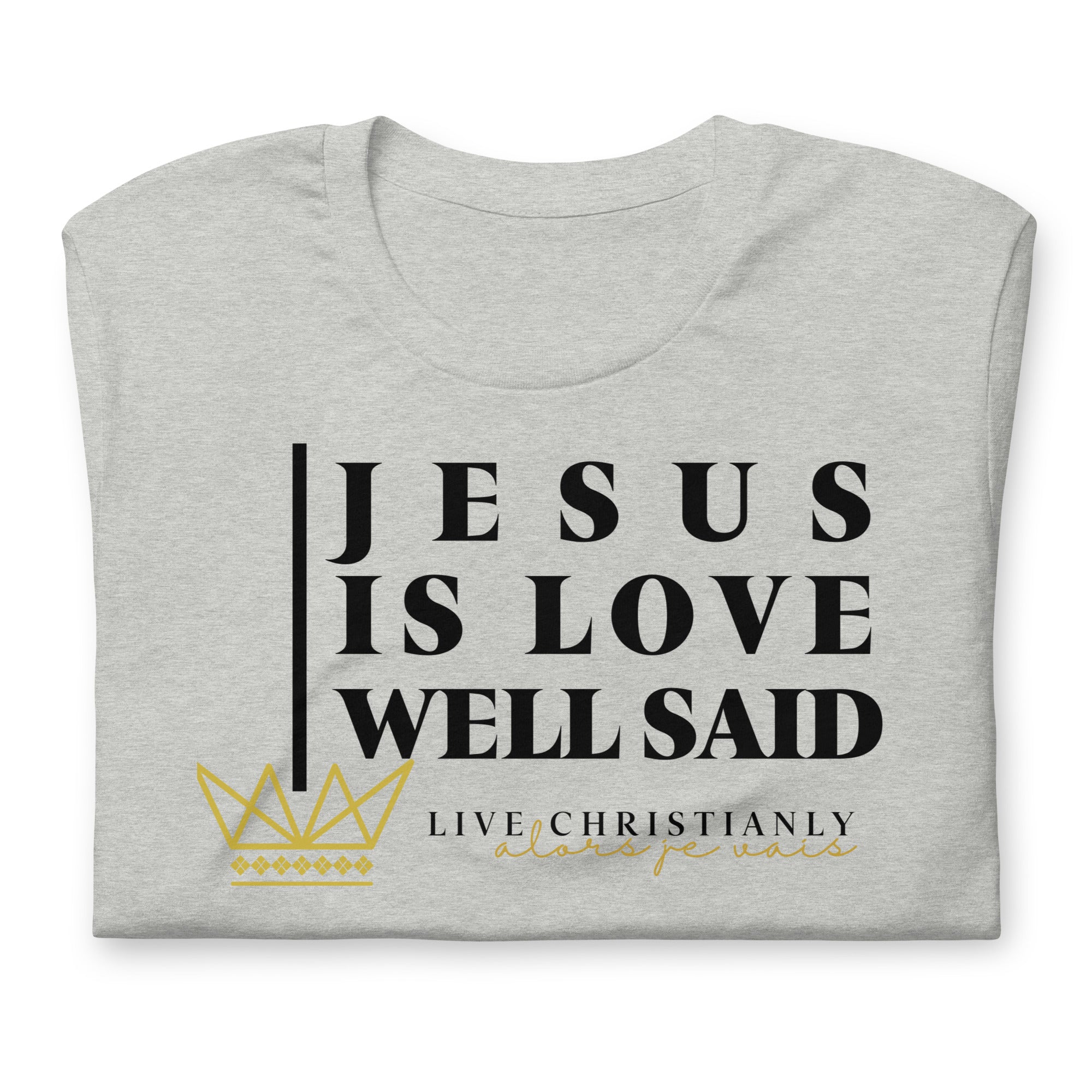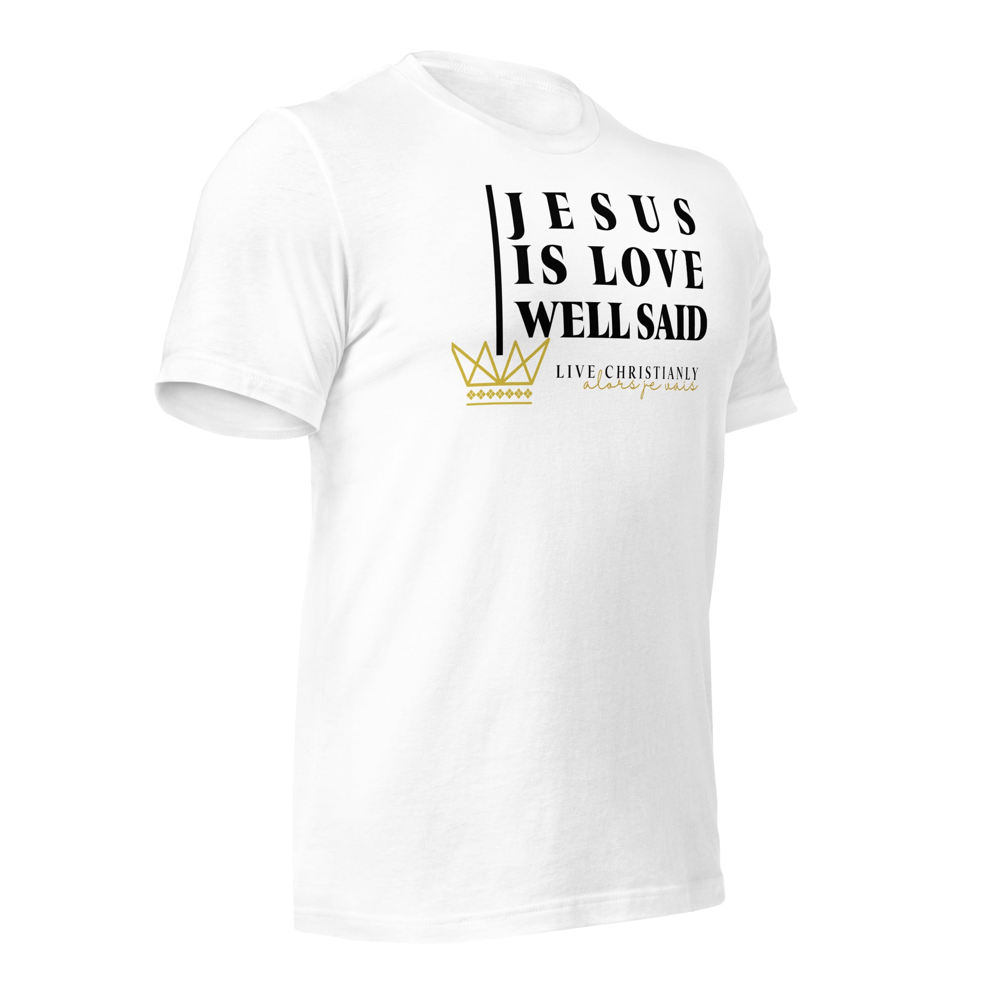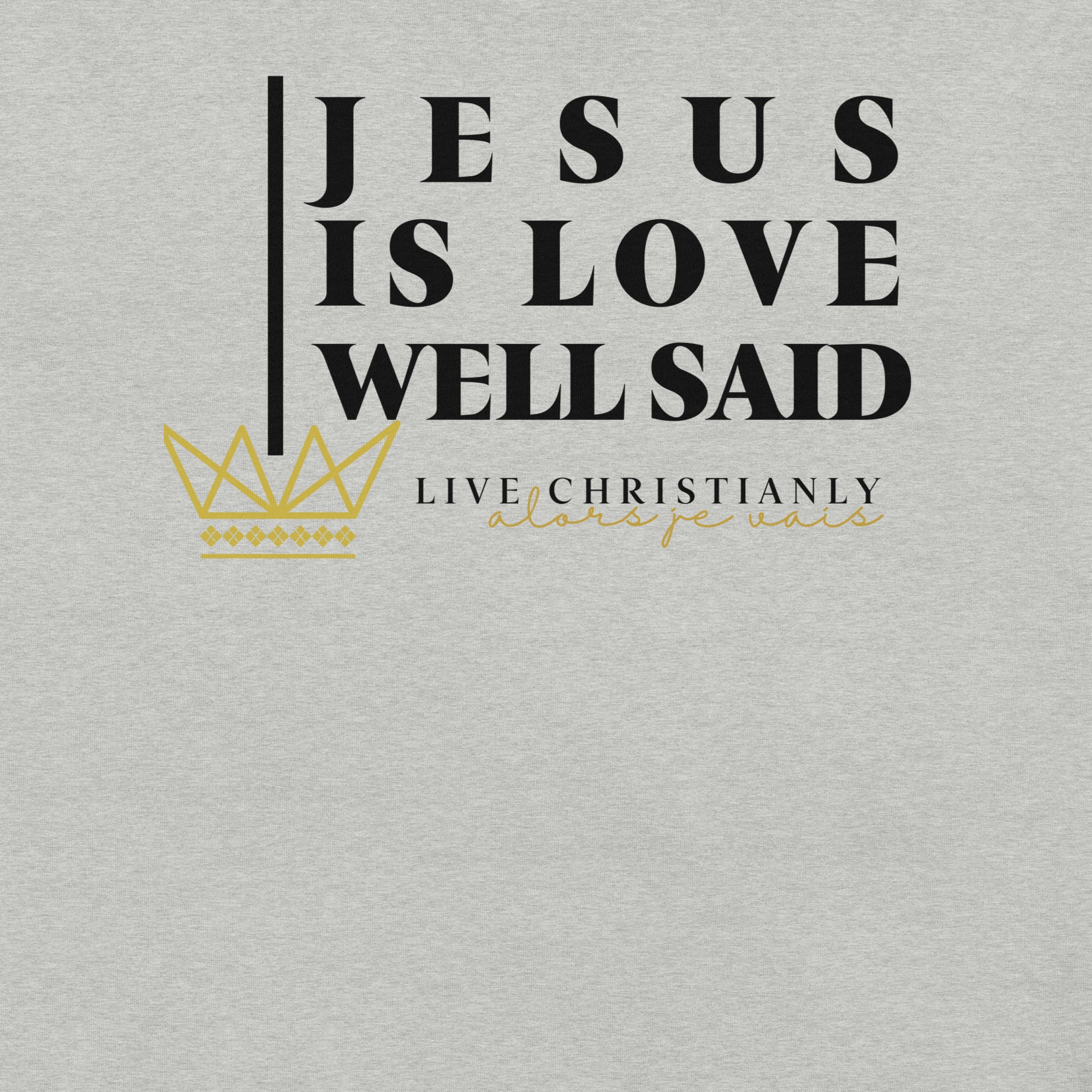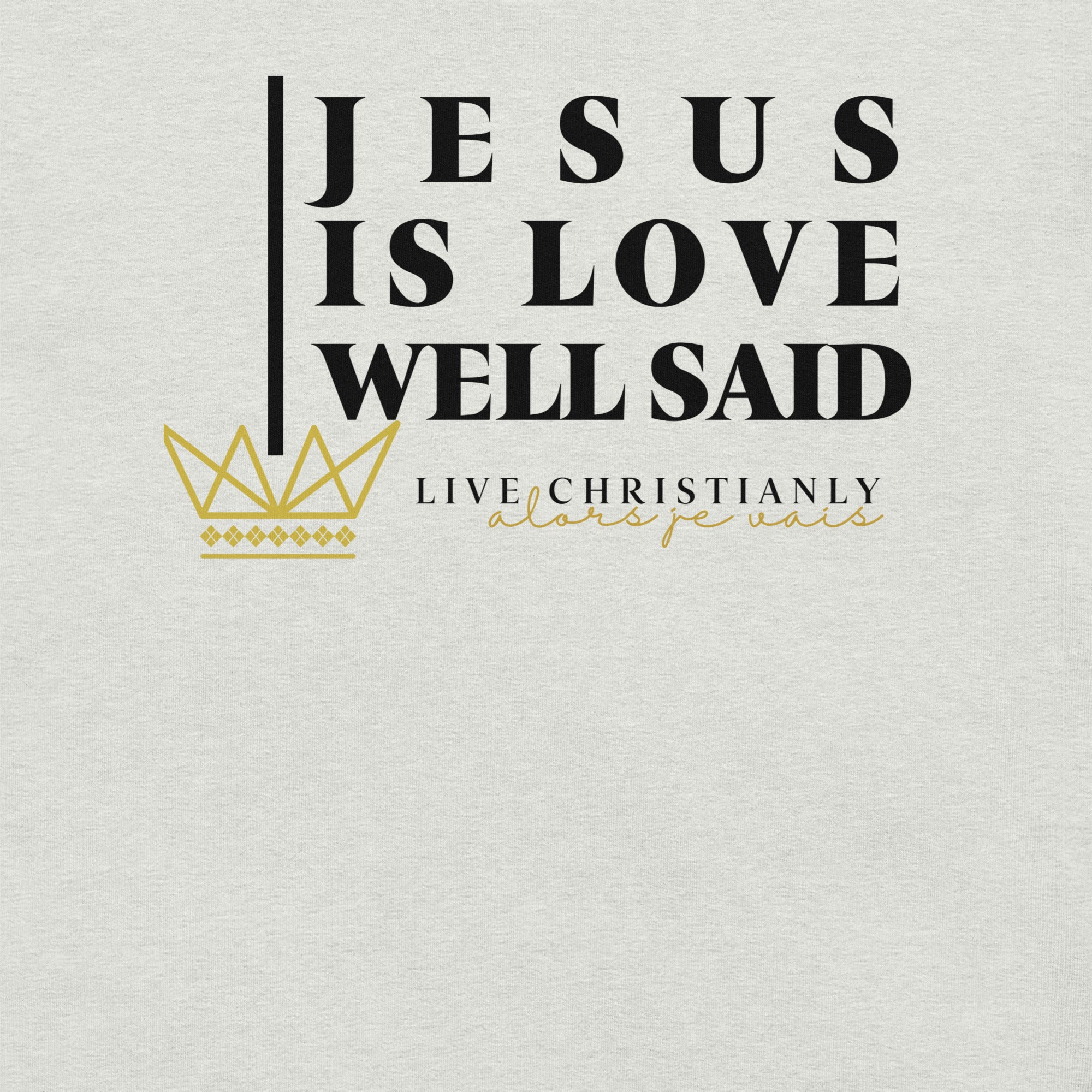 Crafted with the finest materials, this sophisticated tee is a perfect fusion of style and comfort. Elevate your wardrobe and make a statement with this exclusive piece that showcases your undying devotion to love and faith in Christ alone.