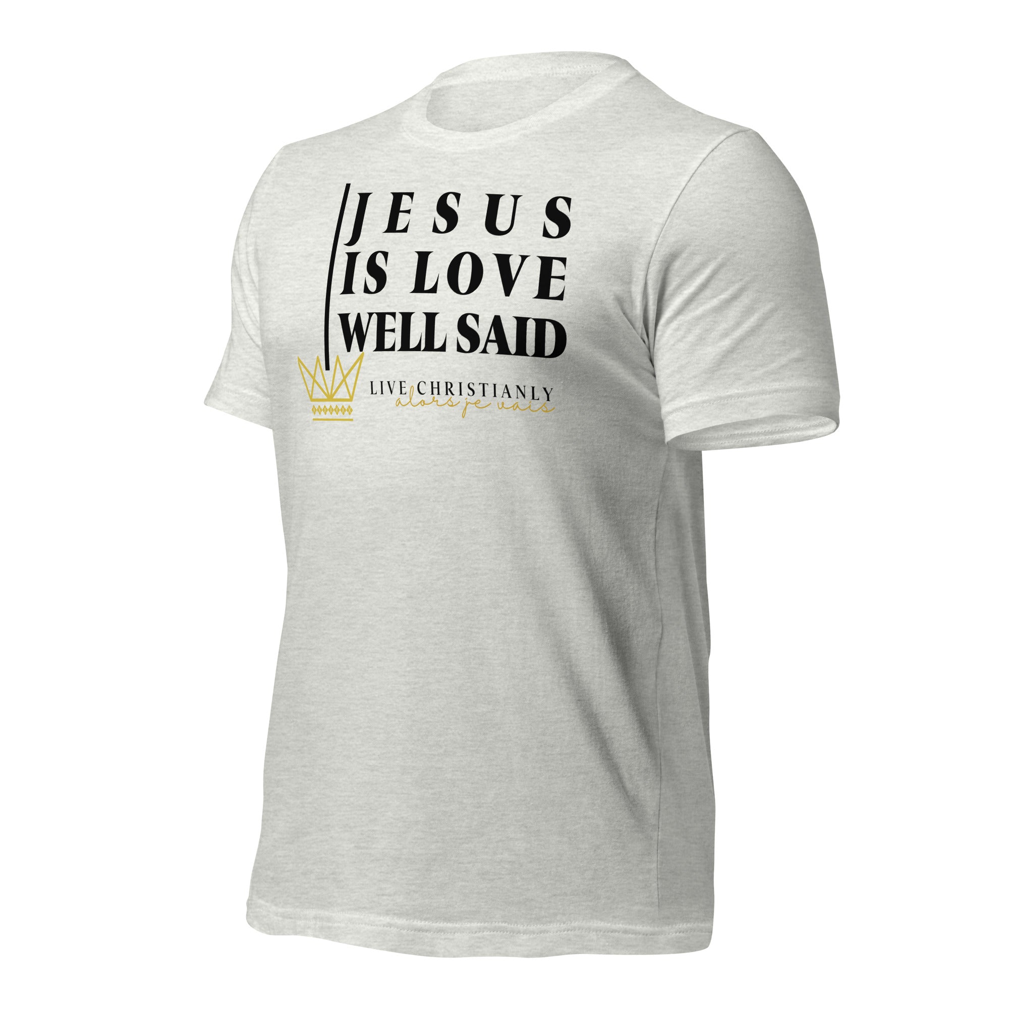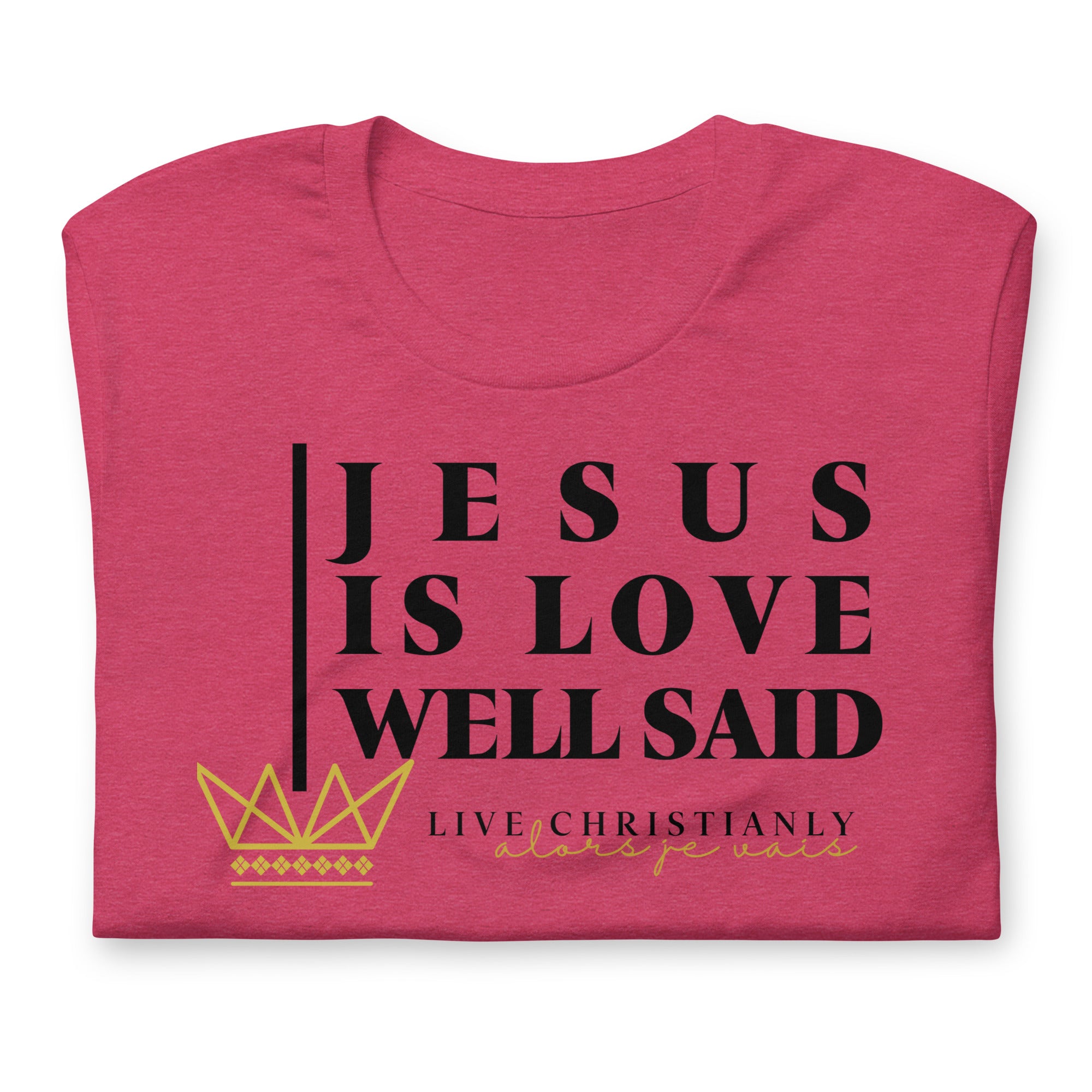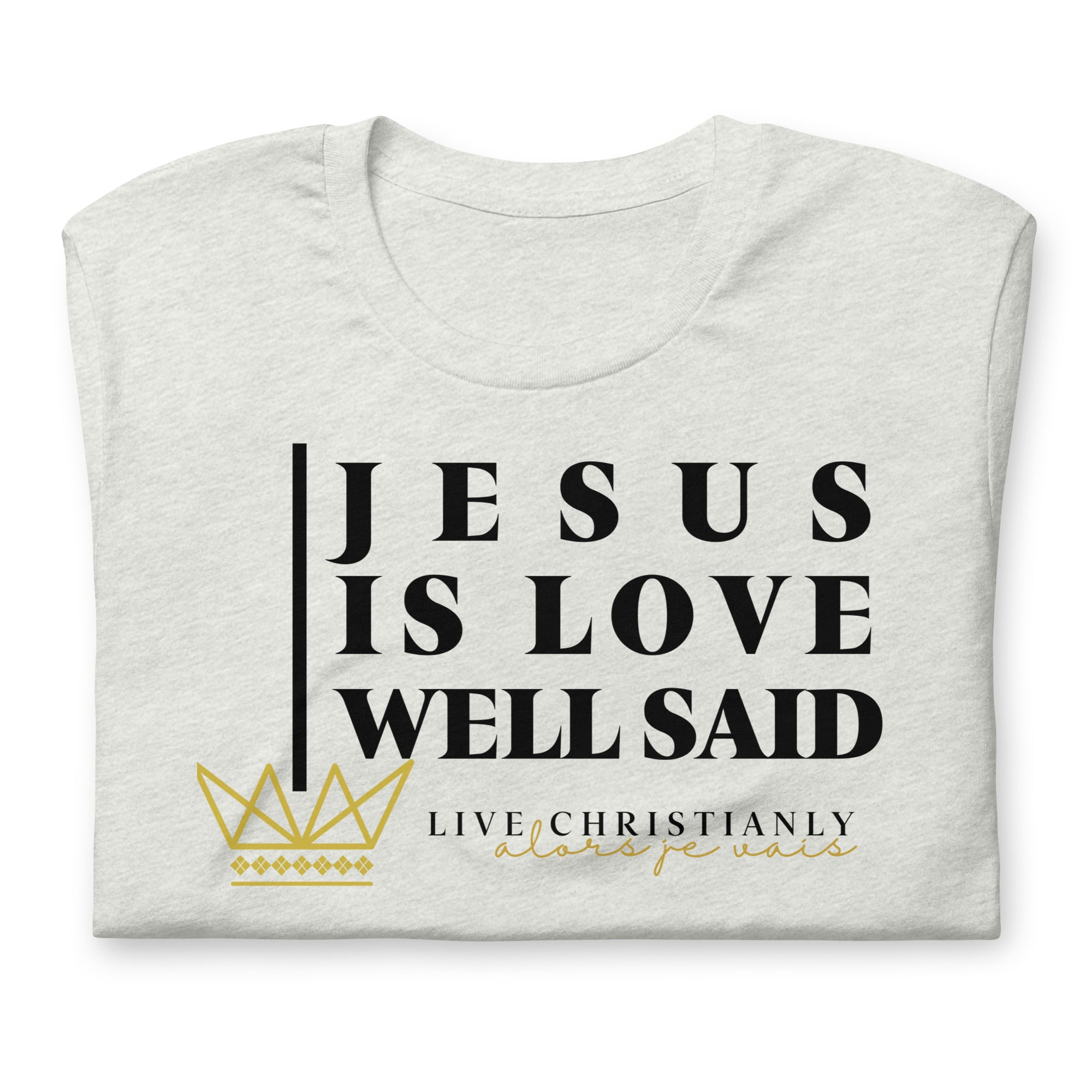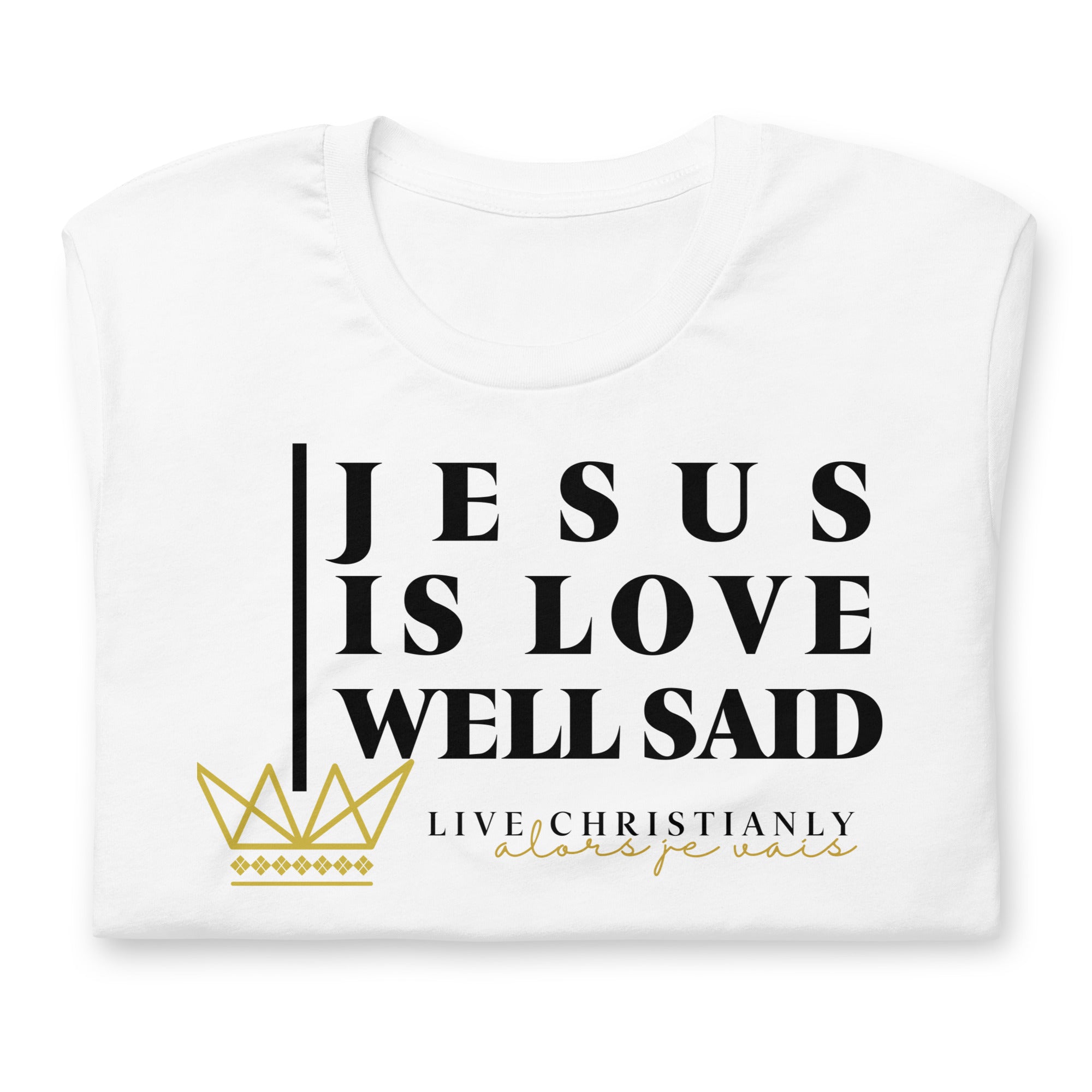 Crafted with the finest materials, this sophisticated tee is a perfect fusion of style and comfort. Elevate your wardrobe and make a statement with this exclusive piece that showcases your undying devotion to love and faith in Christ alone.