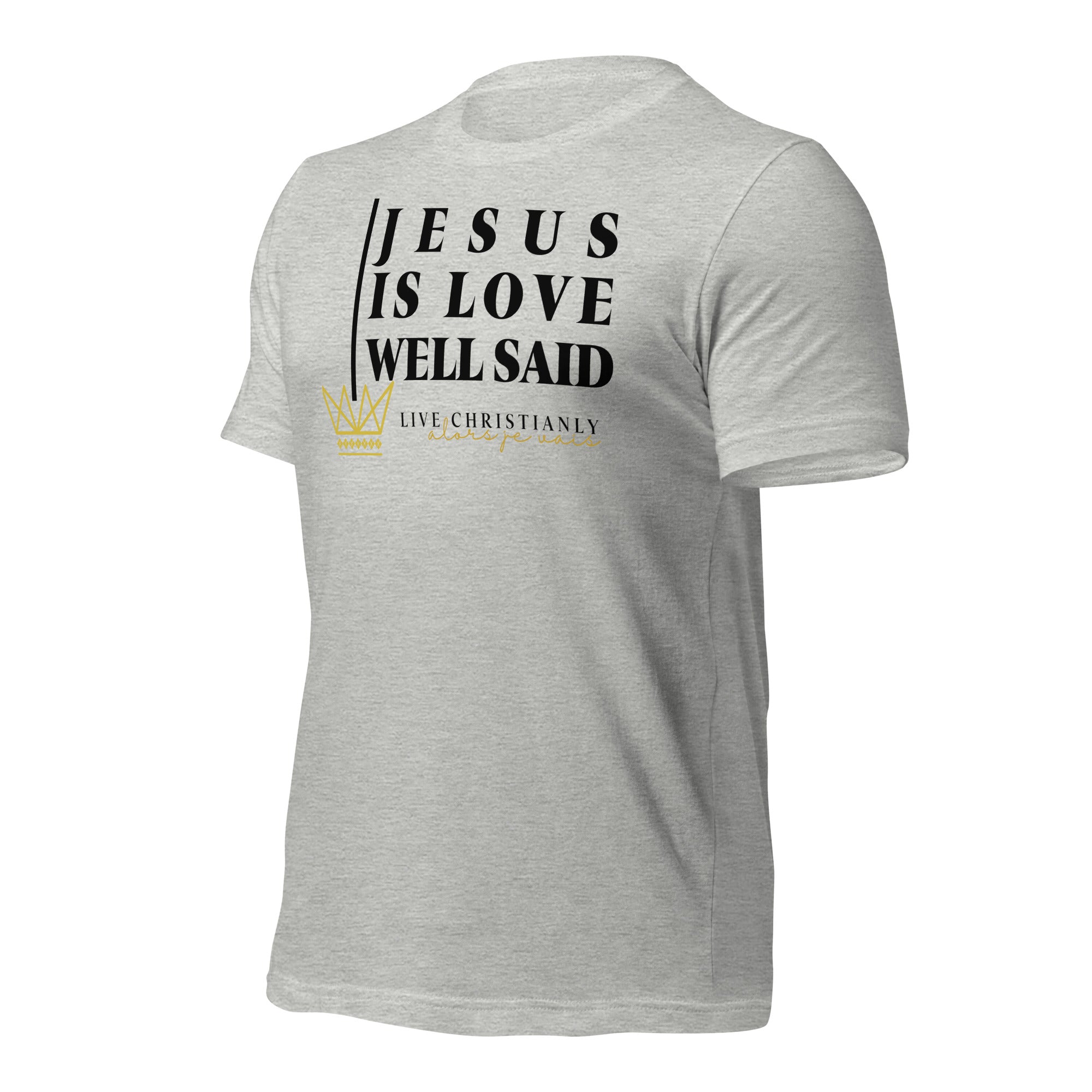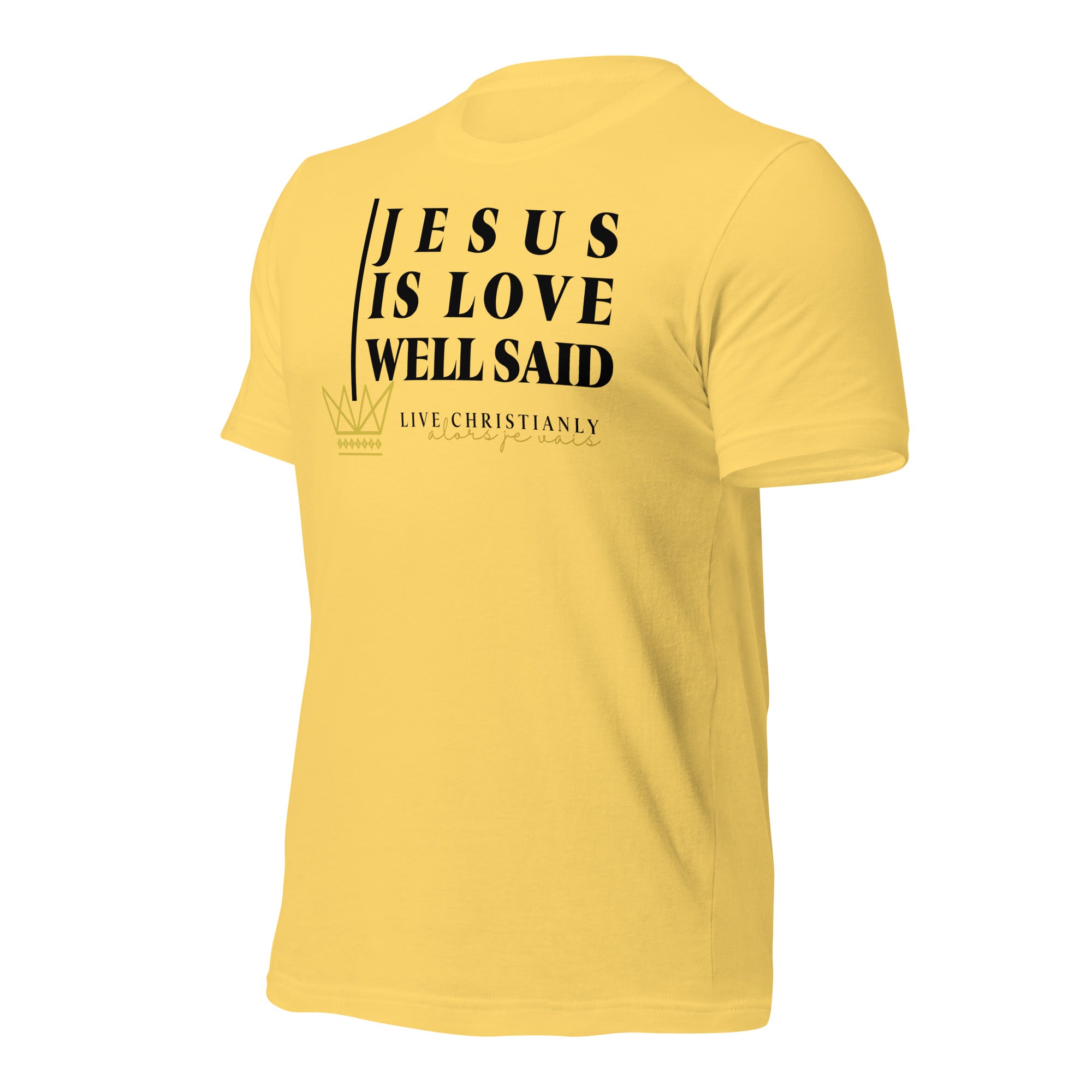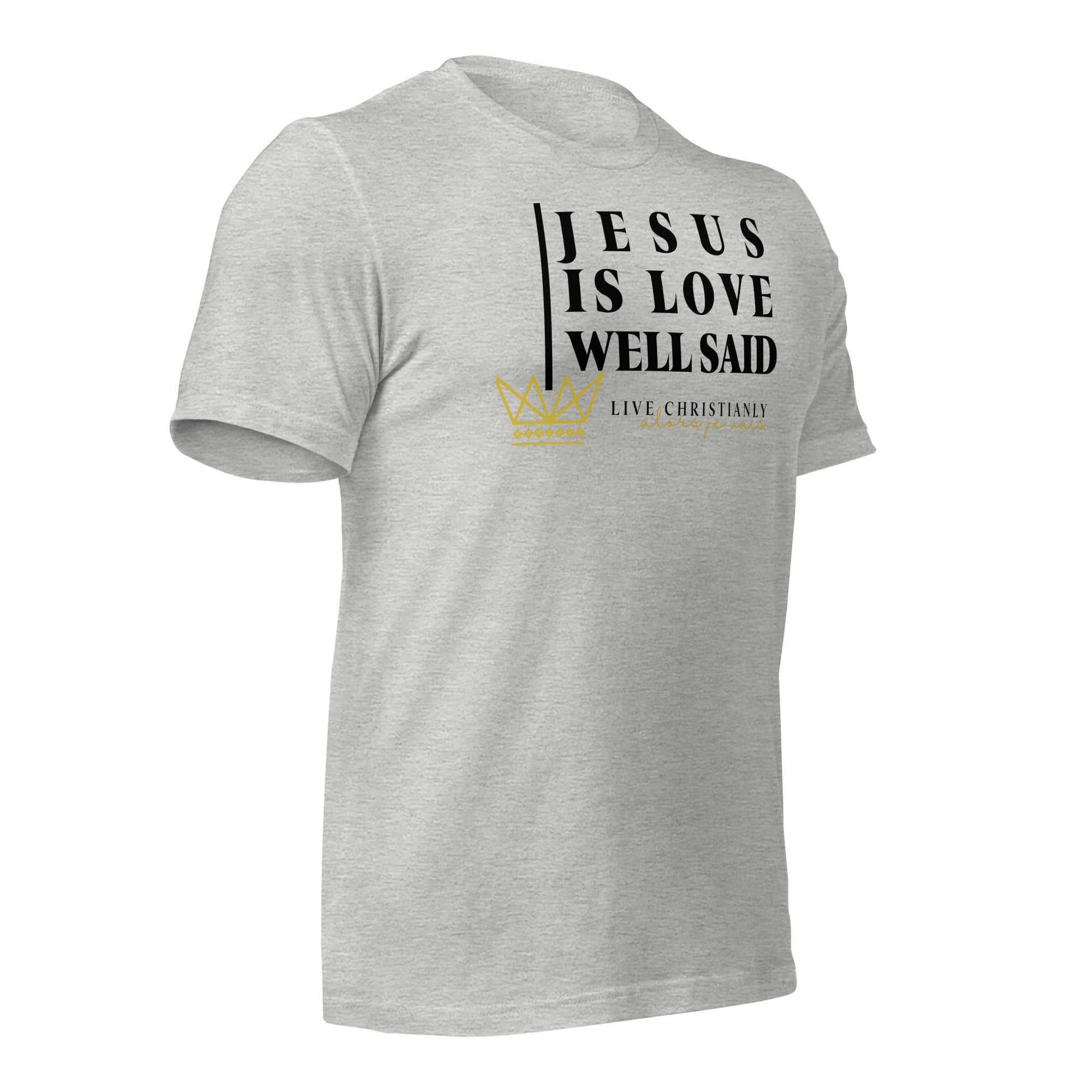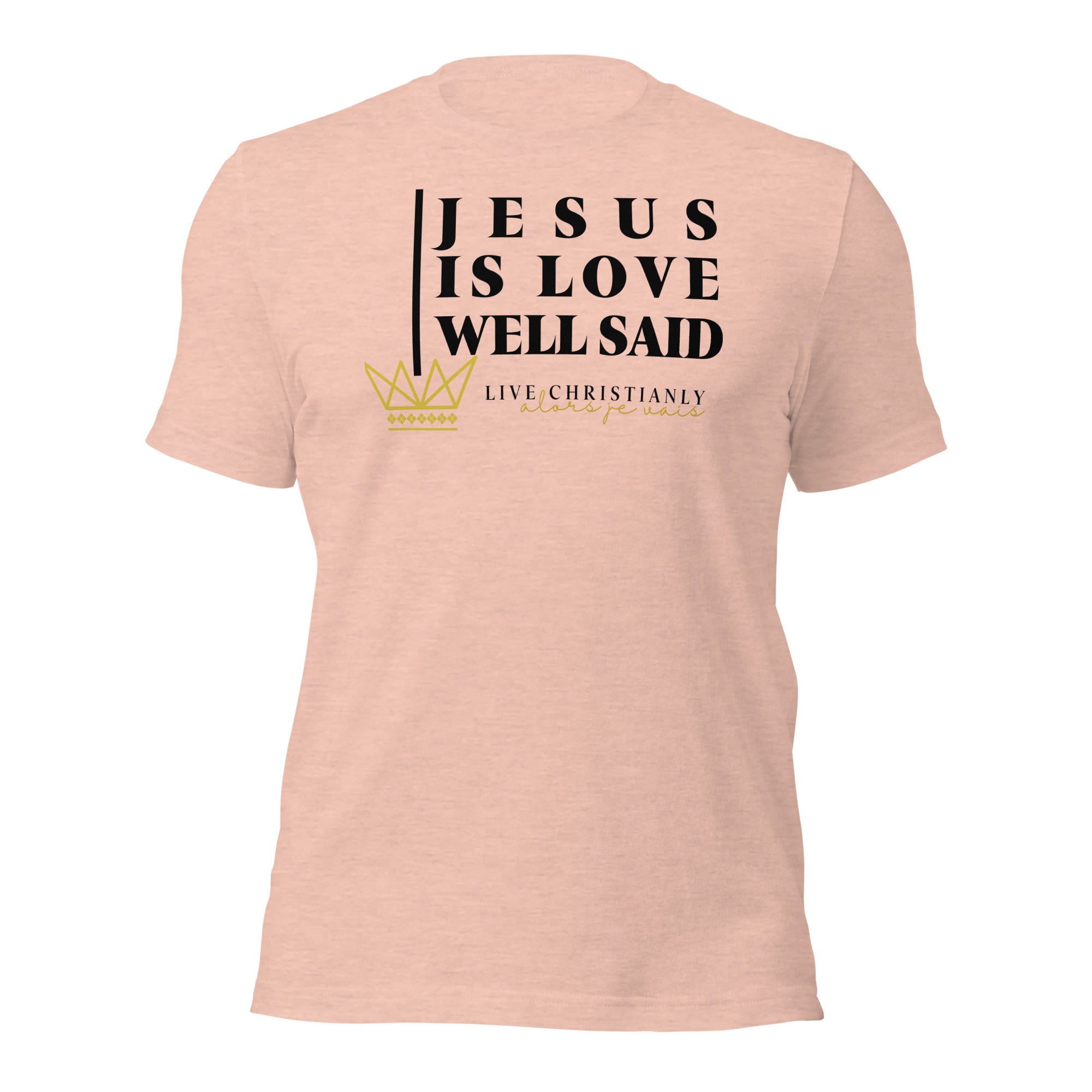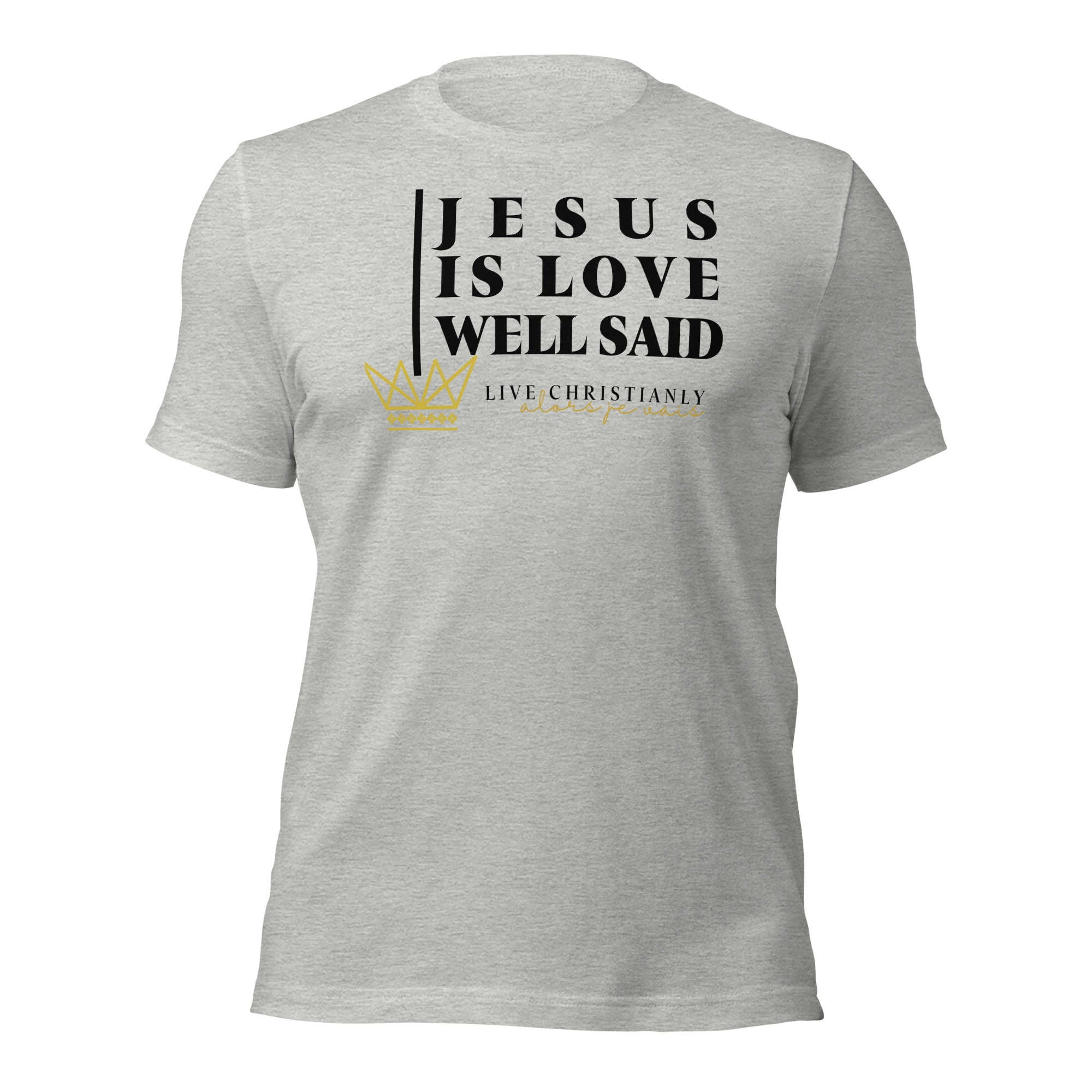 Crafted with the finest materials, this sophisticated tee is a perfect fusion of style and comfort. Elevate your wardrobe and make a statement with this exclusive piece that showcases your undying devotion to love and faith in Christ alone.