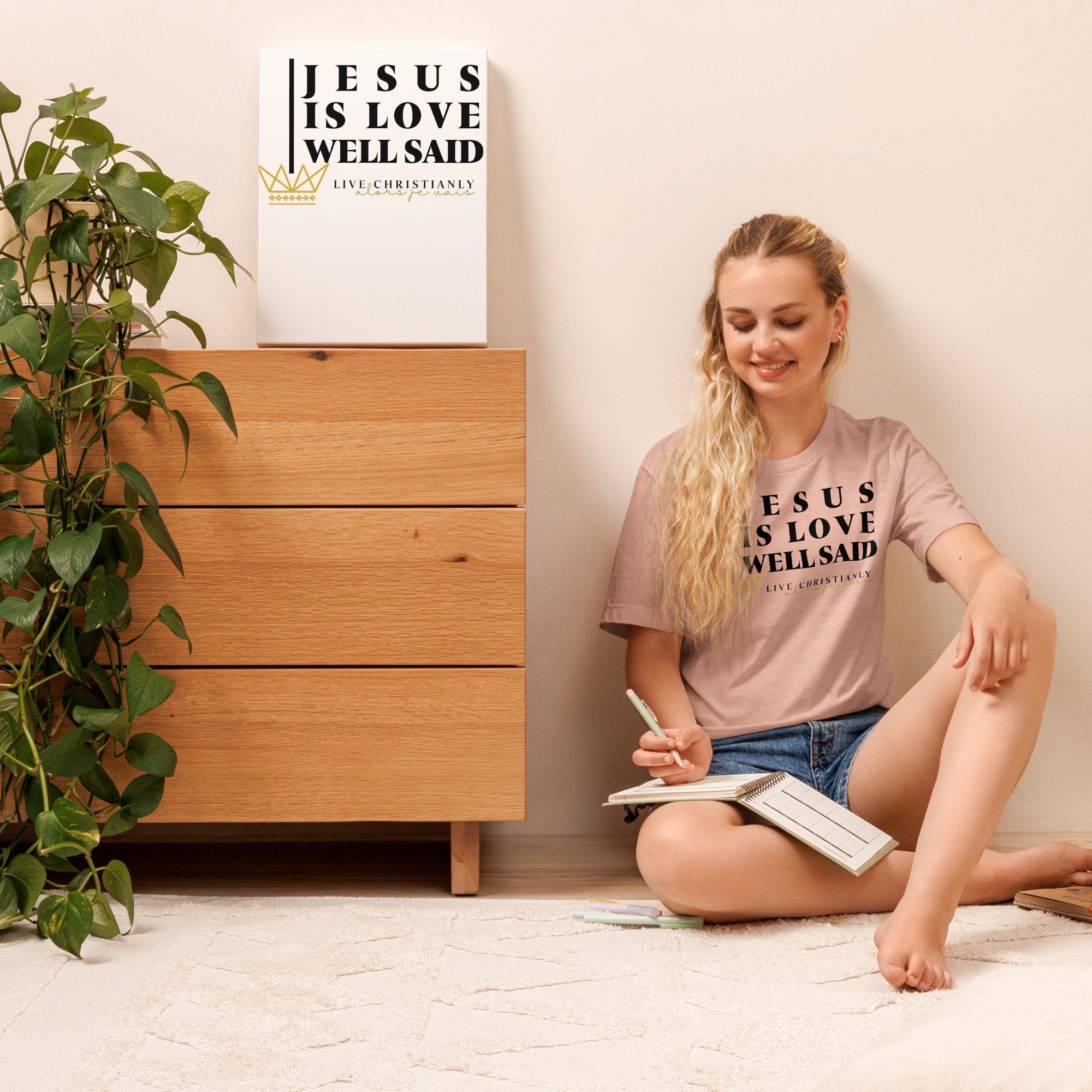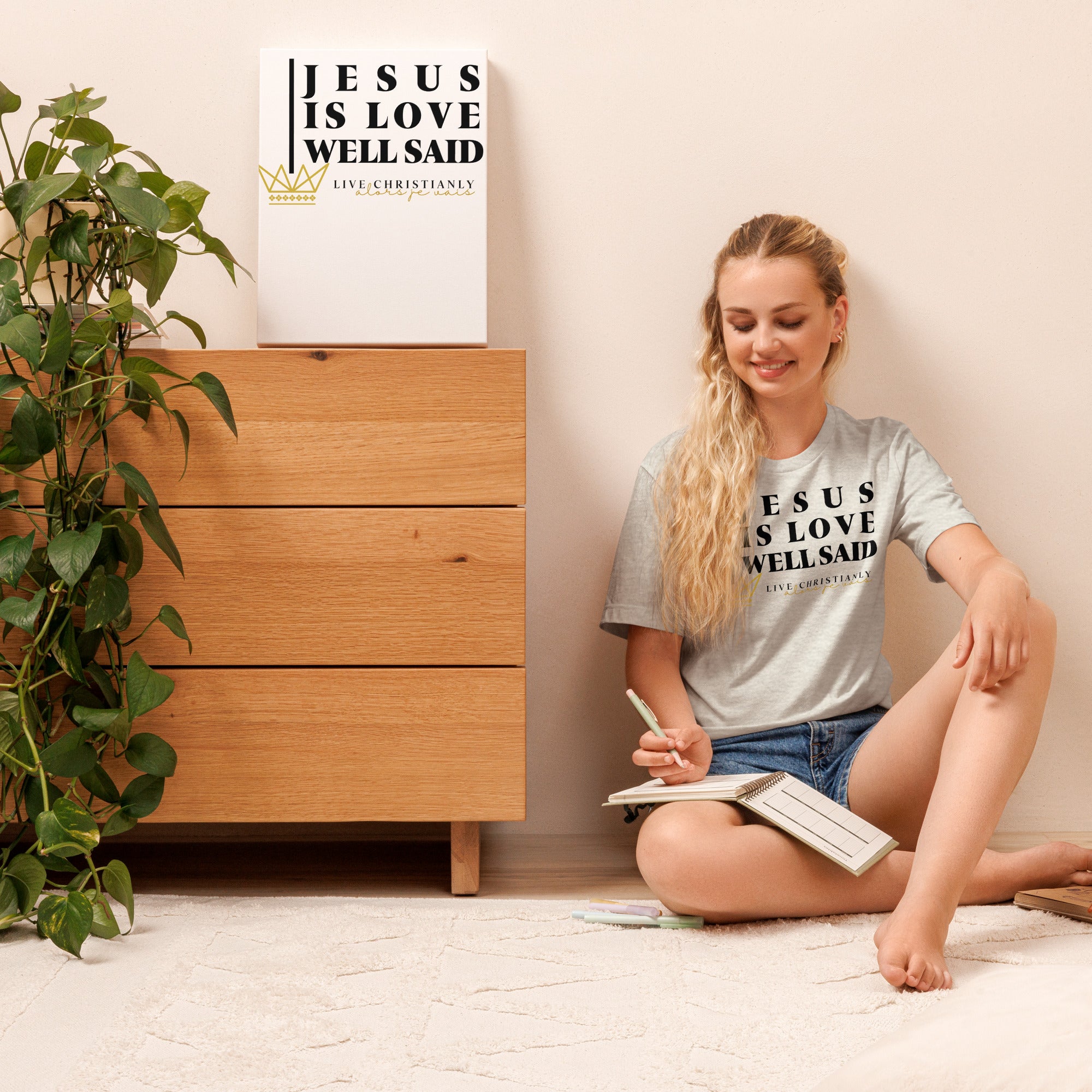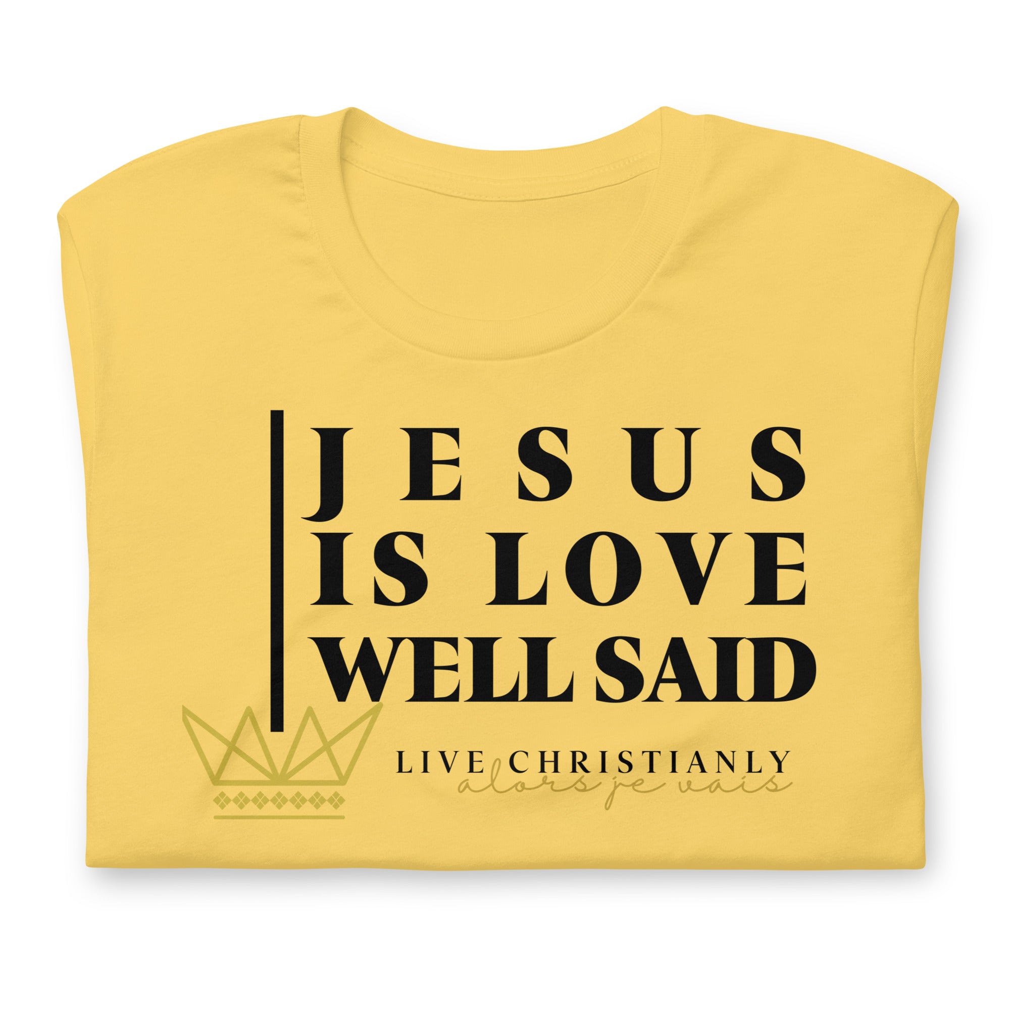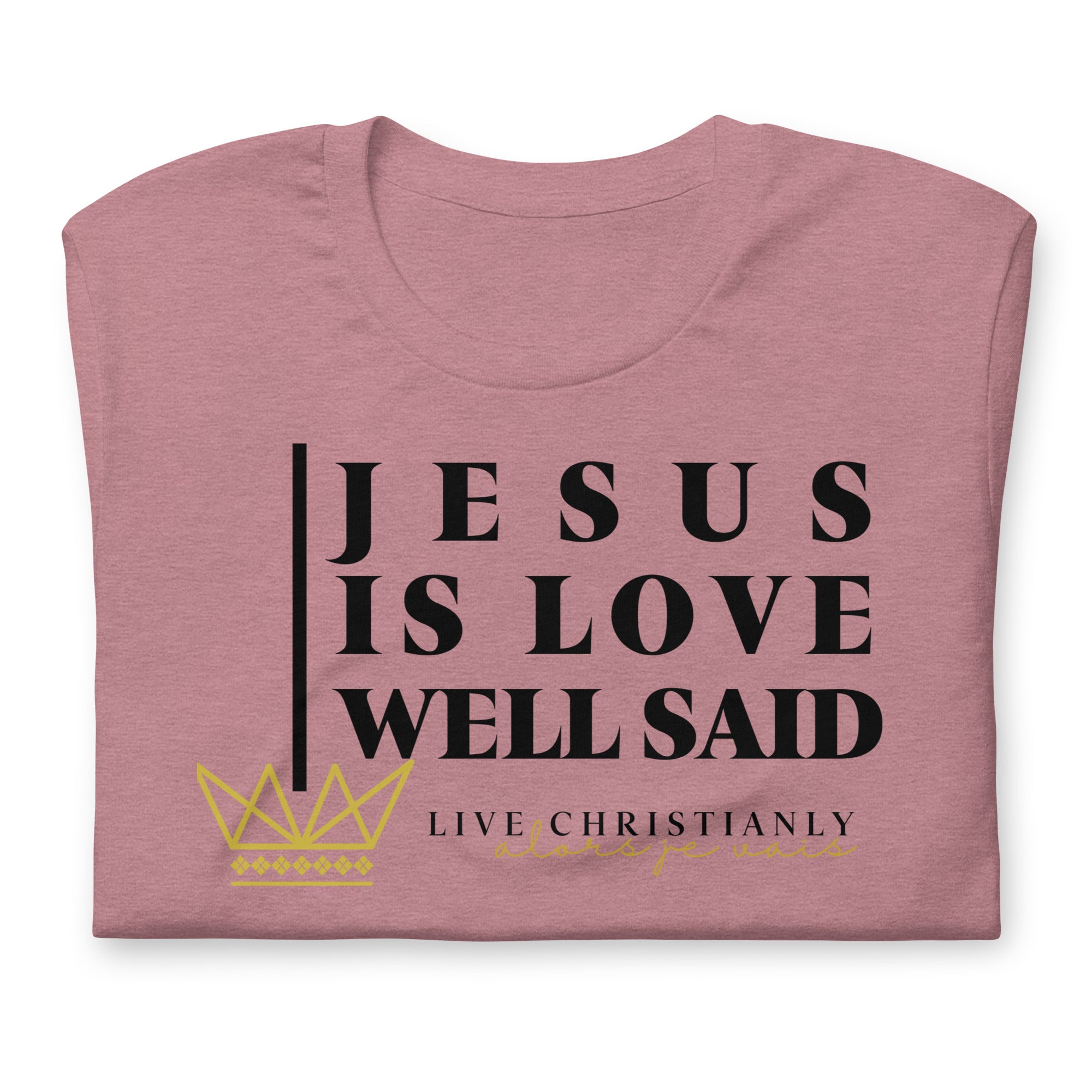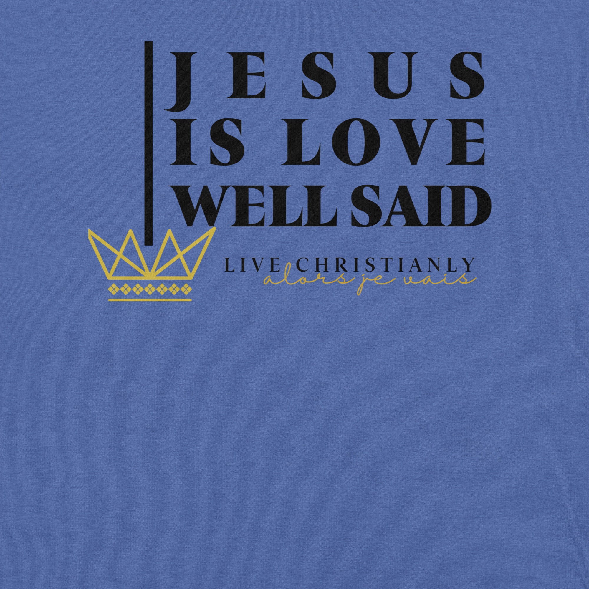 Crafted with the finest materials, this sophisticated tee is a perfect fusion of style and comfort. Elevate your wardrobe and make a statement with this exclusive piece that showcases your undying devotion to love and faith in Christ alone.