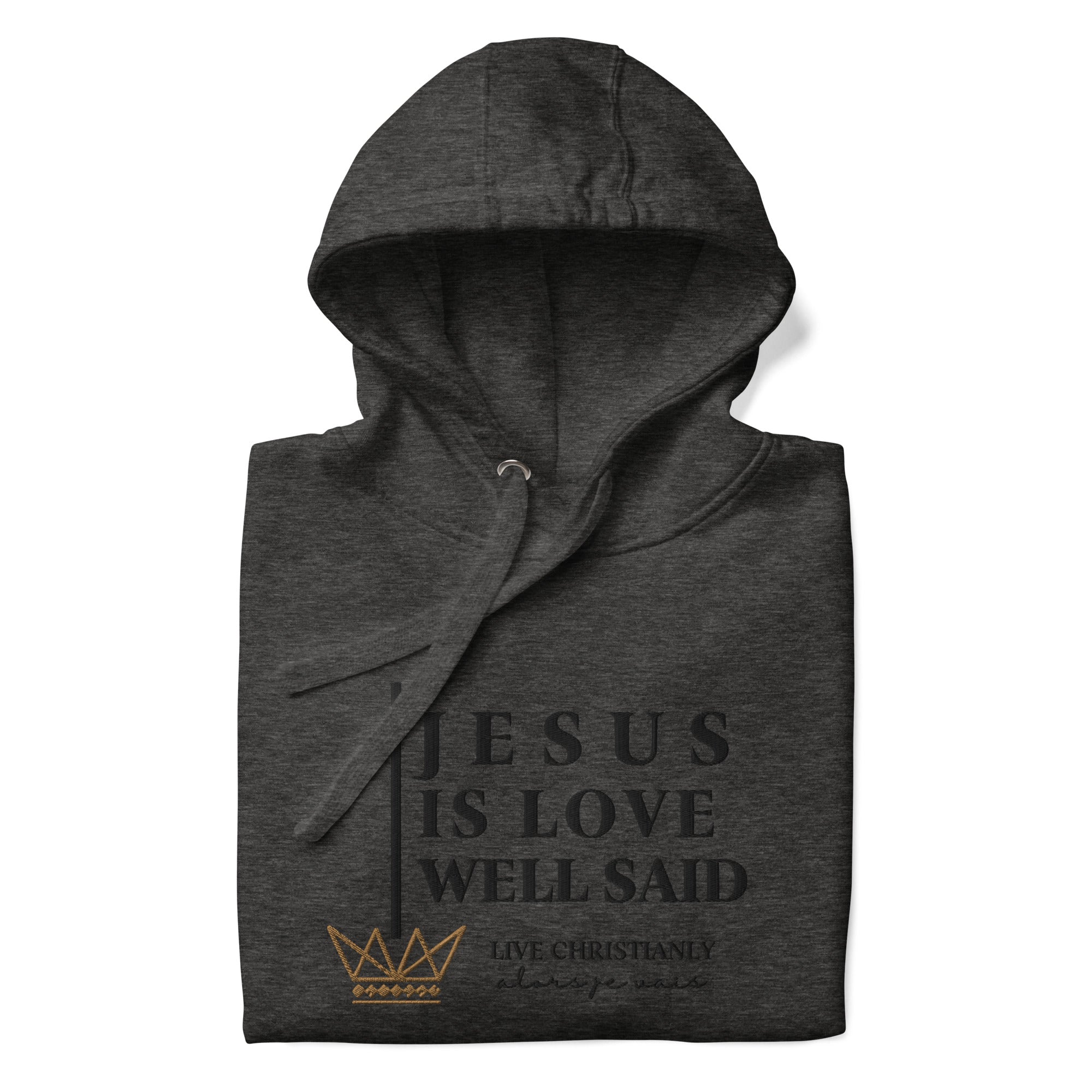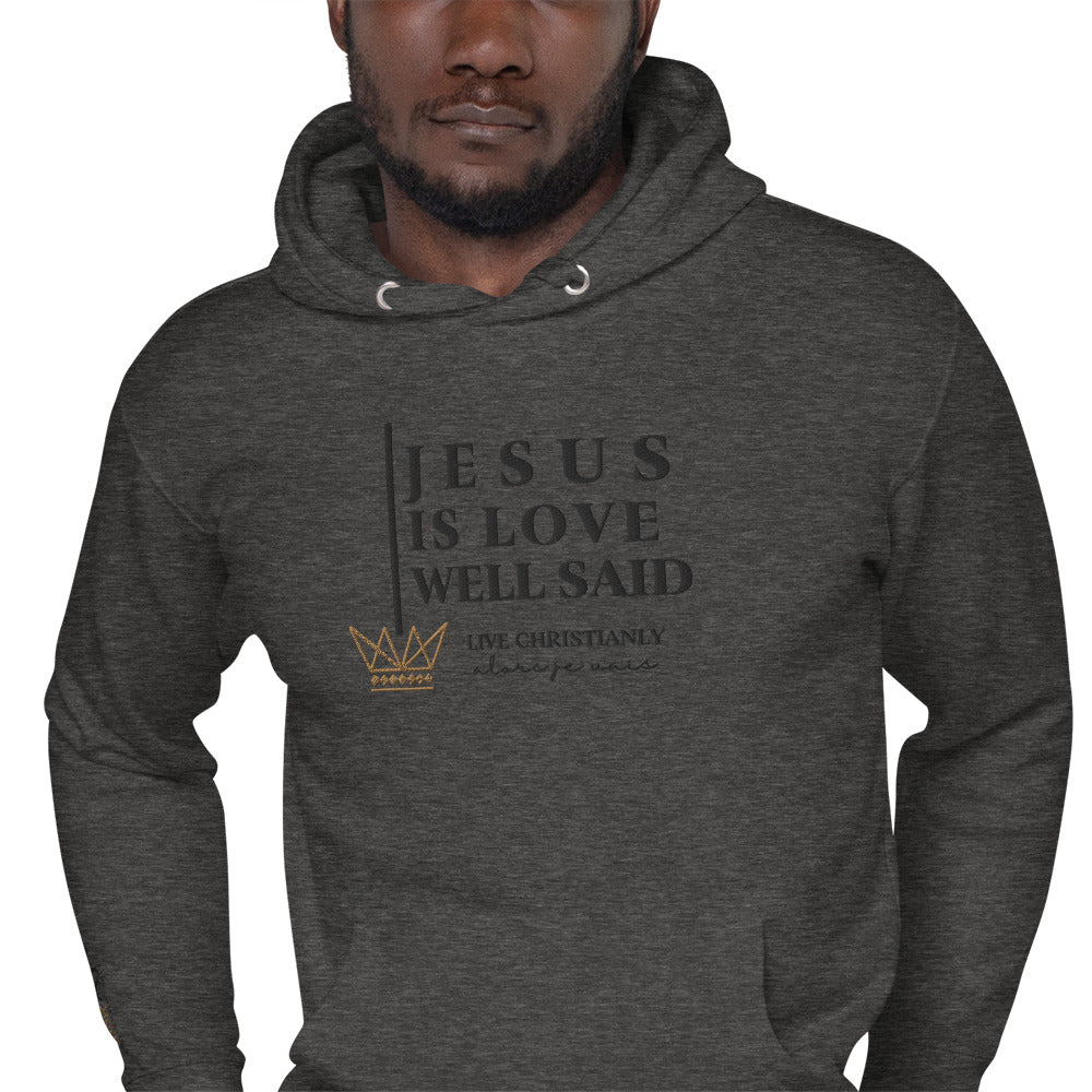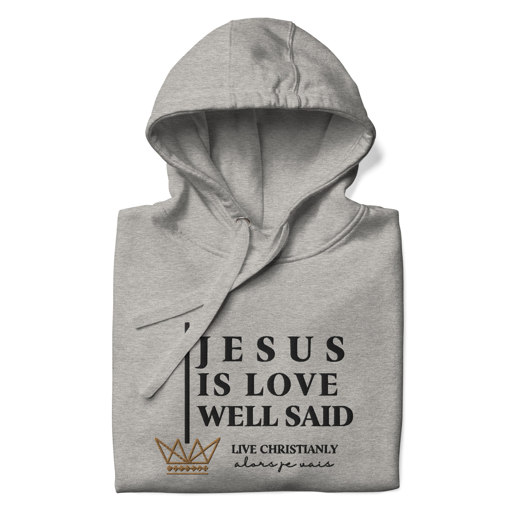 The luxurious way to show off your faith. Wrap yourself in the ultimate comfort and style with our 'JESUS IS LOVE WELL SAID Hoodie'. Perfect for any occasion, this hoodie serves as a reminder of your devotion while elevating your wardrobe. Crafted with the highest quality materials, it's a must-have for any fashion-forward believer; a product loved by those with discerning taste.in the warmth of love and tranquility that only comes from loving Jesus.