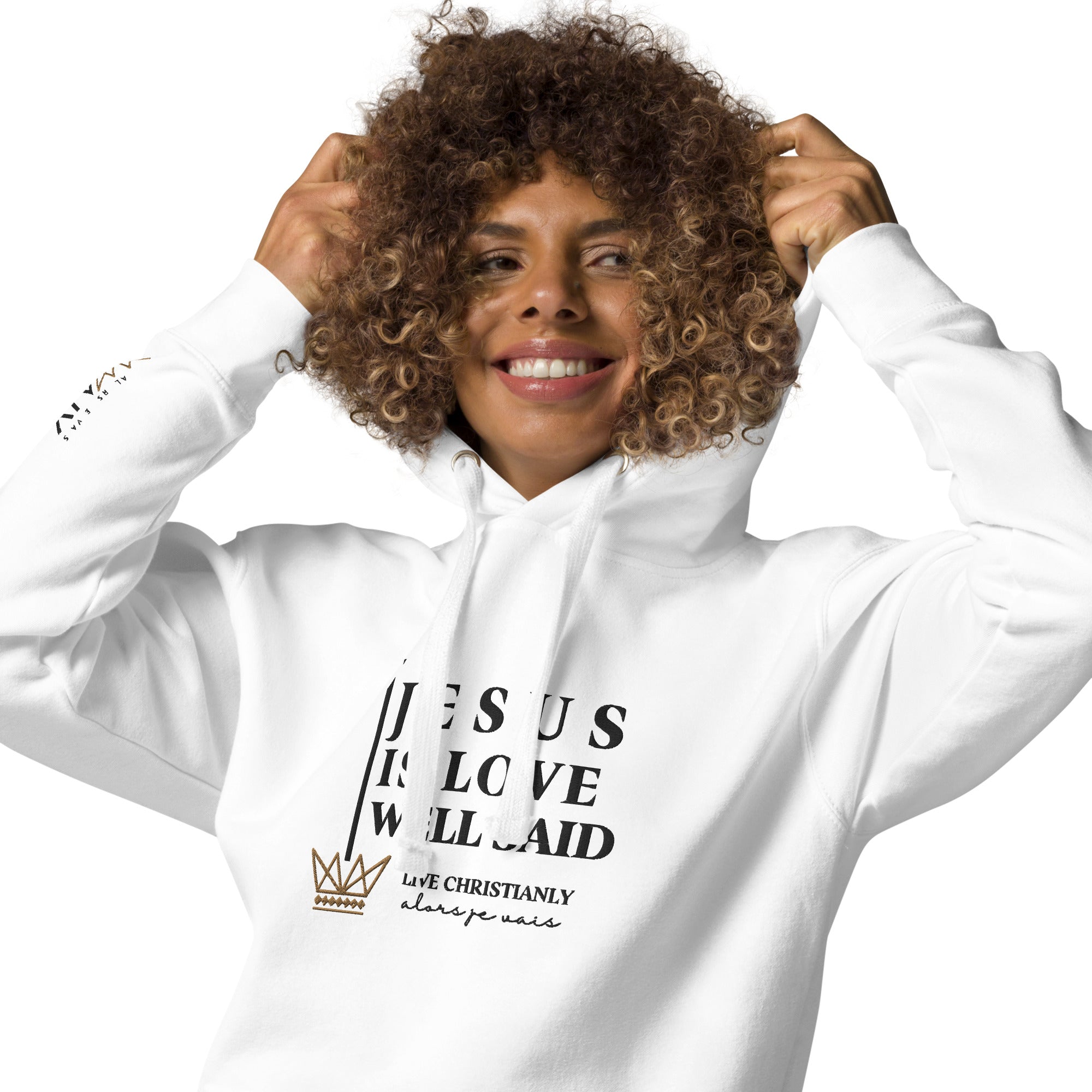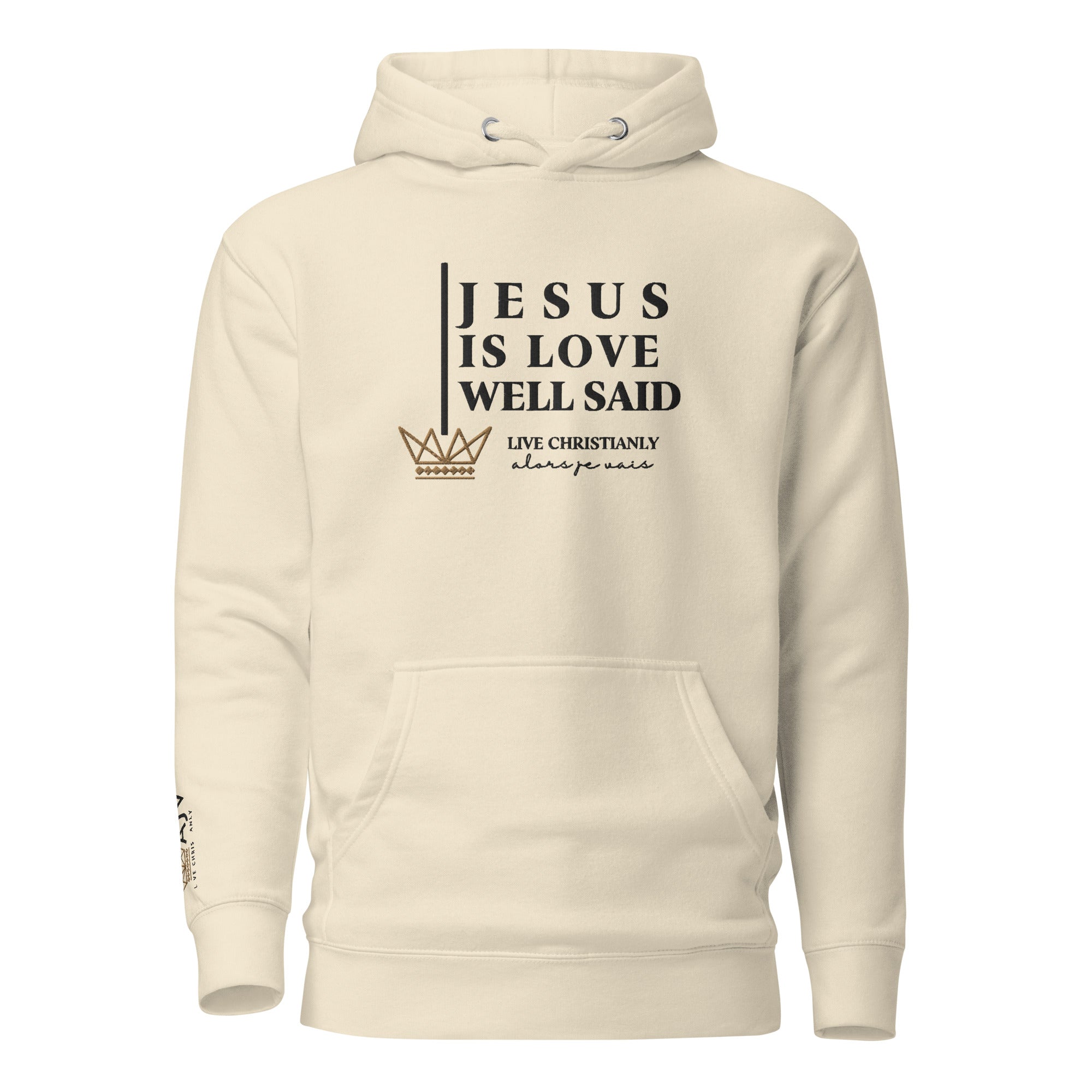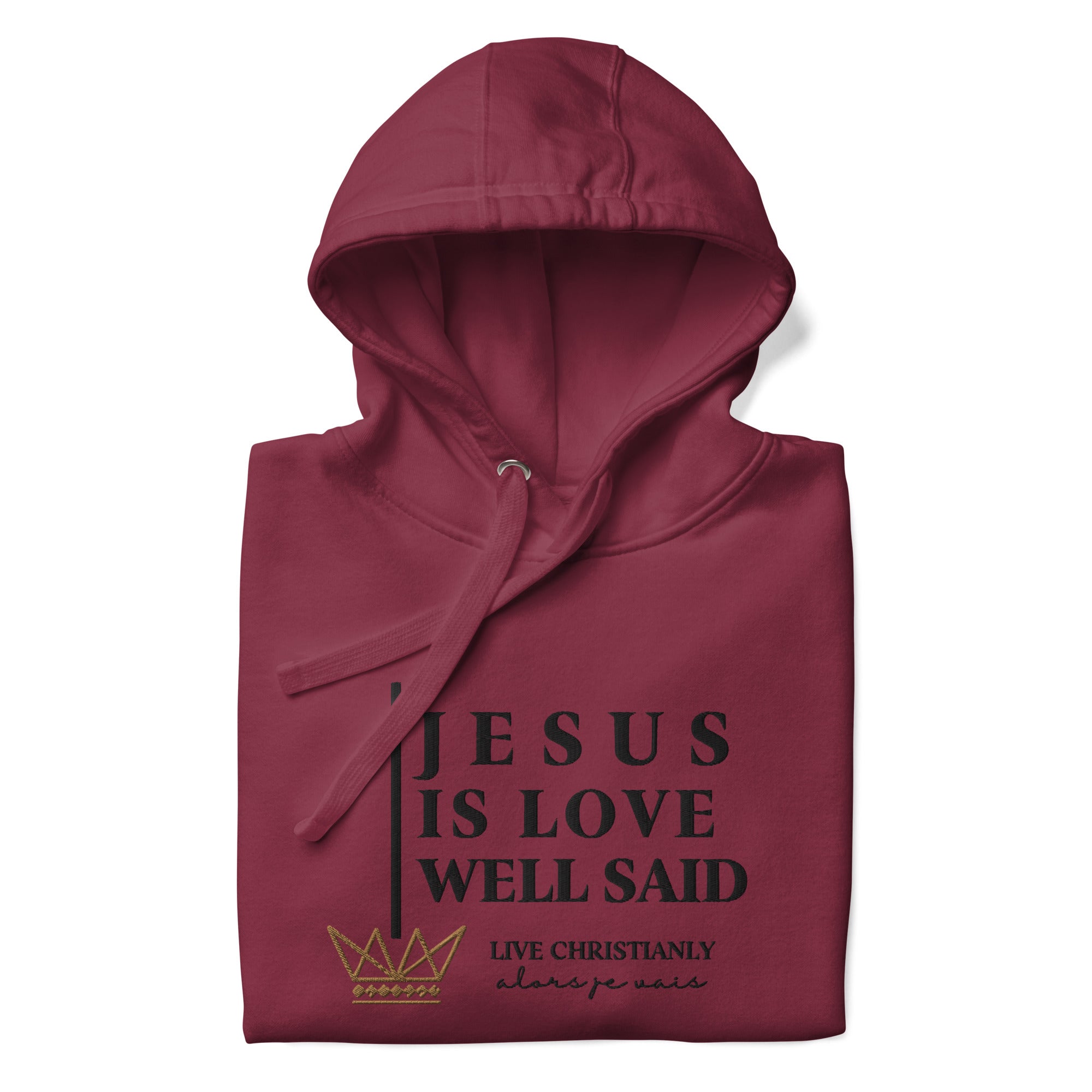 The luxurious way to show off your faith. Wrap yourself in the ultimate comfort and style with our 'JESUS IS LOVE WELL SAID Hoodie'. Perfect for any occasion, this hoodie serves as a reminder of your devotion while elevating your wardrobe. Crafted with the highest quality materials, it's a must-have for any fashion-forward believer; a product loved by those with discerning taste.in the warmth of love and tranquility that only comes from loving Jesus.