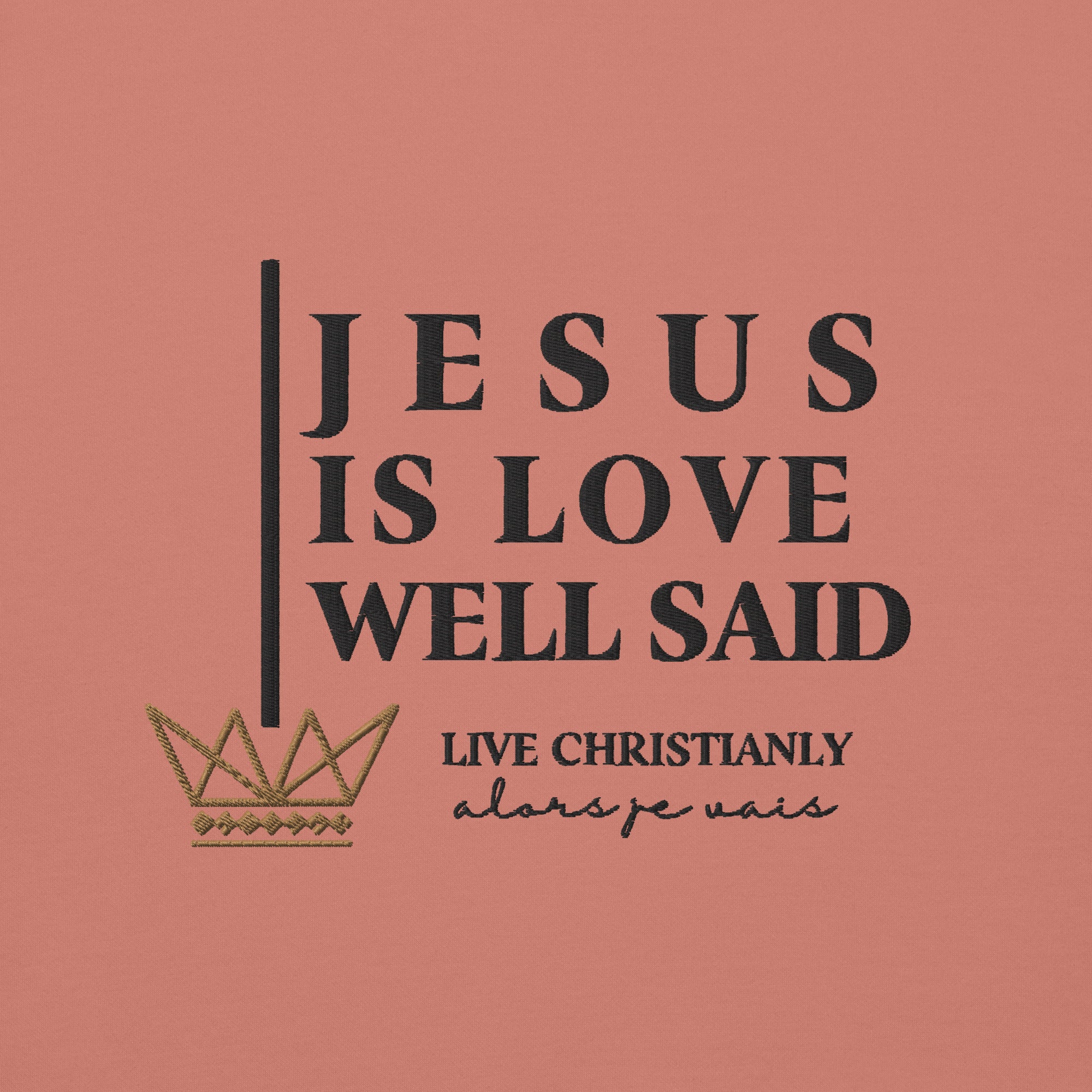 Make a statement with this luxurious and exclusive ALORS JE VAIS hoodie. Elevate your style and stand out from the crowd with the high-quality materials and designed with heart of grace, humility and love for Our Lord and Savior Christ Jesus. It's a must-have for those who appreciate a little luxury while they make a bold statement of Faith + Love.