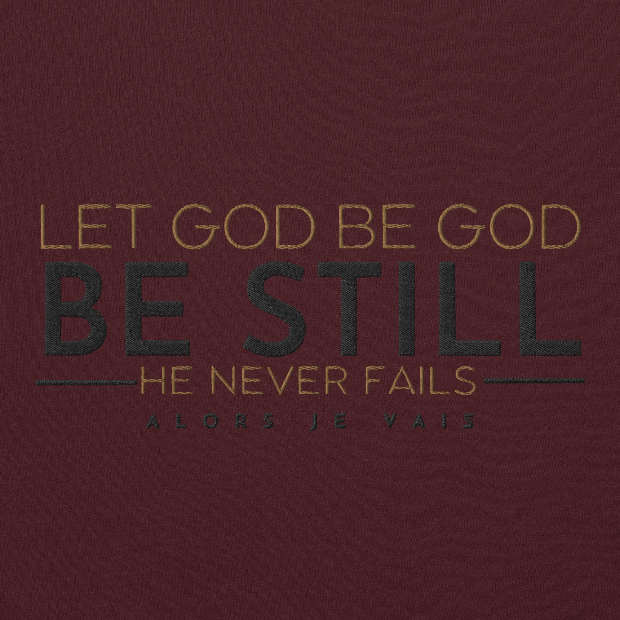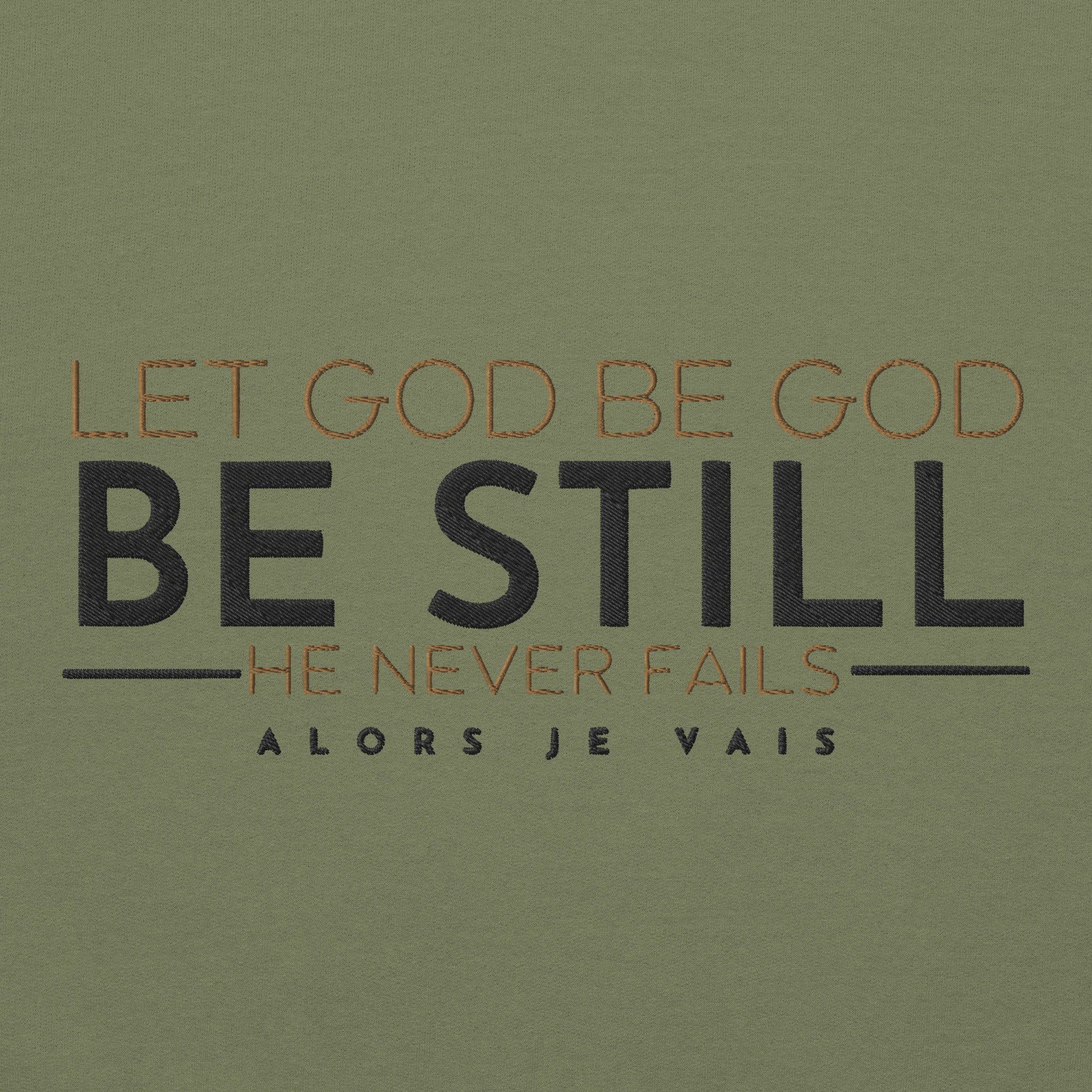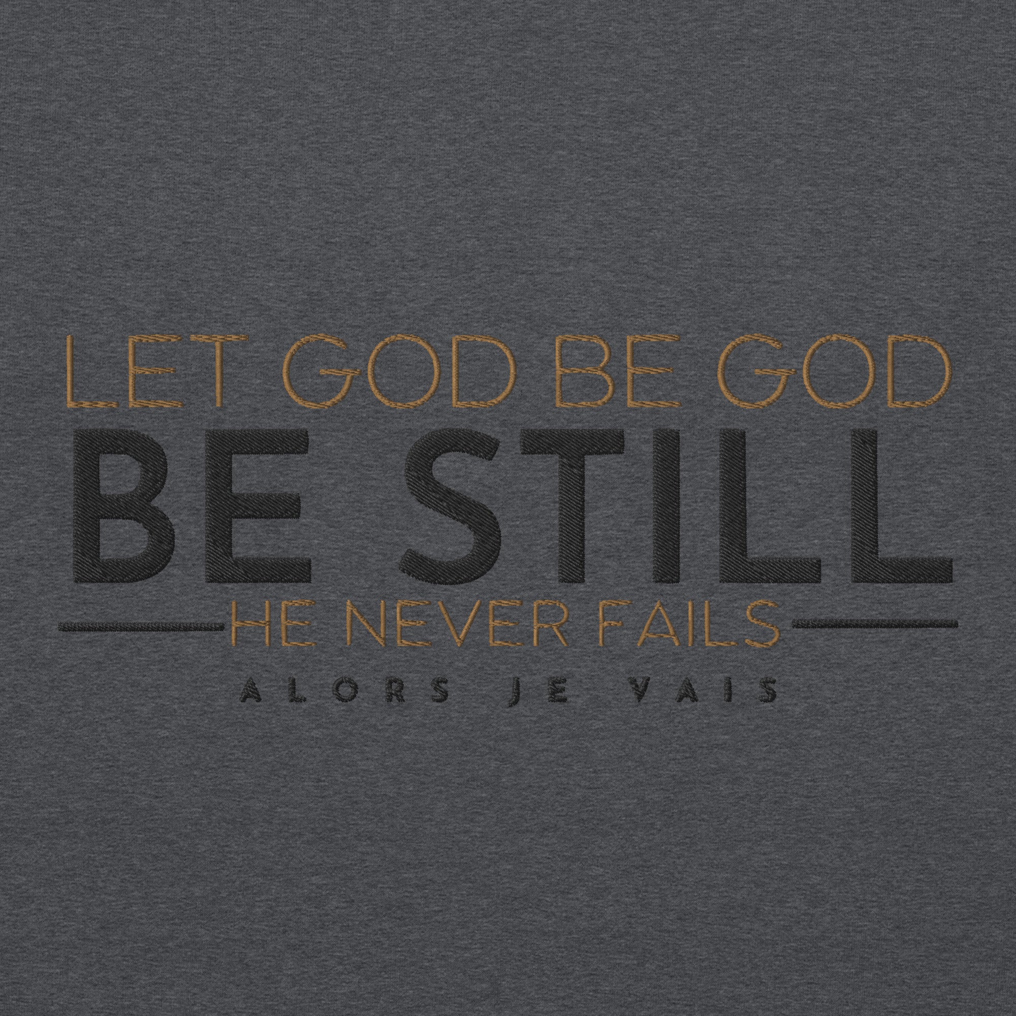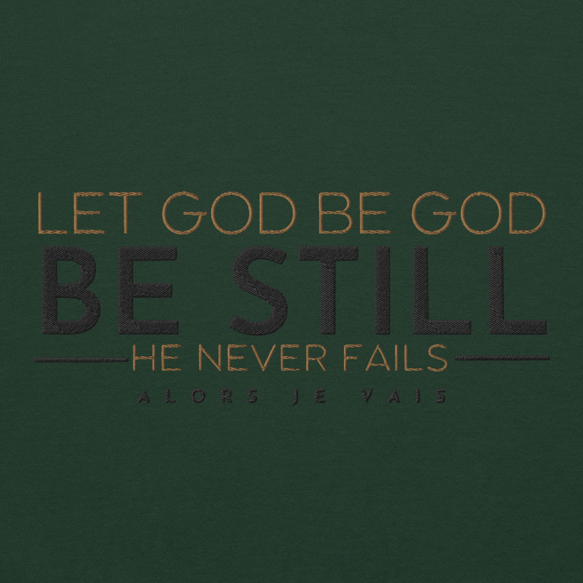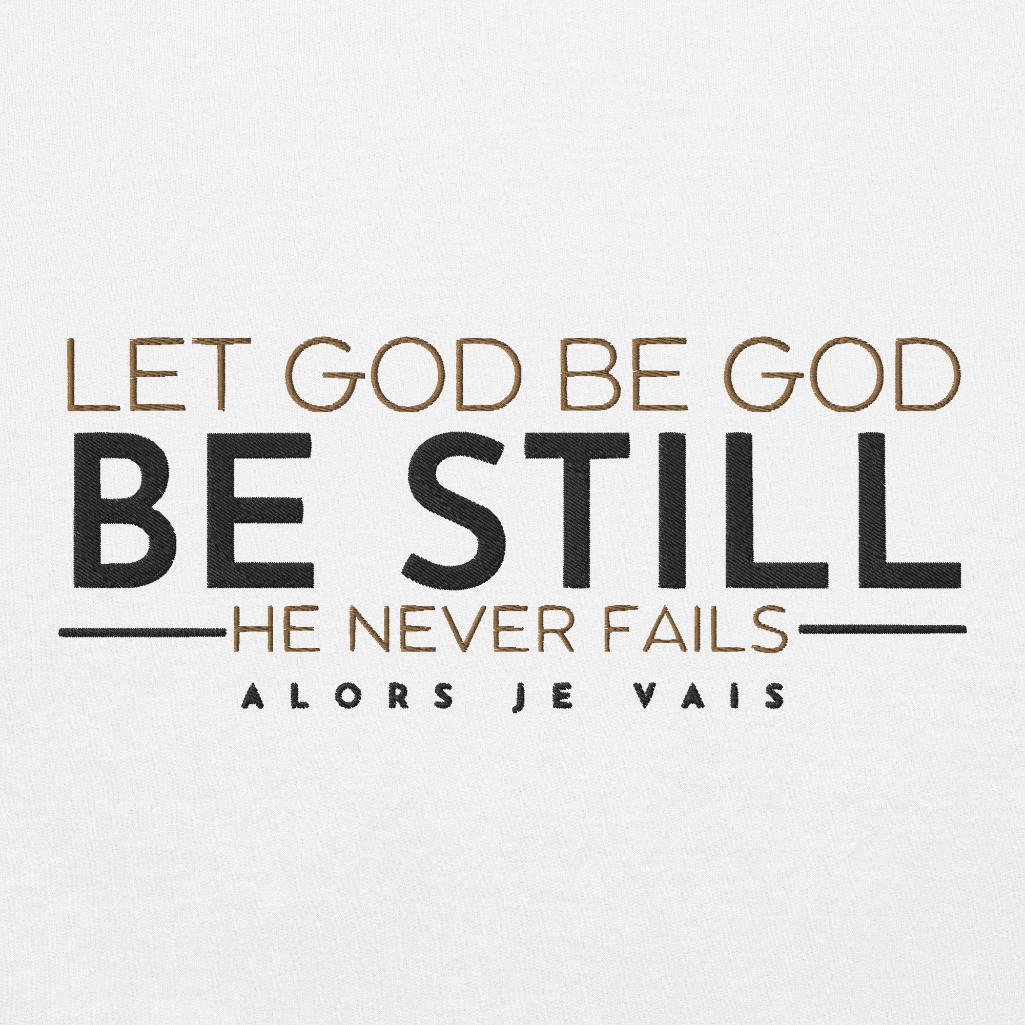 Wrap yourself in effortless sophistication with our LET GOD BE GOD BE STILL sweatshirt. Whether you're running errands or lounging at home, you'll exude class and style in this luxurious piece. The perfect addition to any fashion-forward wardrobe, it's a must-have for those seeking timeless elegance and comfort.
