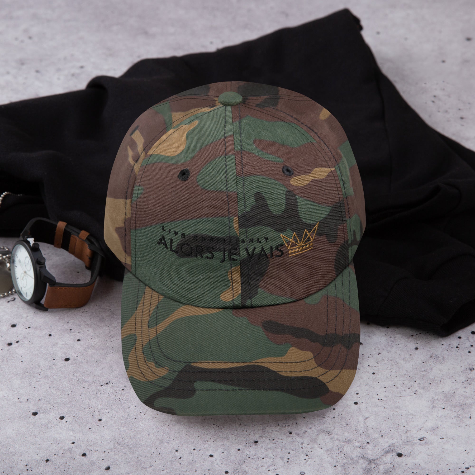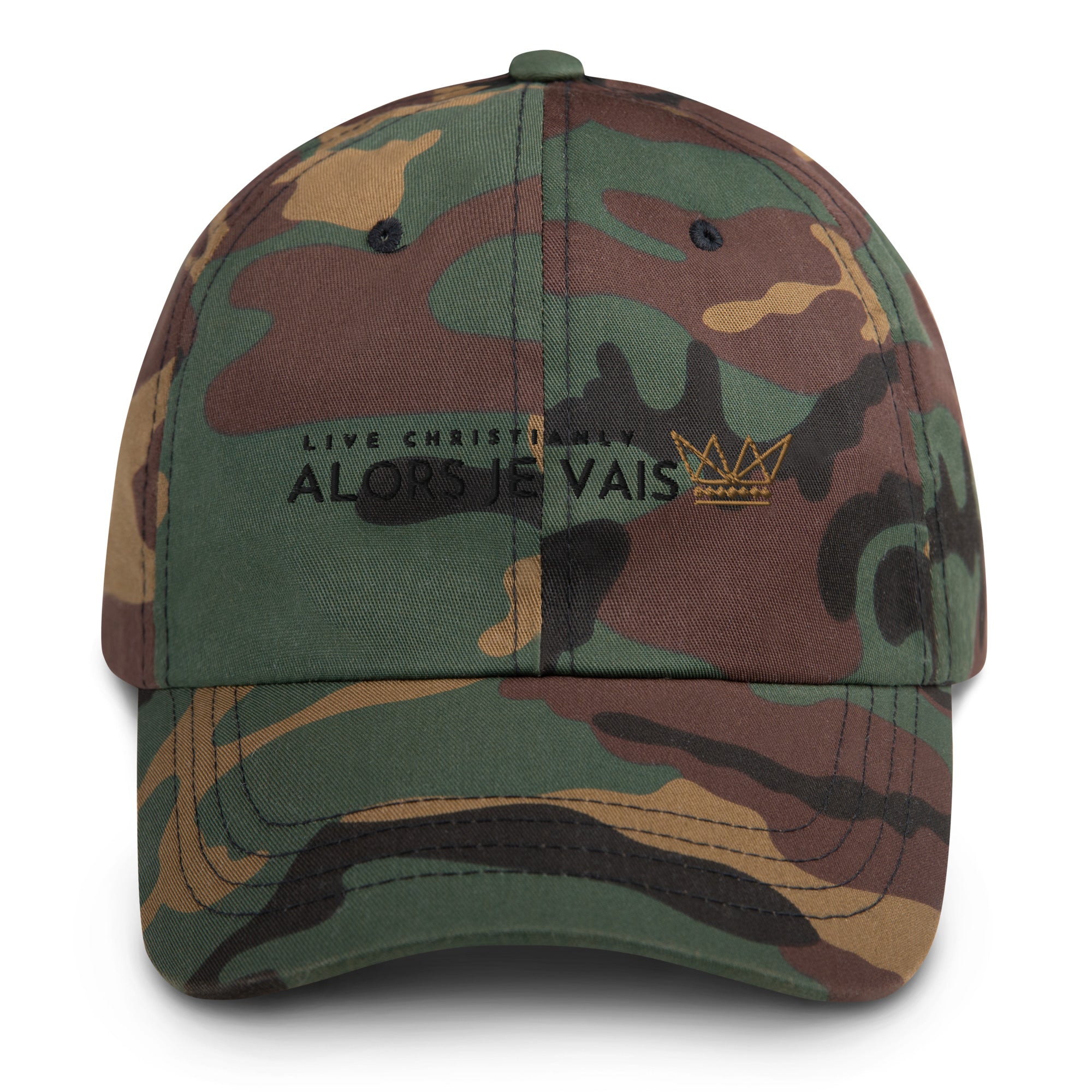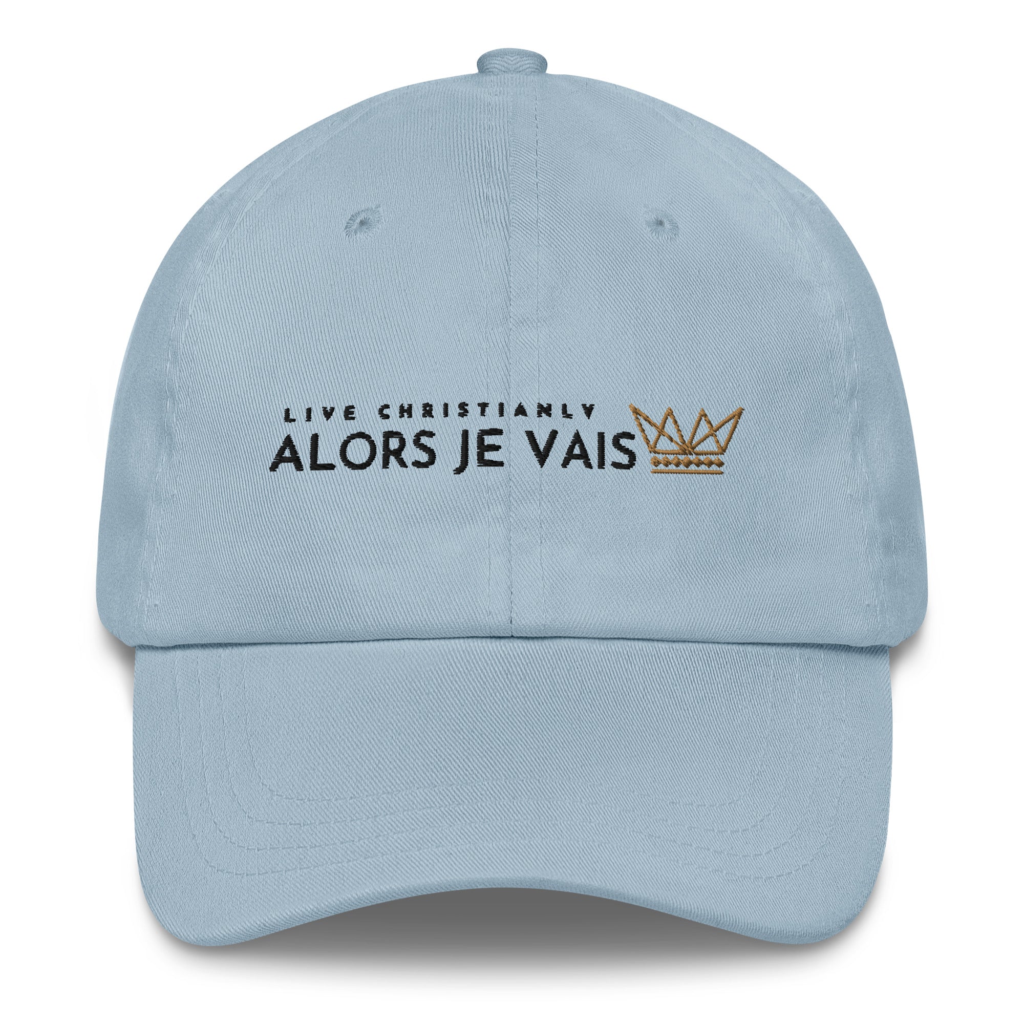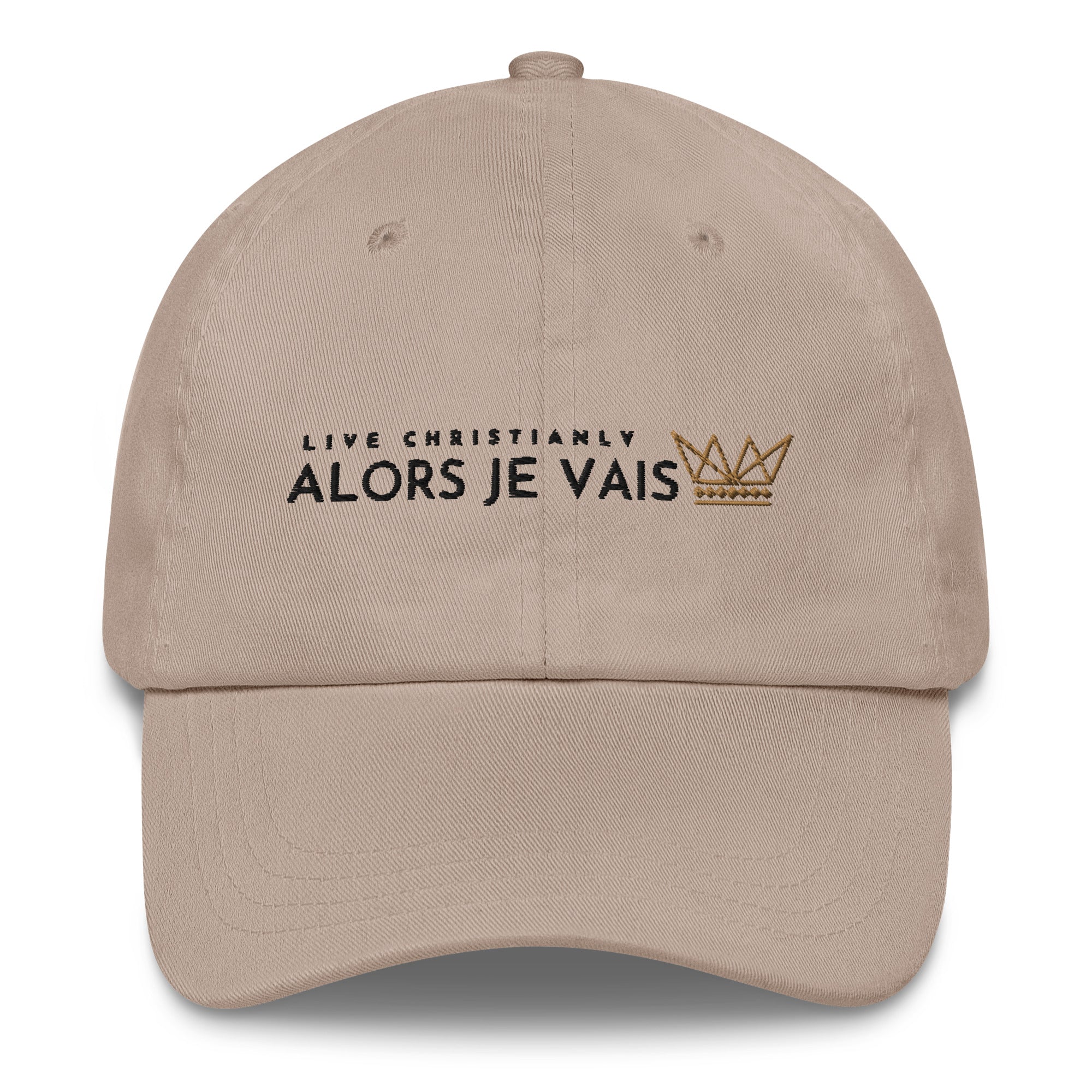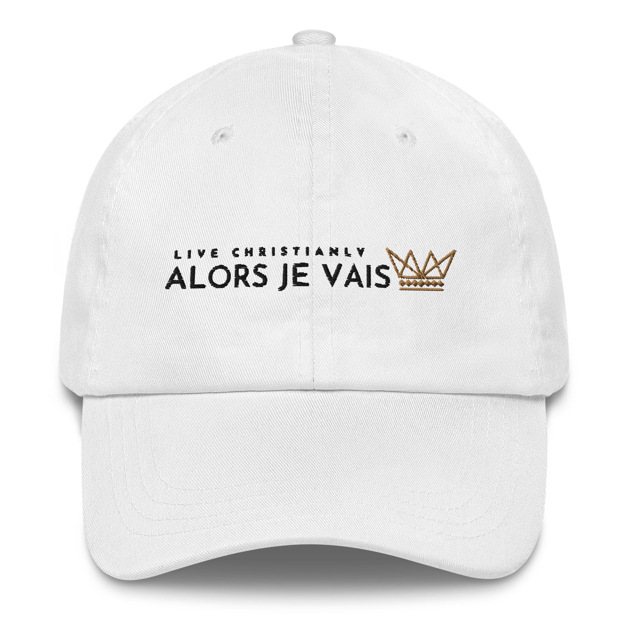 ALORS JE VAIS’ LIVE CHRISTIANLY HAT - The perfect accessory for living a life of style and grace. This premium hat will elevate your wardrobe and showcase your values. A timeless piece that's crafted with care to last for generations to come. Experience hat-wearing like never before. Designed for only the most discerning individuals, this hat conveys prestige and class. Live your best life in style and grace.