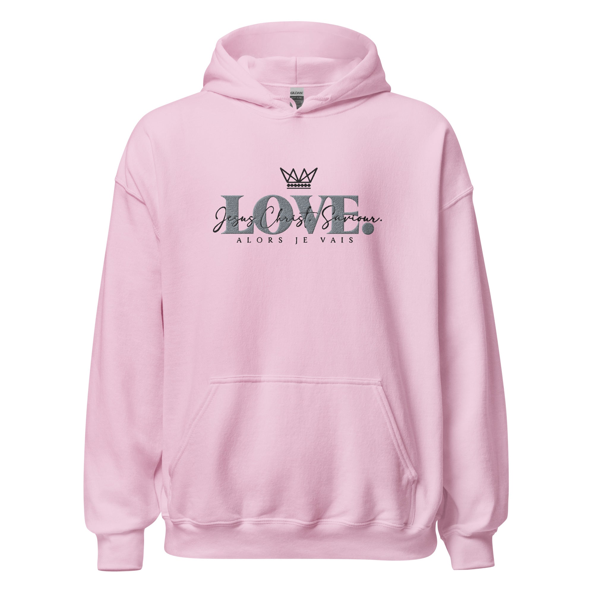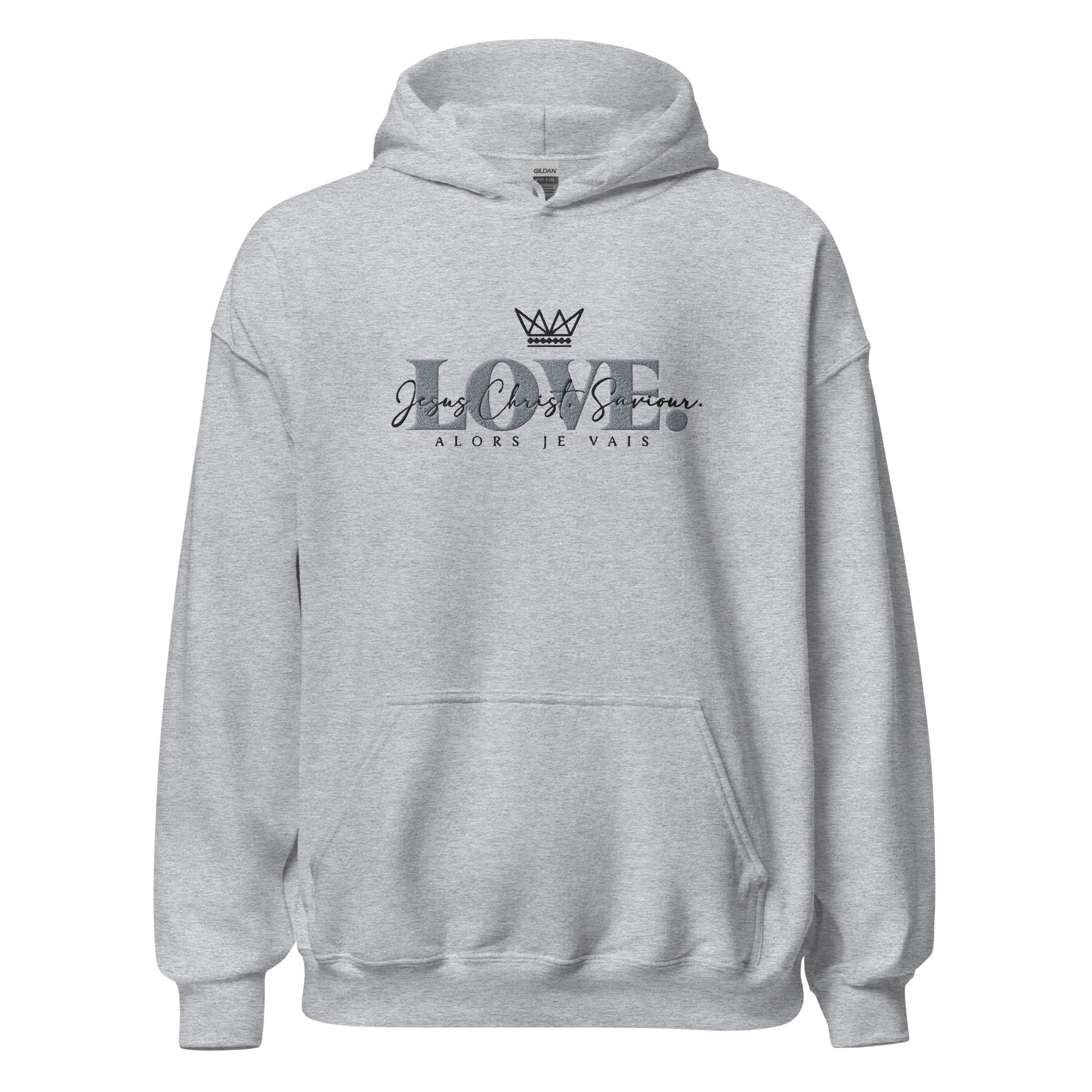 There's no better way to wear your faith than with the THE LVOE HOODI BY ALORS JE VAIS. The meaningful graphic is rendered in intricate detail, using only the finest materials. With this Christ Jesus Hoodie, you'll be a testament to good taste and enduring style and TRU LOVE>