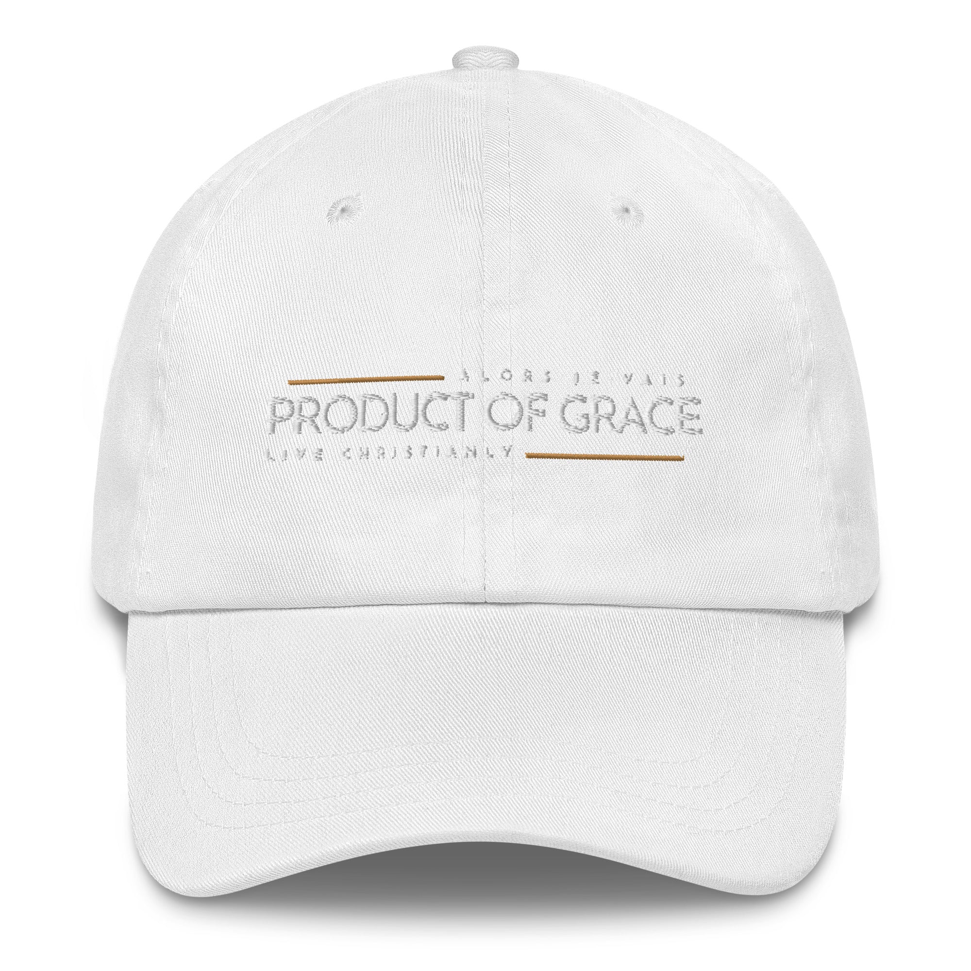 This hat exudes a sweet and subtle, yet powerful message. With its classic and timeless design, it’s more than just an accessory; It's a symbol. It's the epitome of love given grace. Elevate your fashion game with a touch of this cornerstone faith-filled message. Crafted with premium materials and finished with this signature of respect for God’s wonderful gift. Grace never goes out of style.