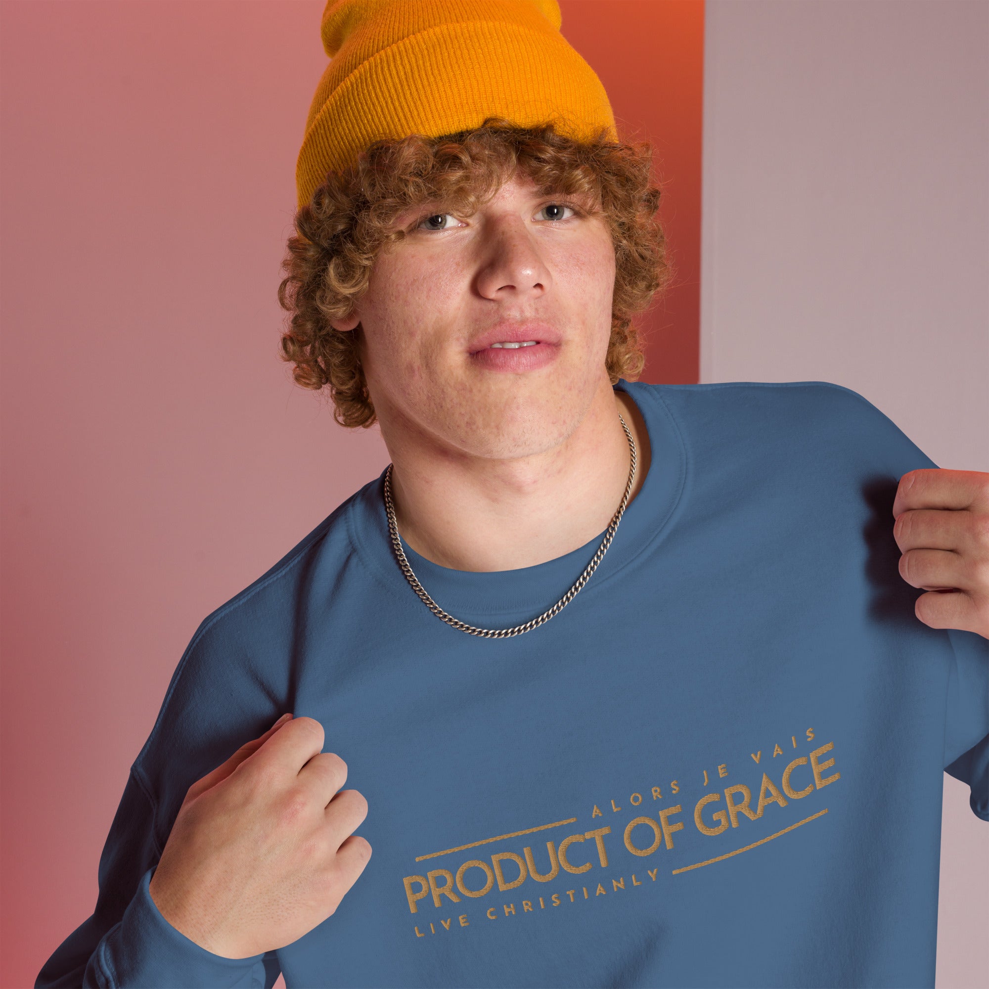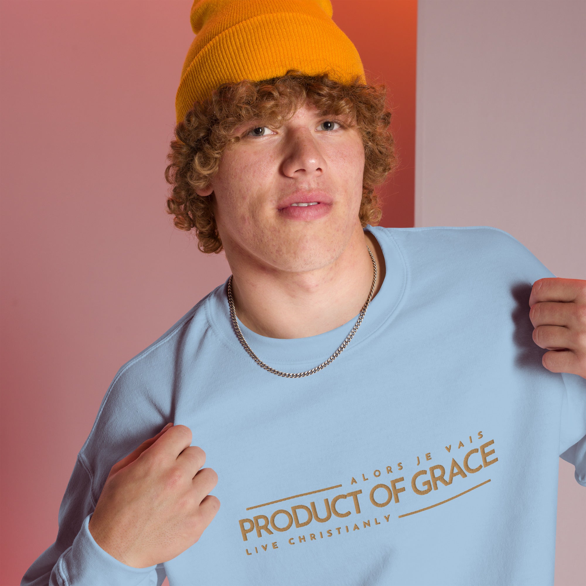 Dress yourself in threads of grace with our PRODUCT OF GRACE SWEATSHIRT! Elevate your wardrobe with this exclusive piece - a true work of art. The intricate details and luxurious materials make it a must-have for any fashion-forward individual. Graceful and elegant, it's a symbol of refined taste and effortless style, fashioned by none other than The King Himself.