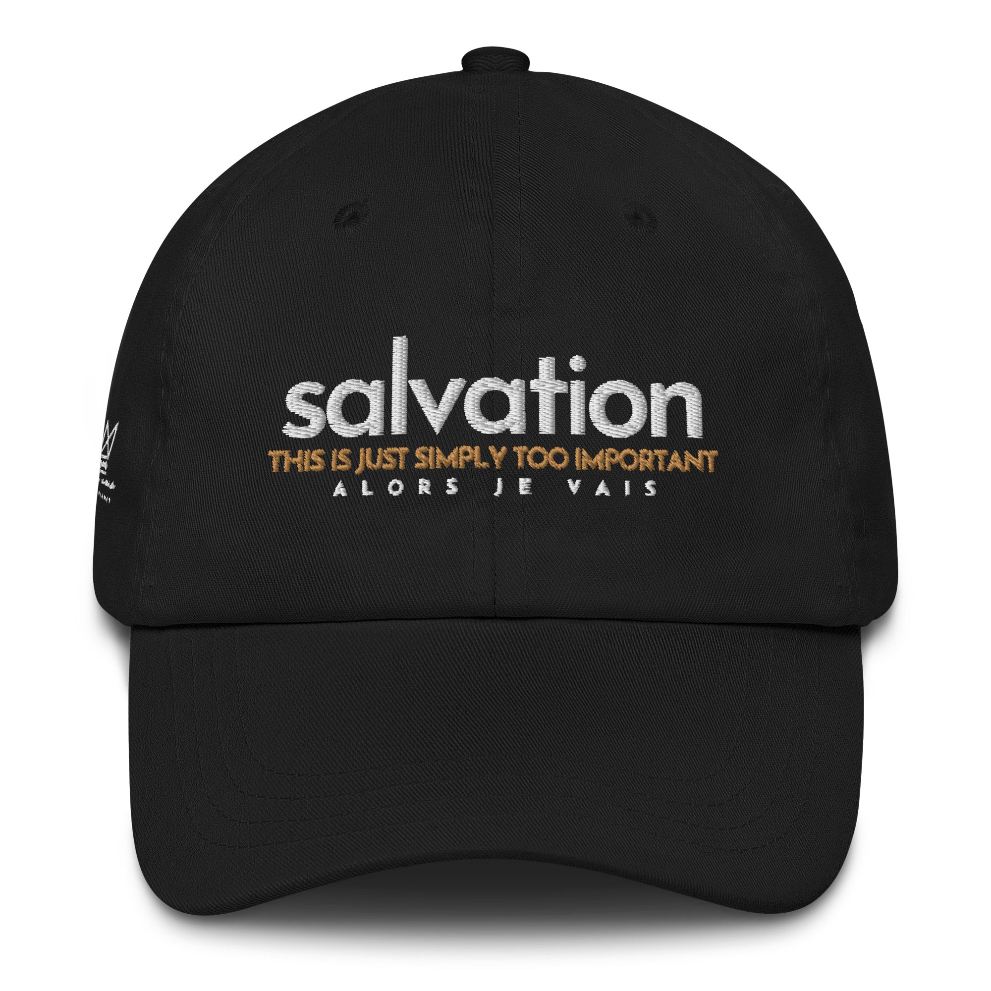 Salvation, this is just too important! Be a beacon, be a vessel for Salvation!  Don't miss your chance to elevate your style with this SALVATION HAT. Experience the perfect blend of comfort, sophistication, and elegance. Rediscover the power of faith-fashion with this iconic hat that will become your go-to accessory for any occasion.
