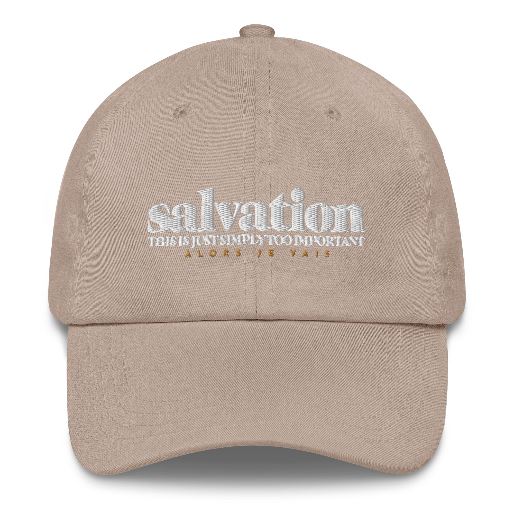 Salvation, this is just too important! Be a beacon, be a vessel for Salvation! Don't miss your chance to elevate your style with this SALVATION HAT. Experience the perfect blend of comfort, sophistication, and elegance. Rediscover the power of faith-fashion with this iconic hat that will become your go-to accessory for any occasion.