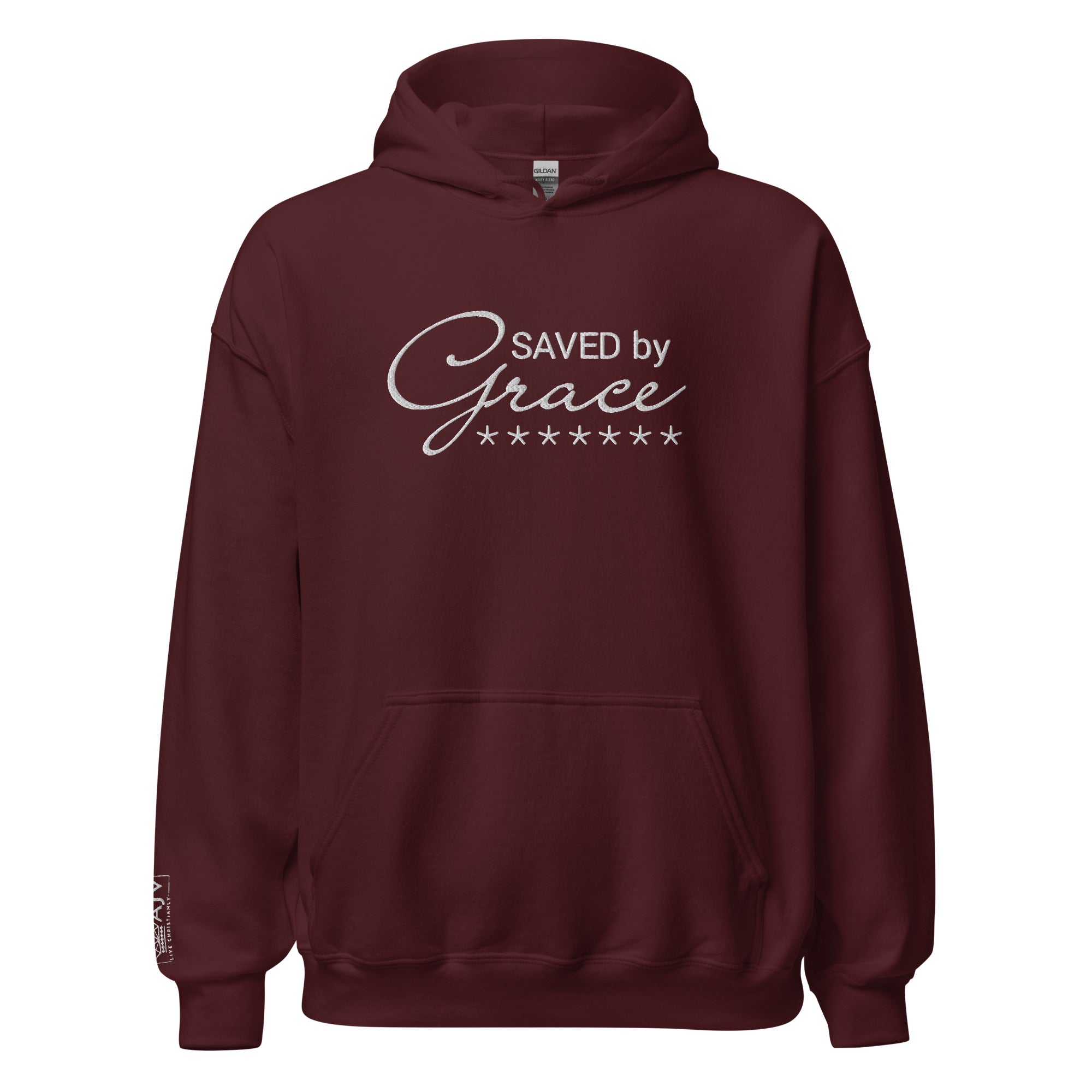 Unleash the divine power of grace with our SAVED BY GRACE HOODIE. Let its softness wrap you in luxurious comfort as you radiate elegance and refinement. A must-have for the discerning faith and fashion lover.