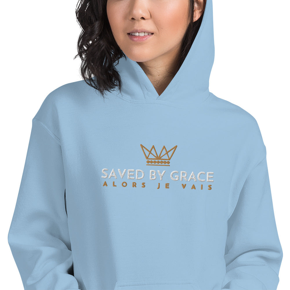 Unleash the divine power of grace with our SAVED BY GRACE HOODIE. Let its softness wrap you in luxurious comfort as you radiate elegance and refinement. A must-have for the discerning faith and fashion lover.